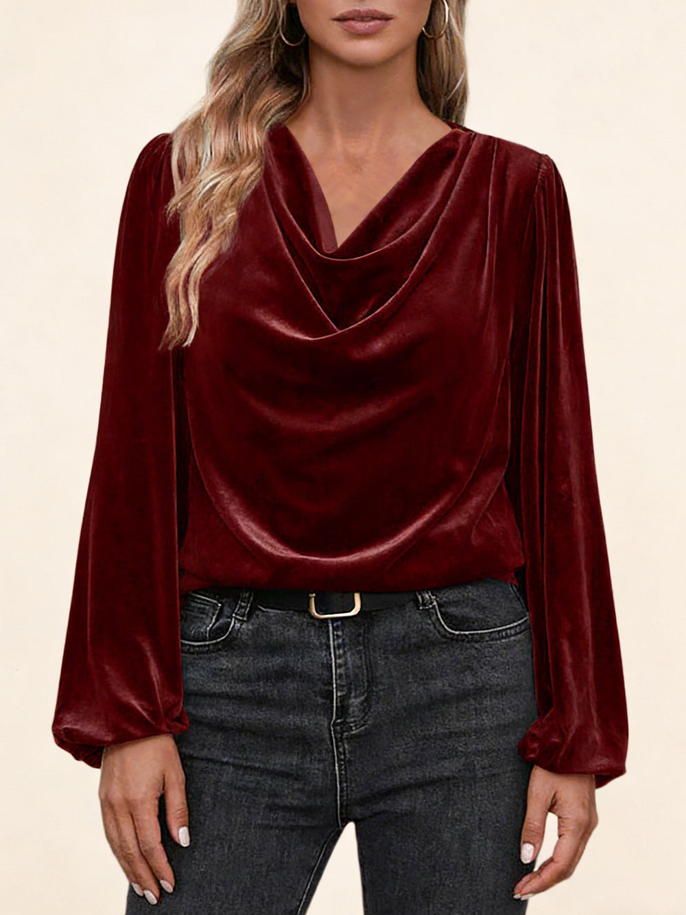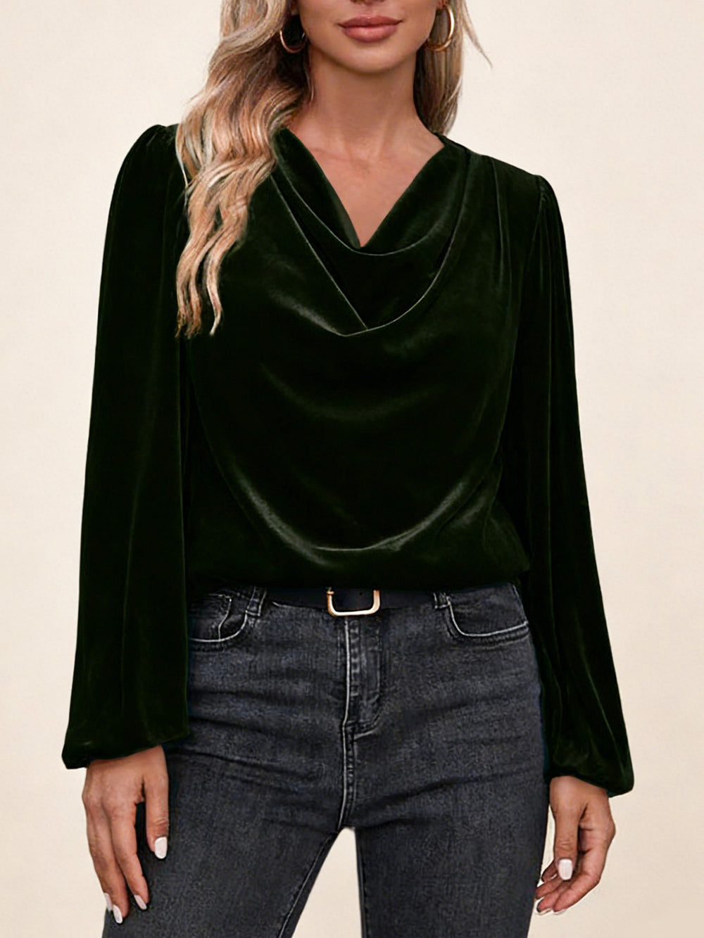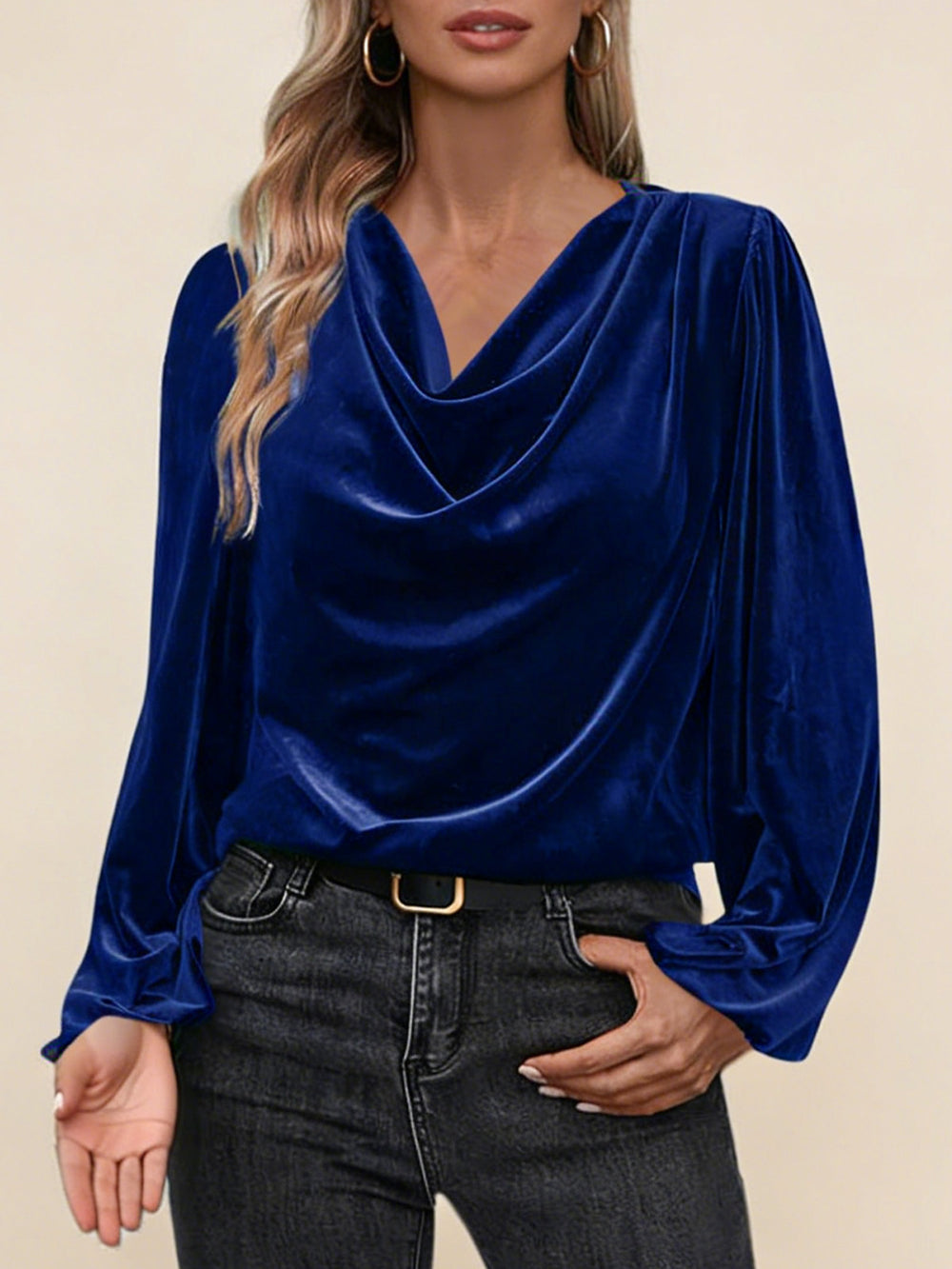 Дамска блуза с плисирана стояща яка и дълъг ръкав