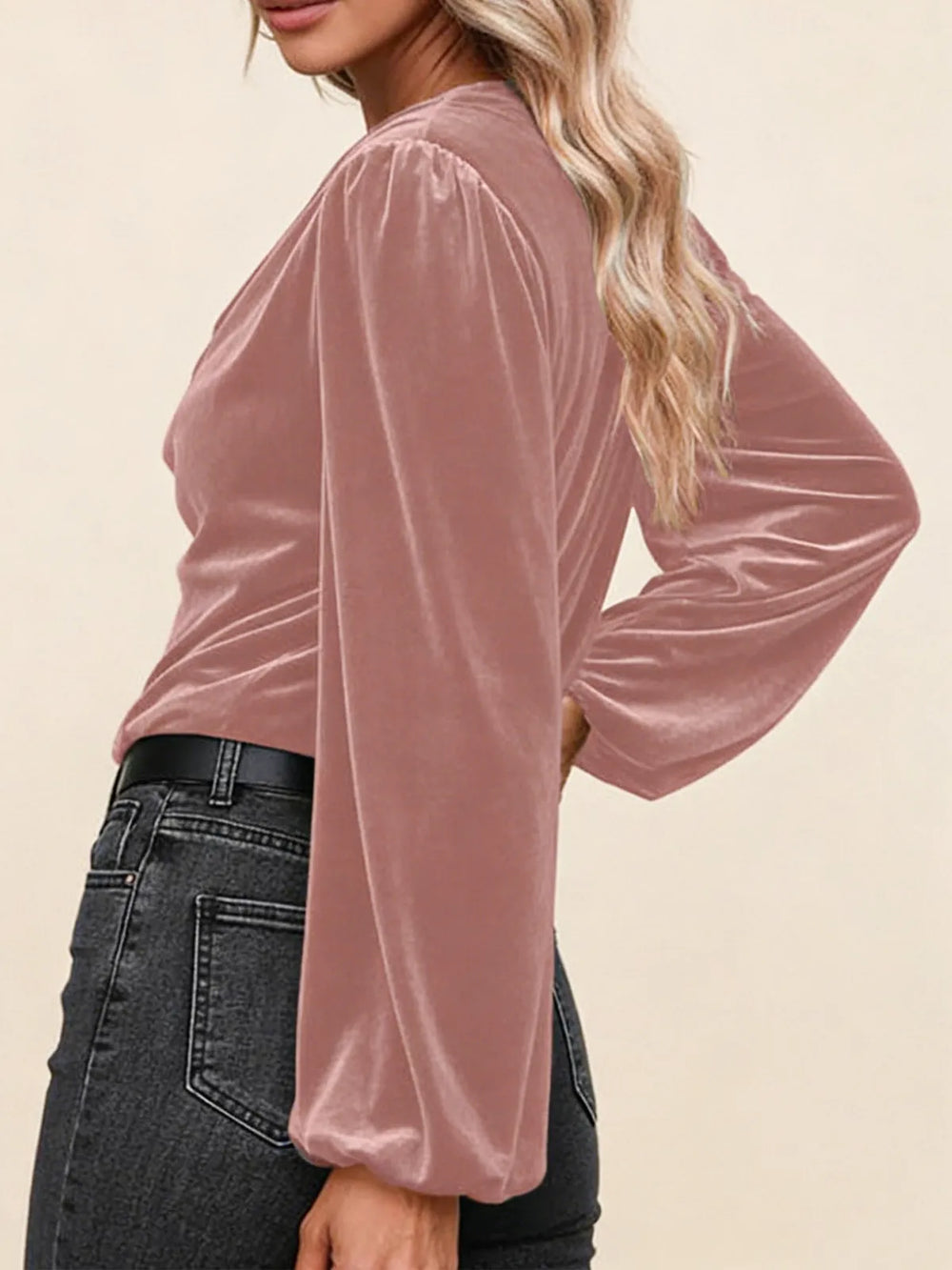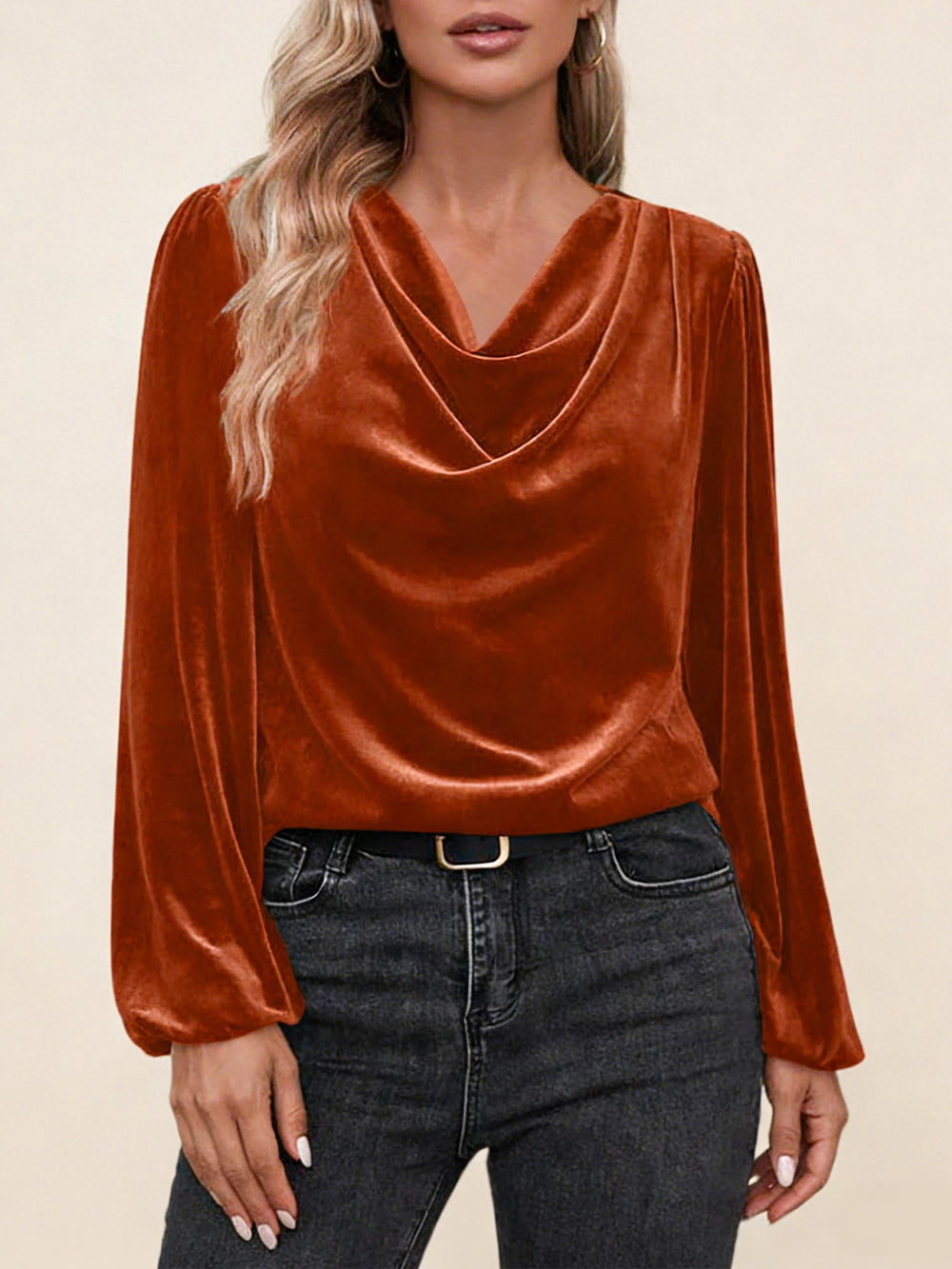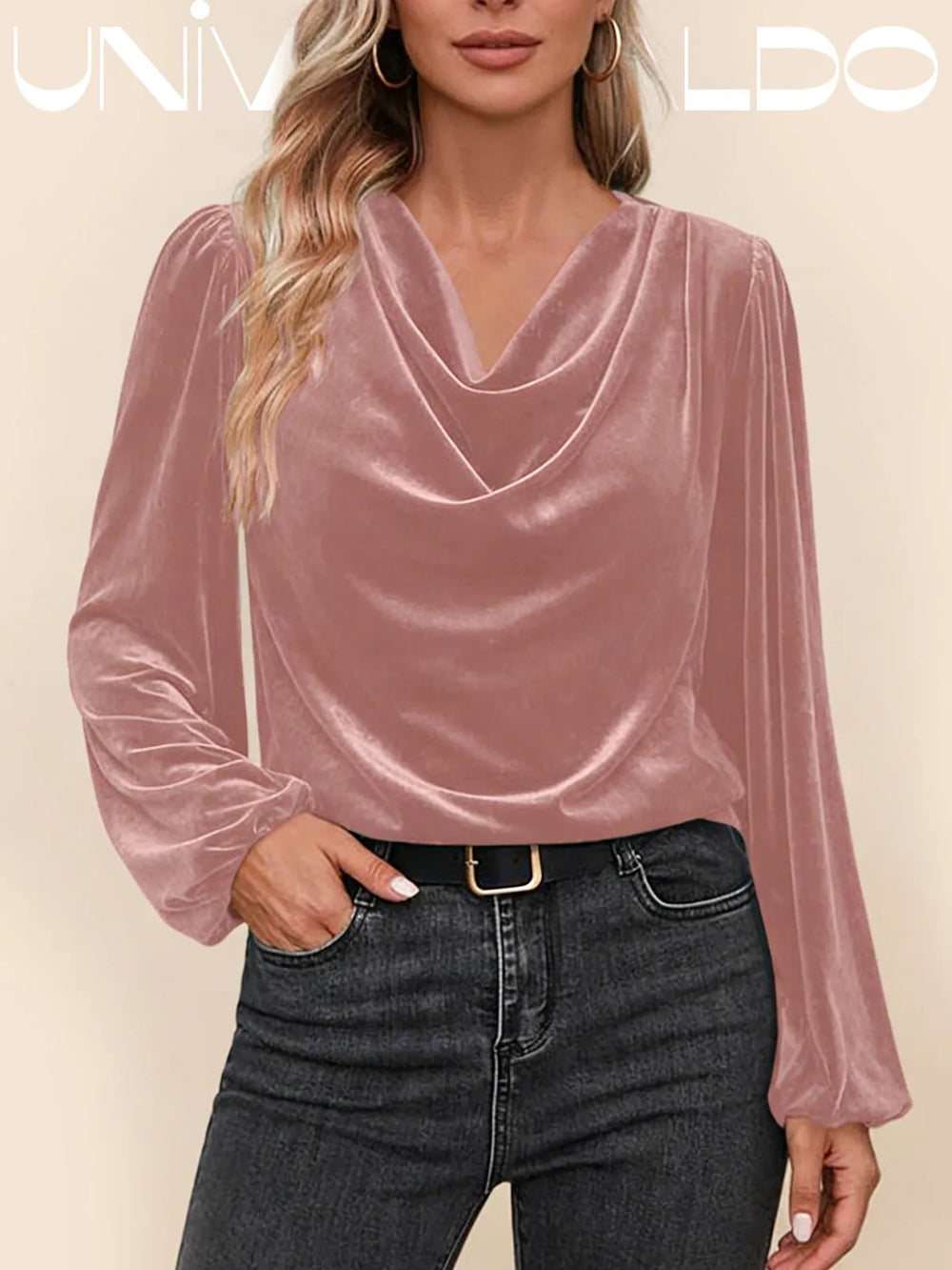 Дамска блуза с плисирана стояща яка и дълъг ръкав
