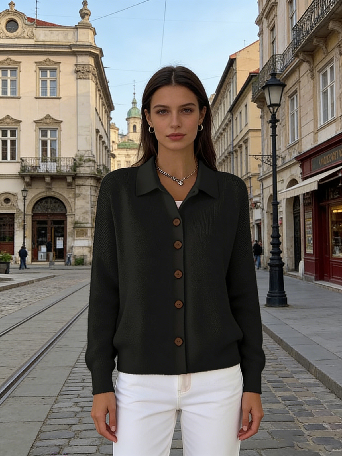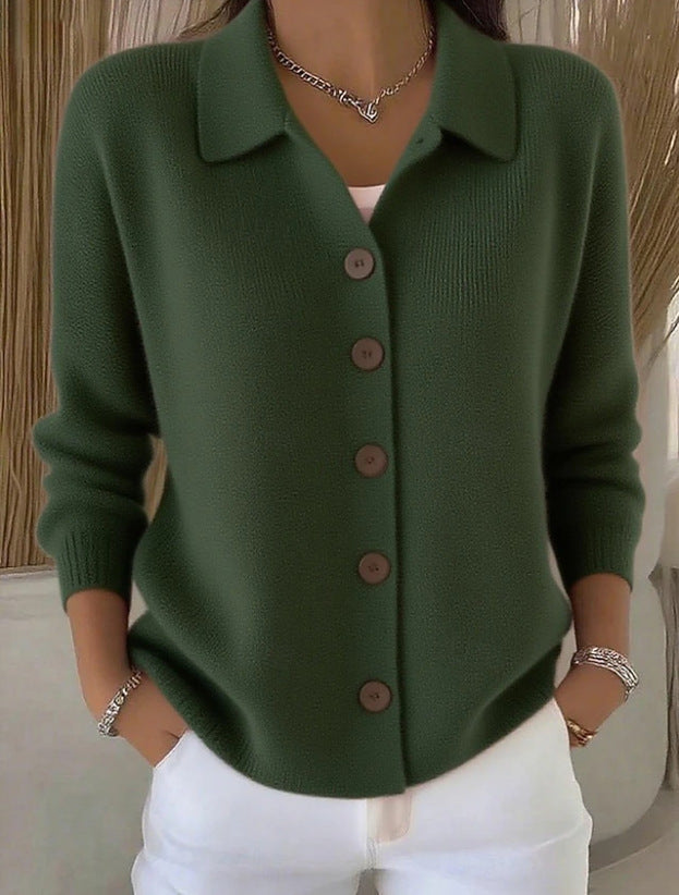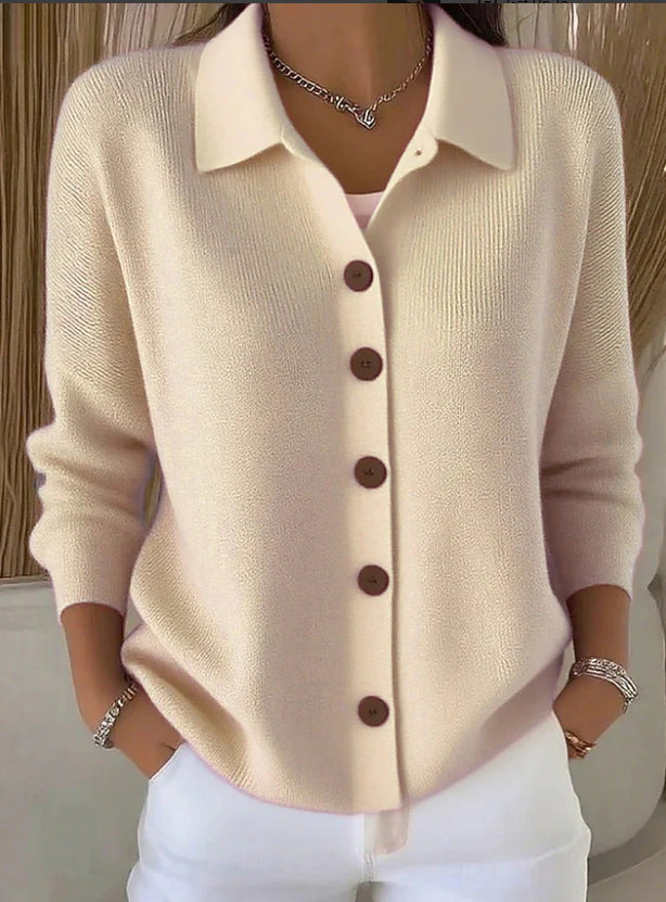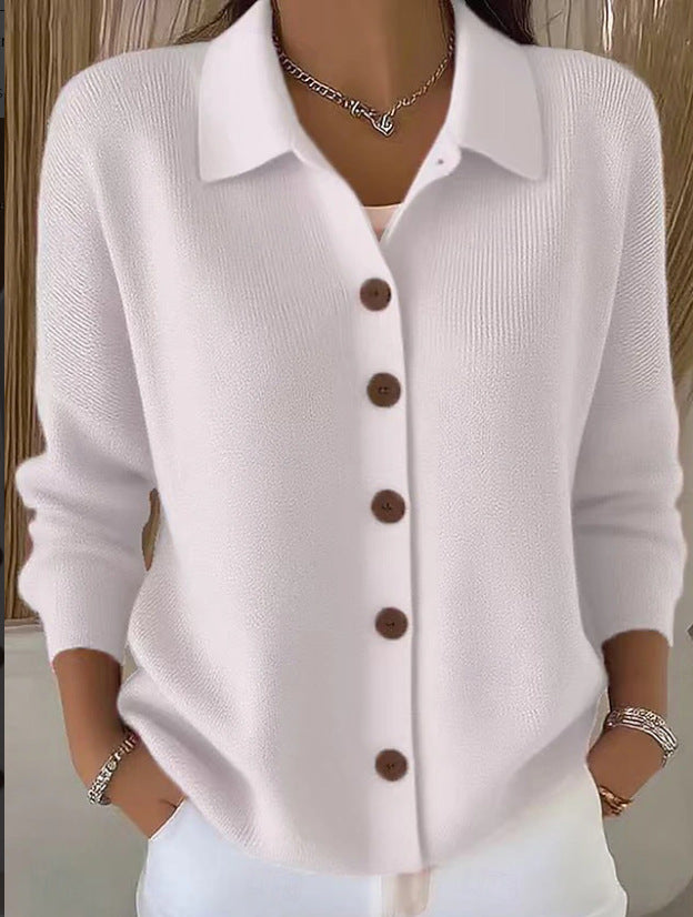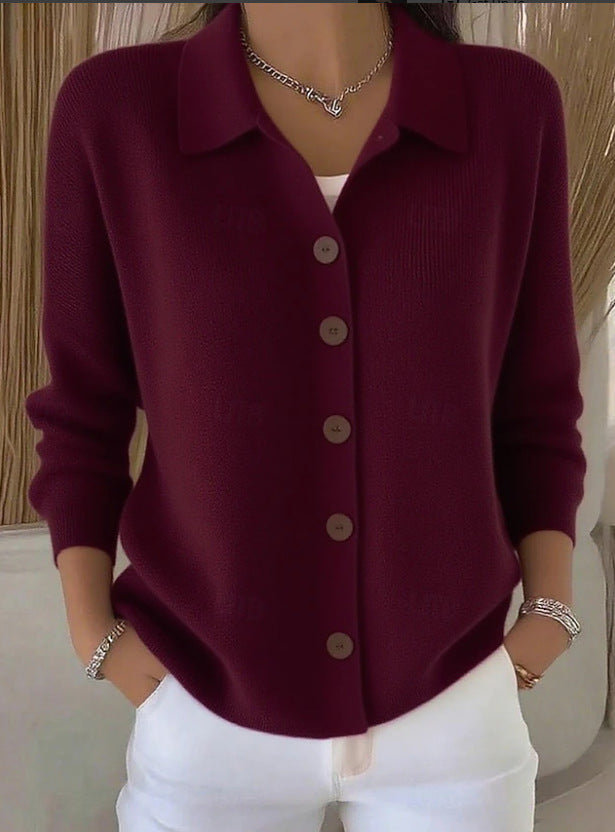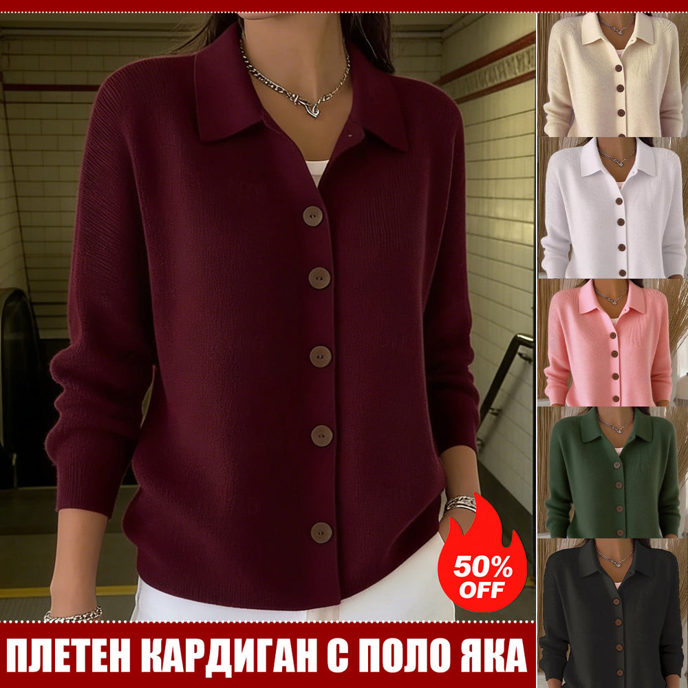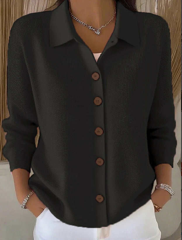 Едноцветна Пуловер Блуза С Яке Яка И Копчета