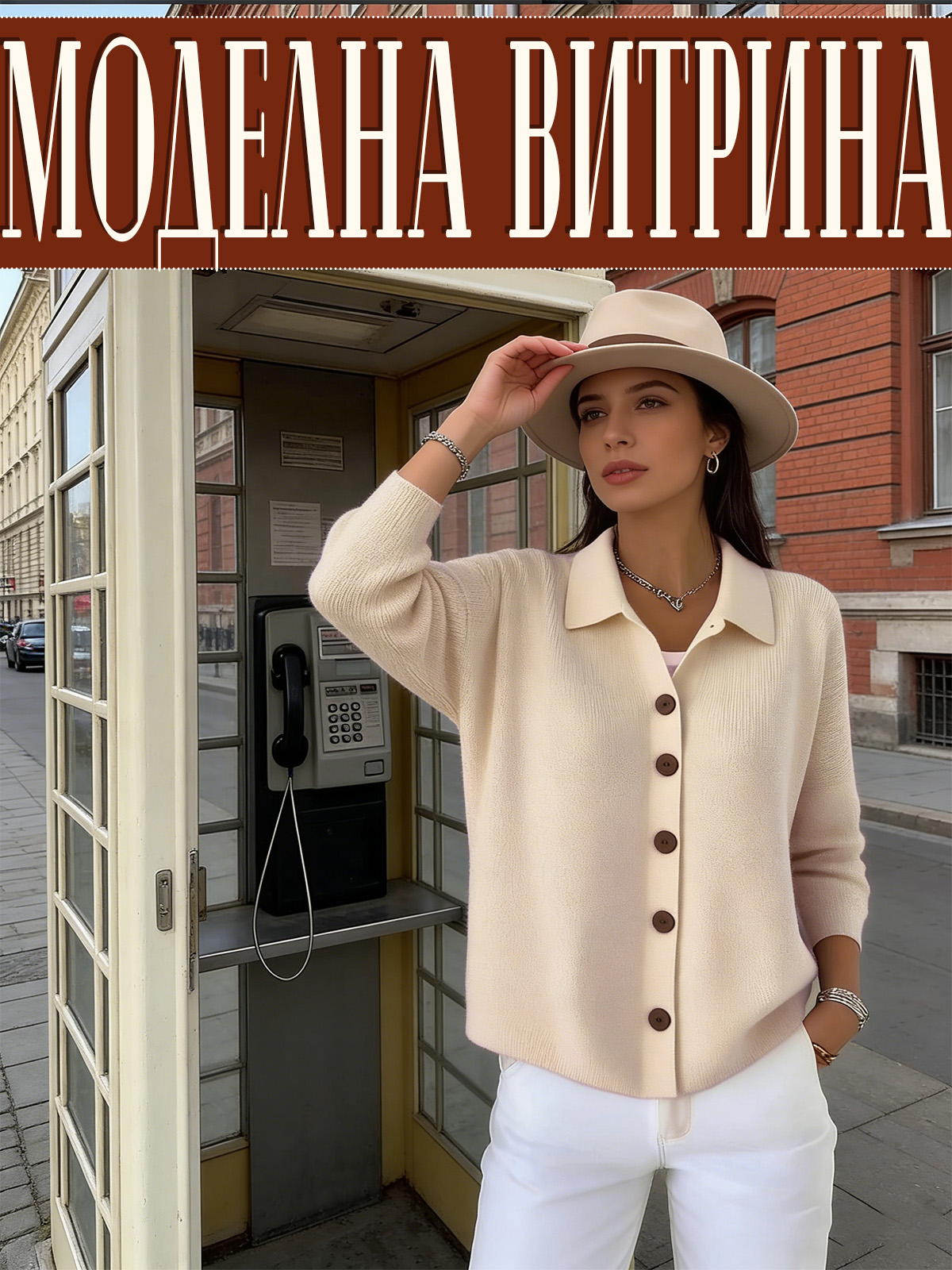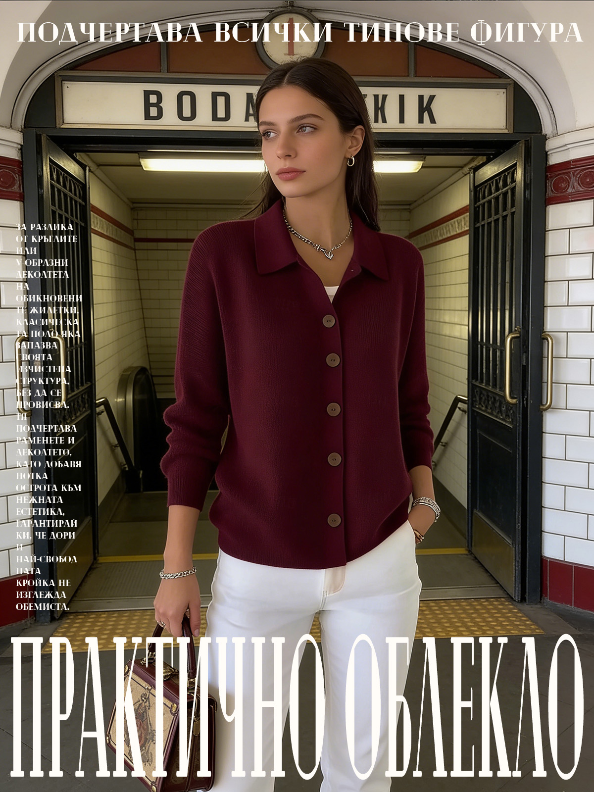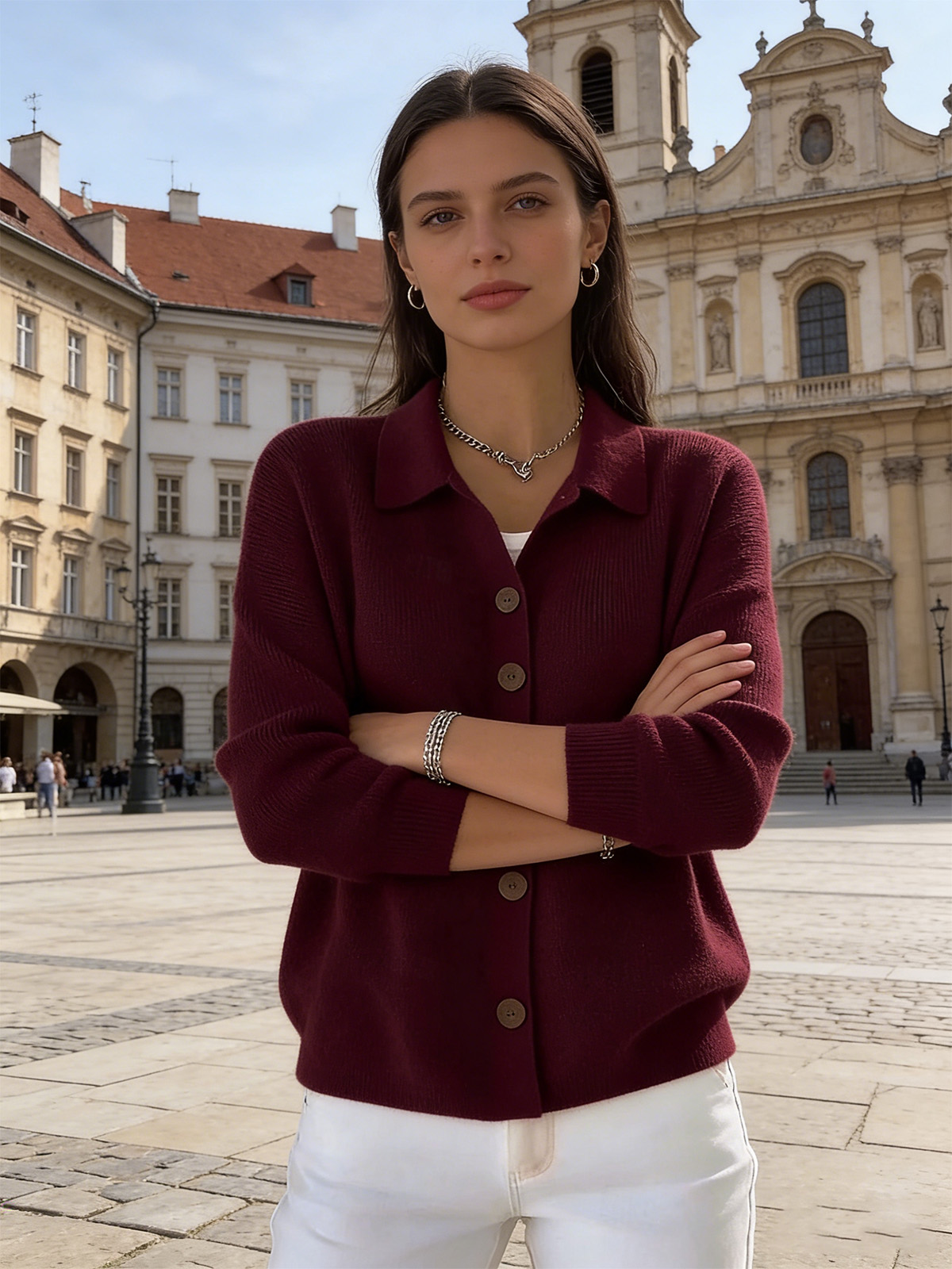 Едноцветна Пуловер Блуза С Яке Яка И Копчета
