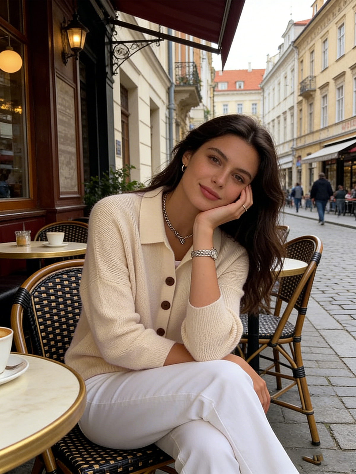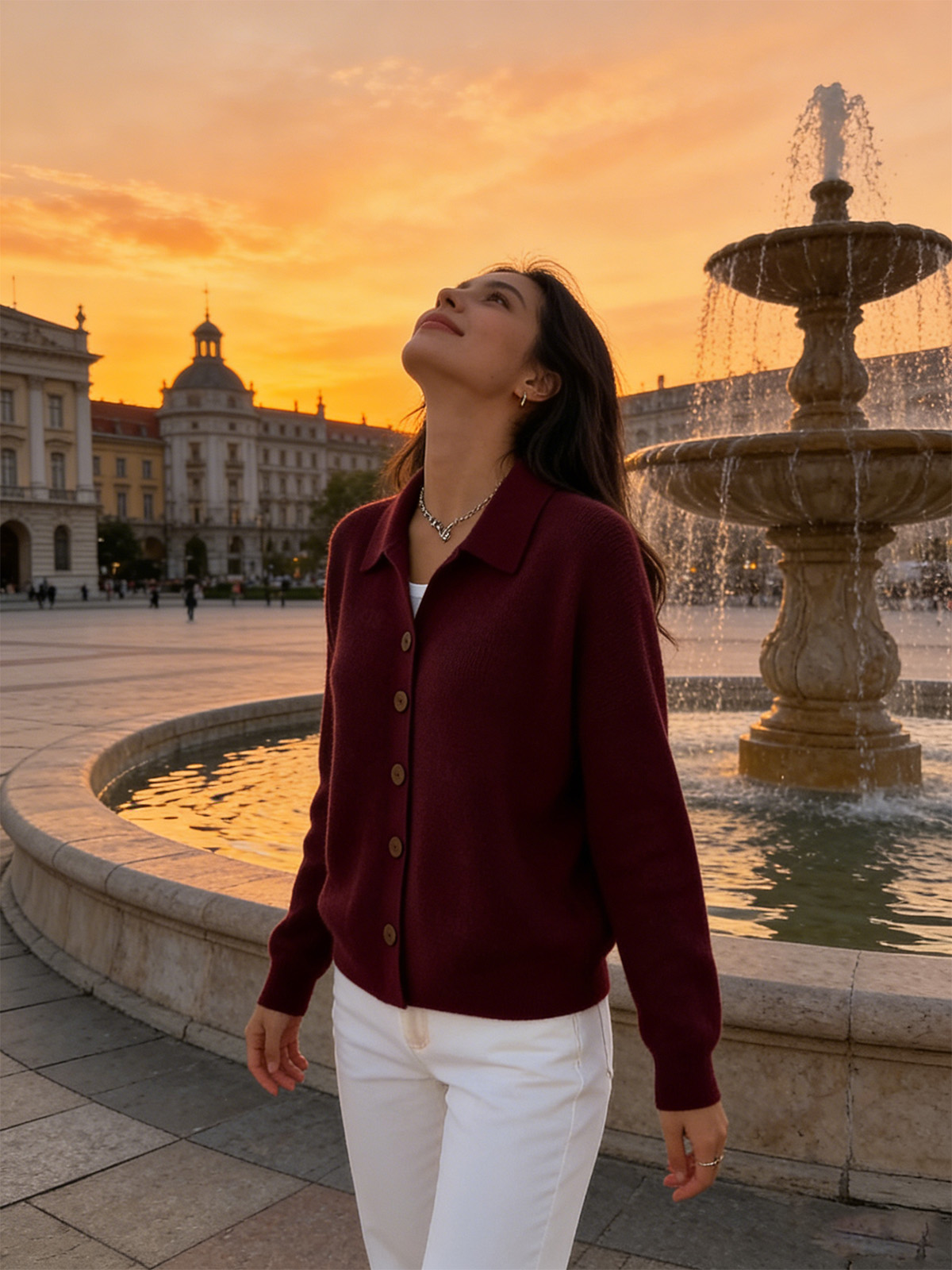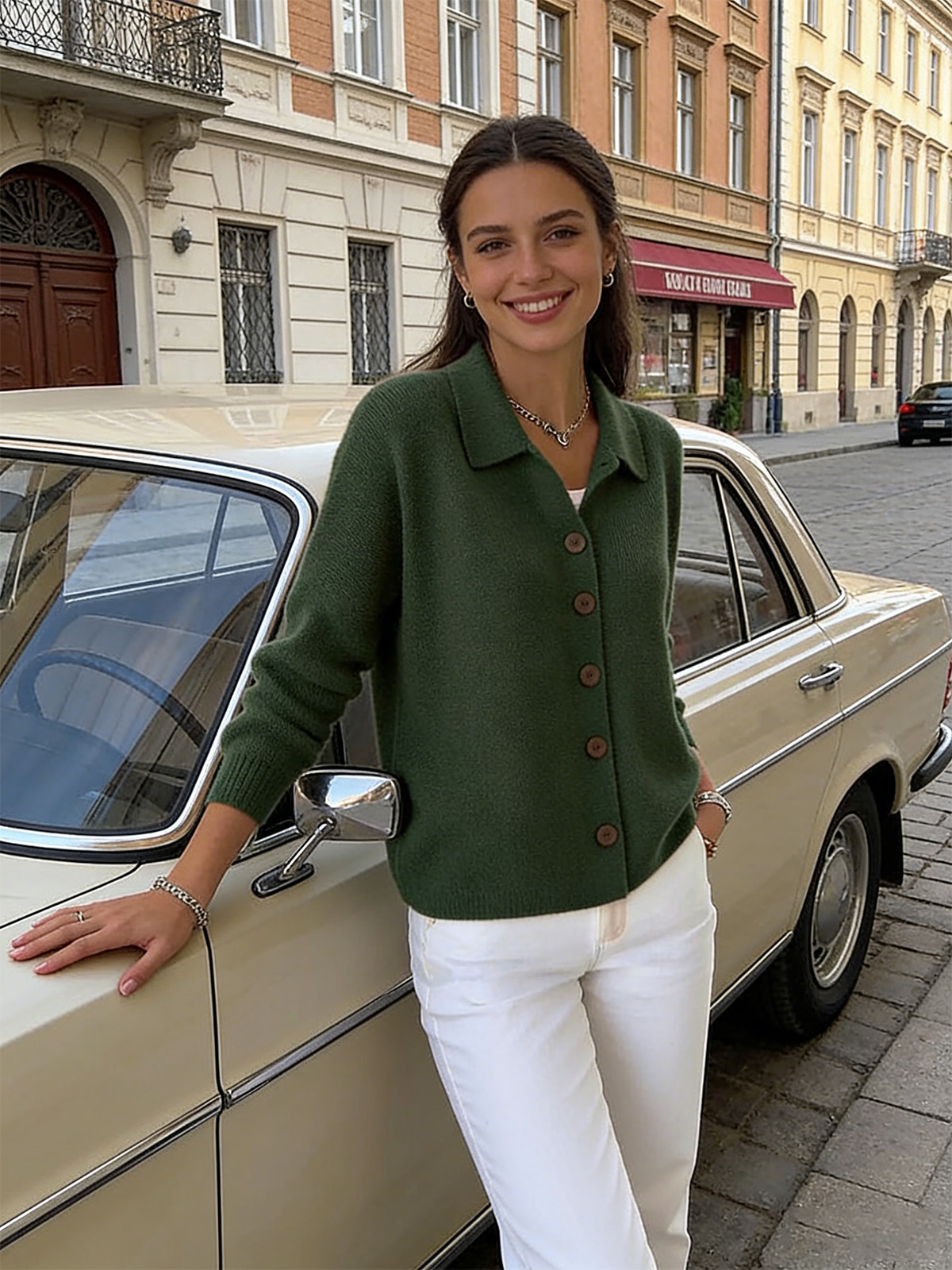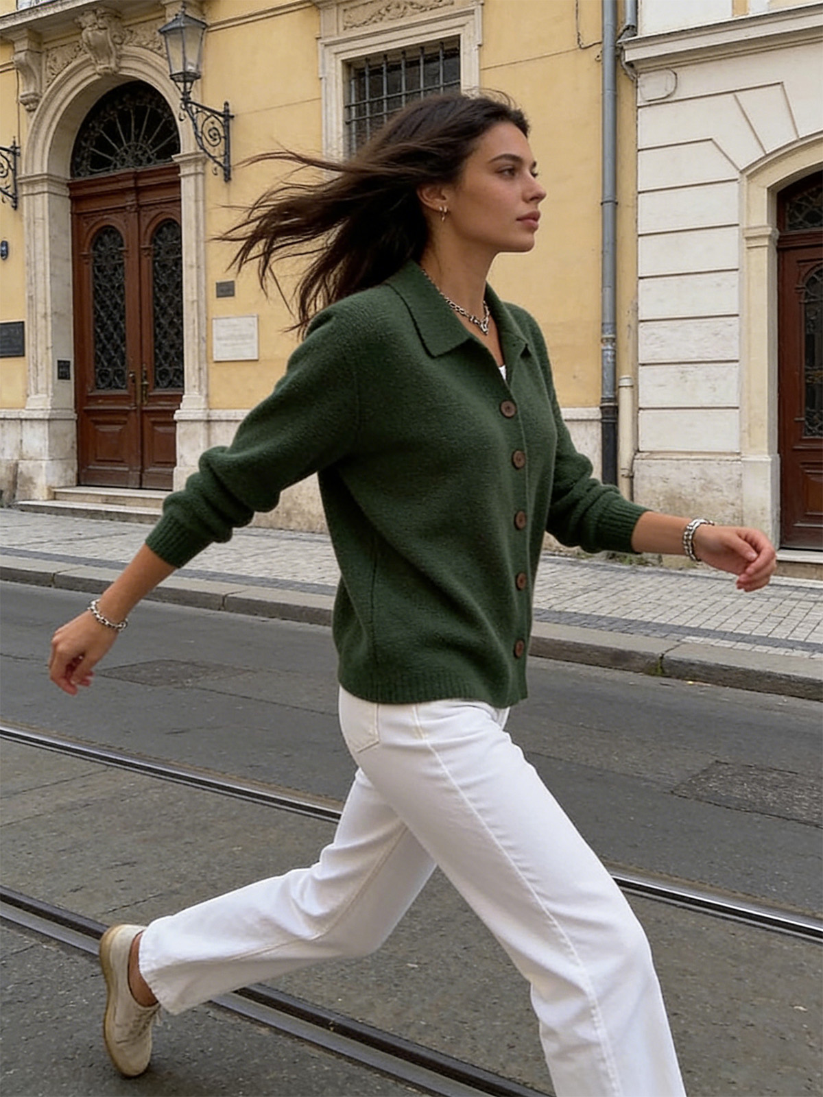 Едноцветна Пуловер Блуза С Яке Яка И Копчета