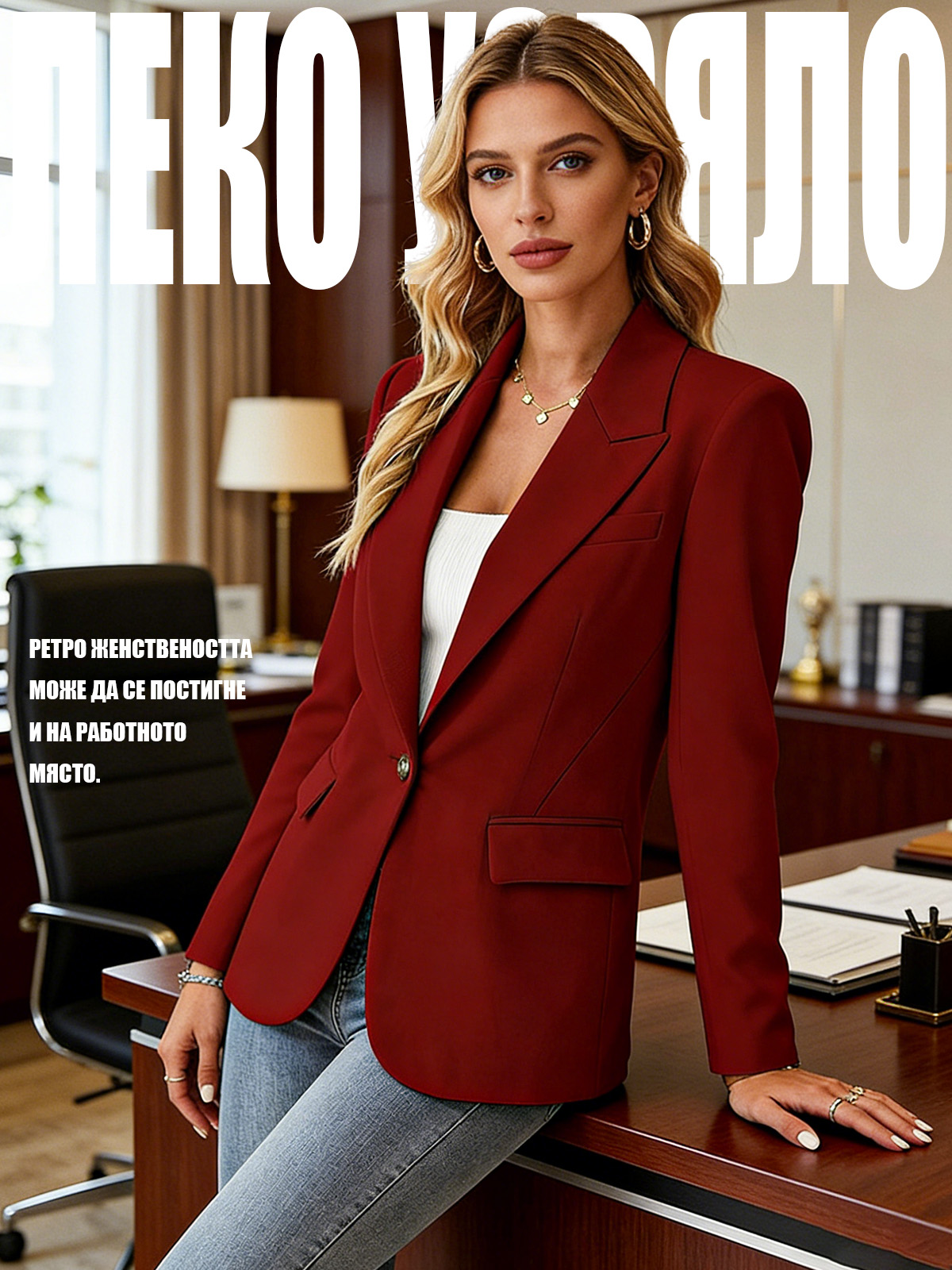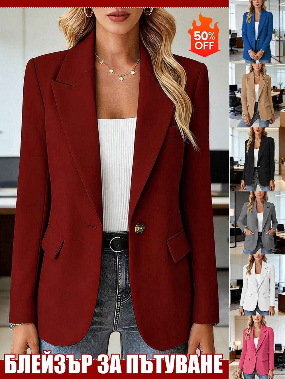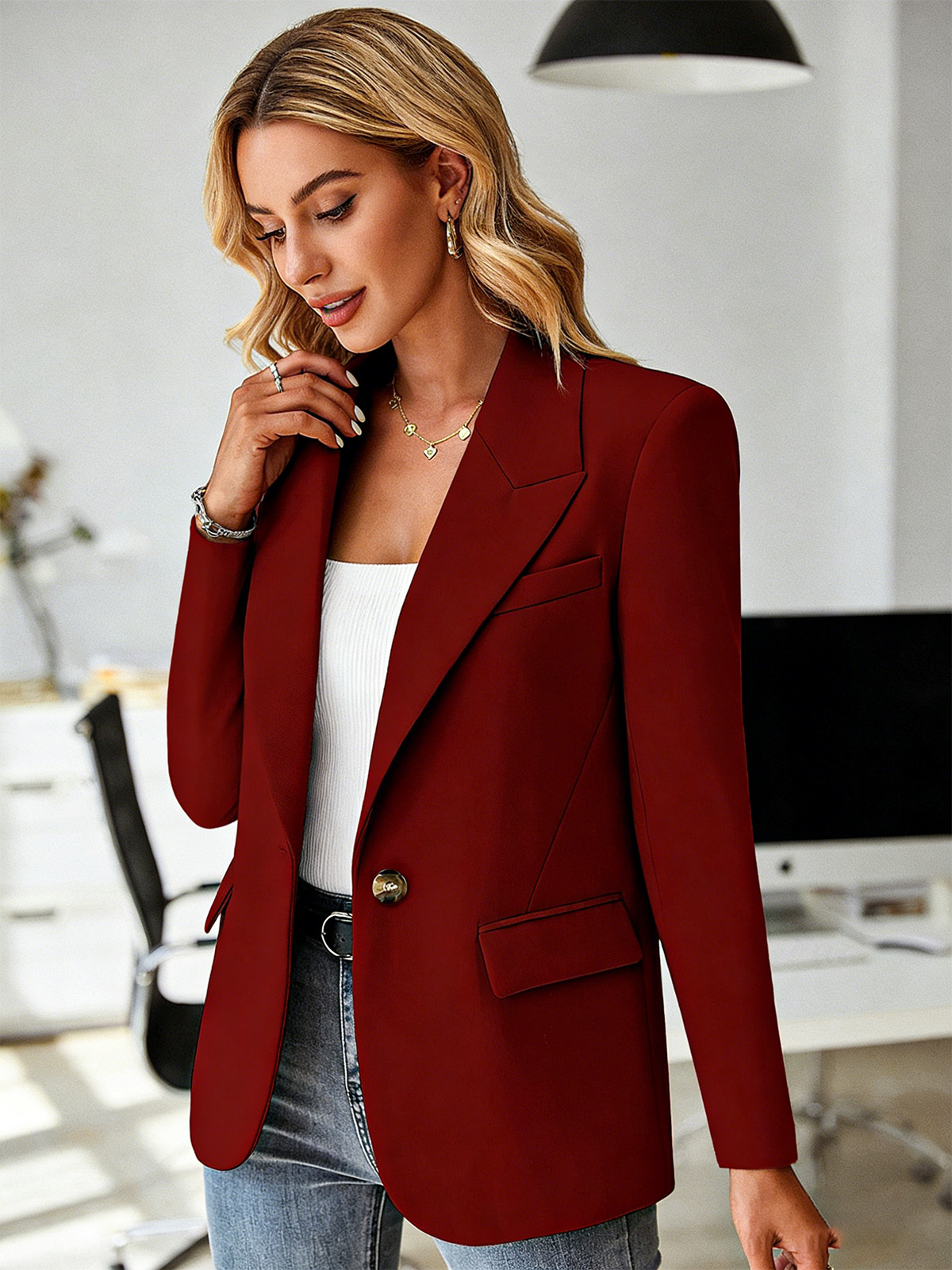 Късо Сако с Дълъг Ръкав в Един Цвят