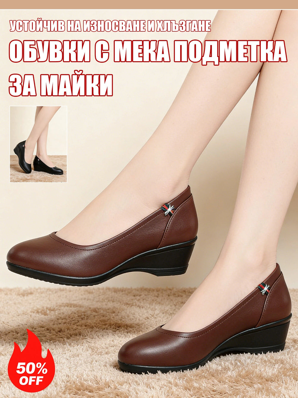 Обувки С Среден Ток, Плоски, Против Хлъзгане, Меки