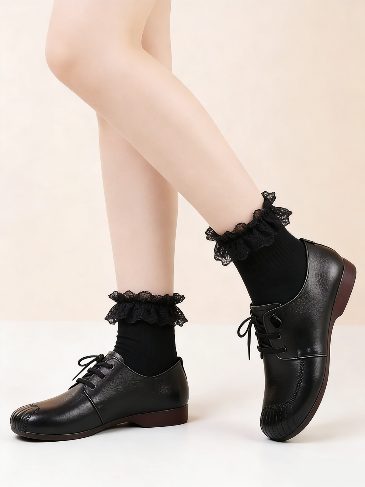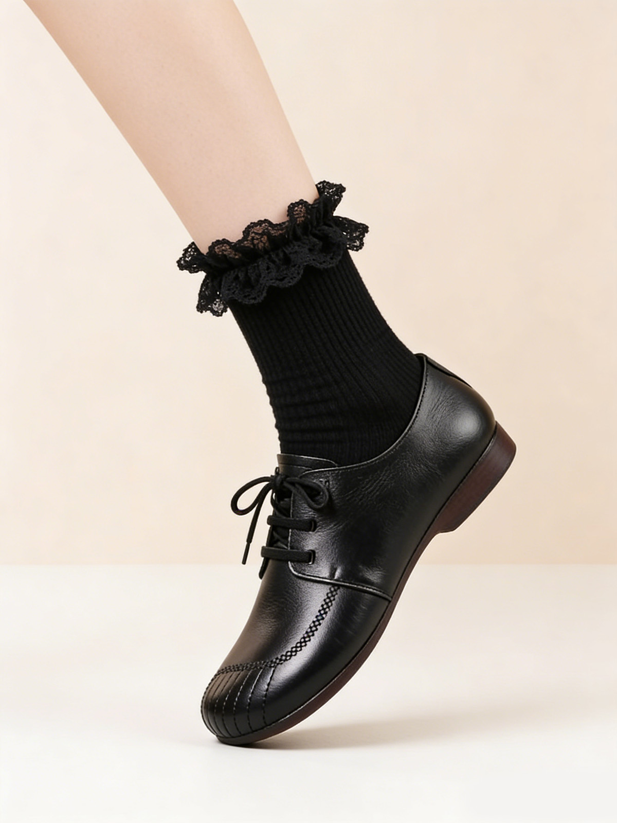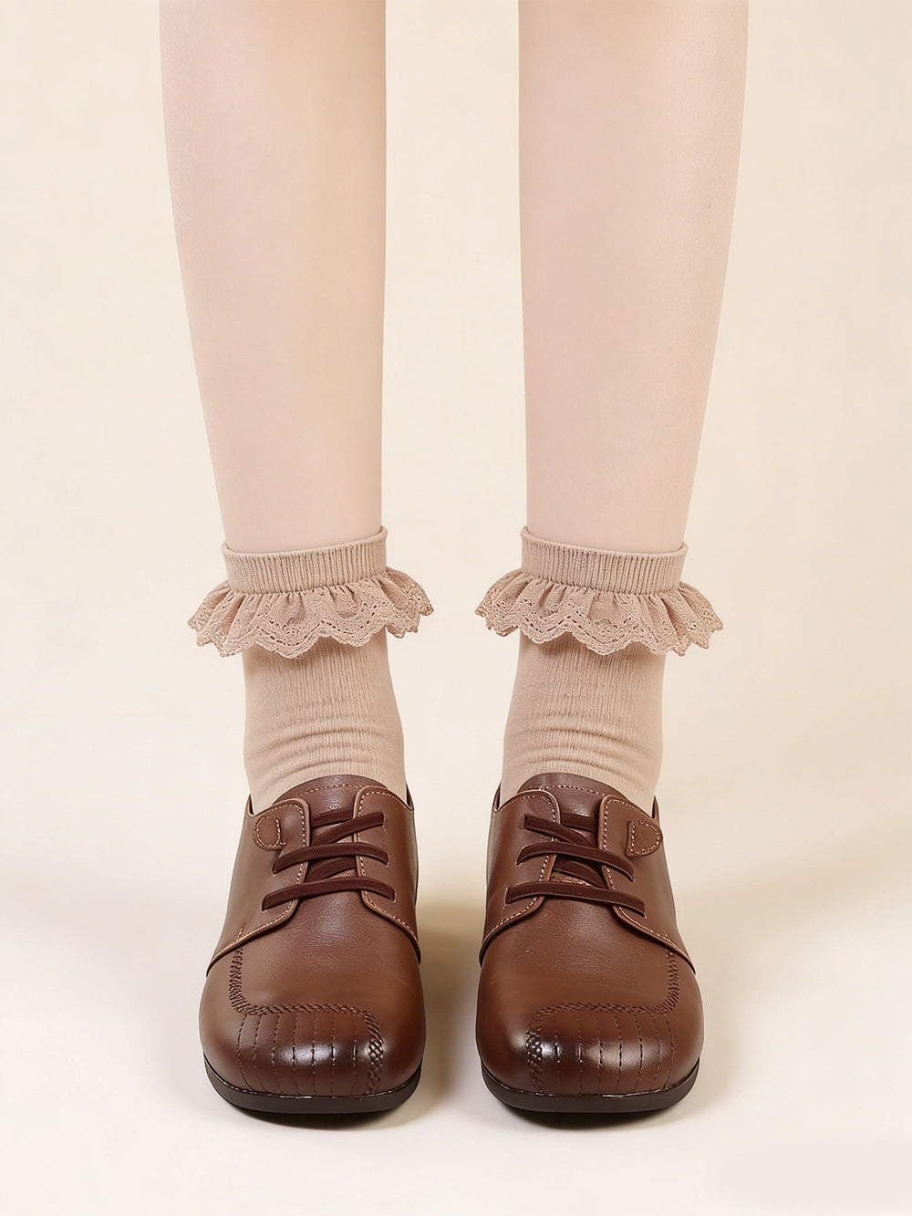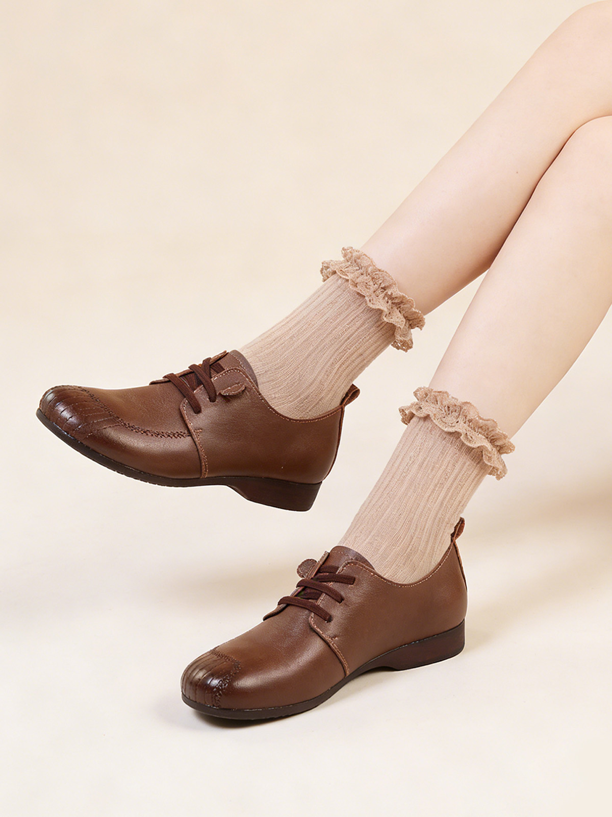Оксфордки с Мека Подметка, Кръгли Носове и Широк Ток
