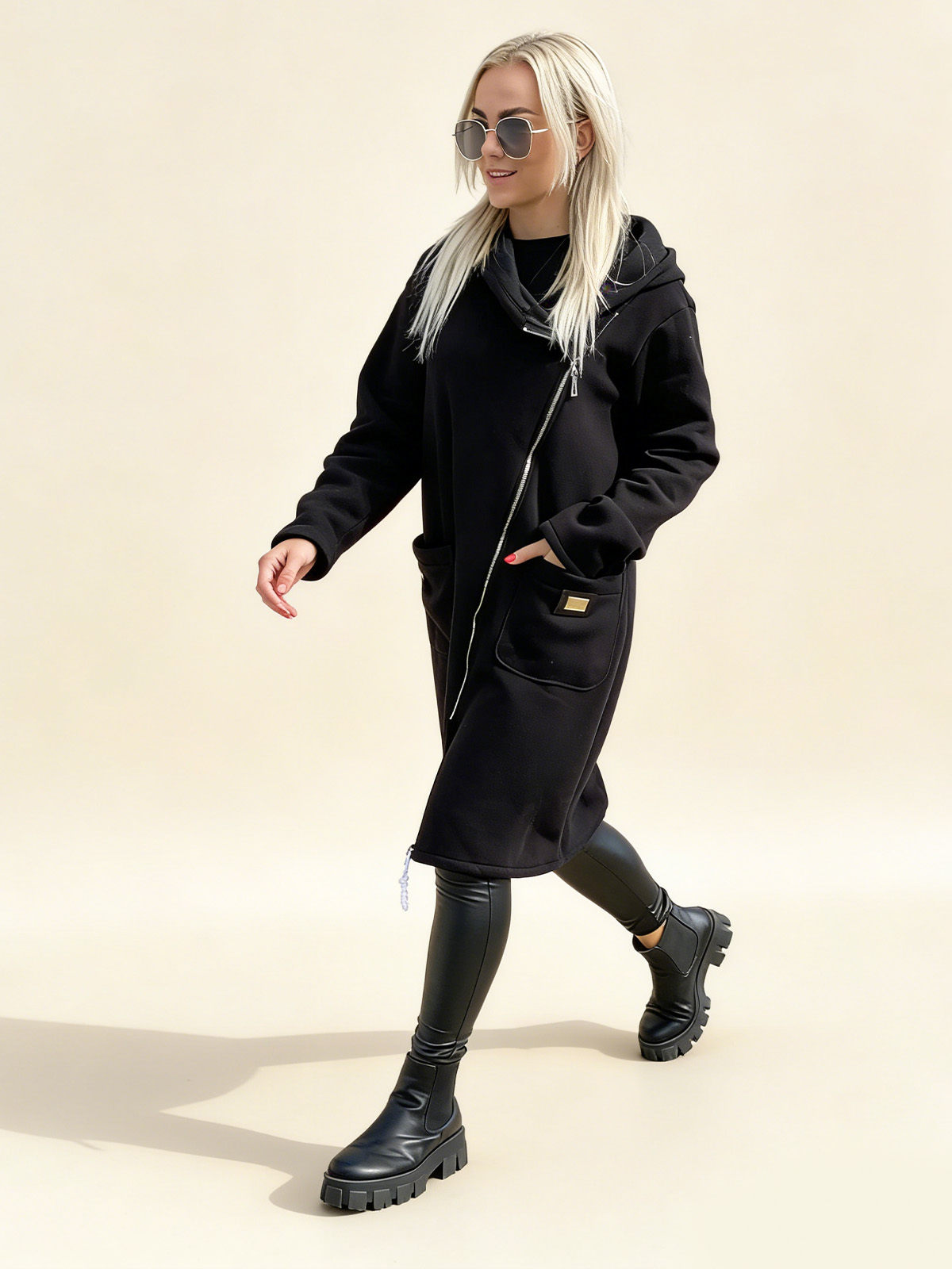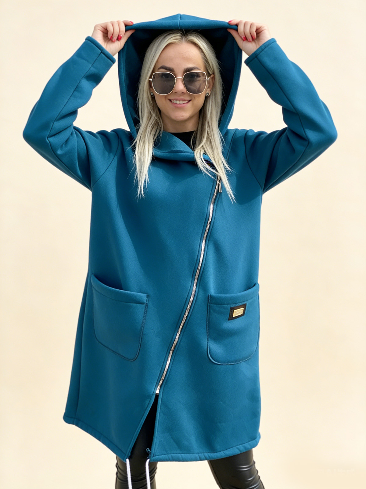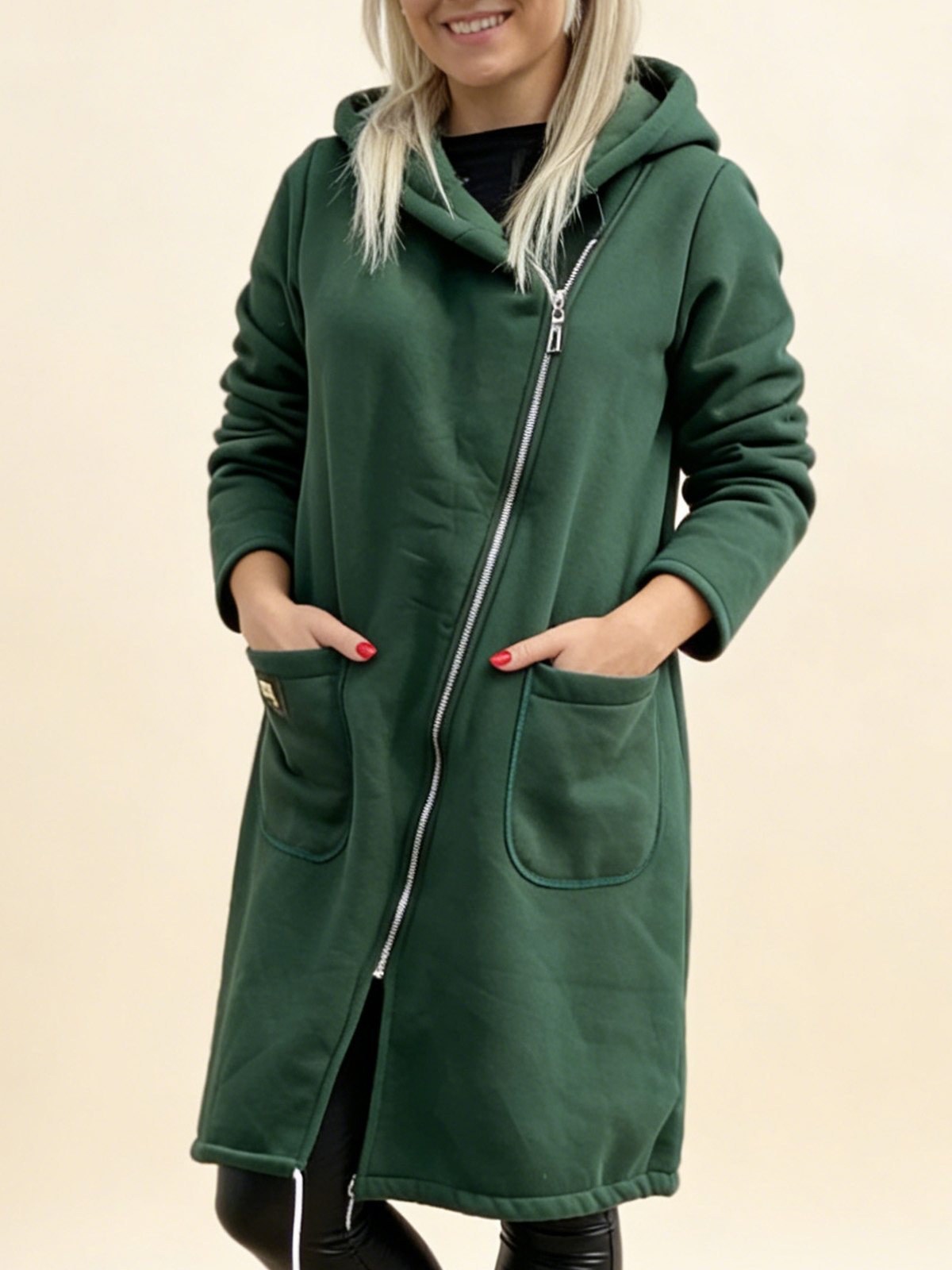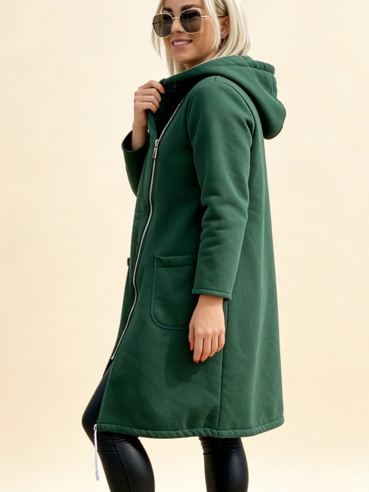 Плетено Суитшърт с Качулка, Молния и Подплата