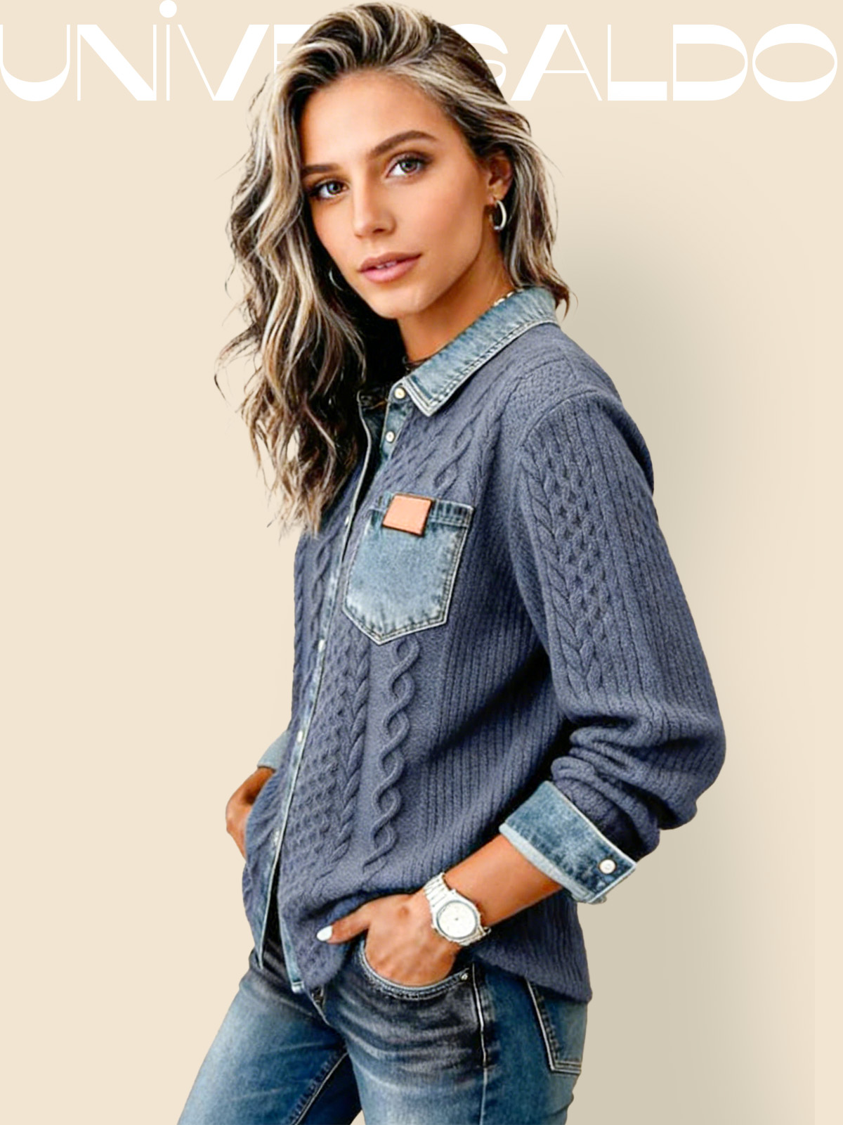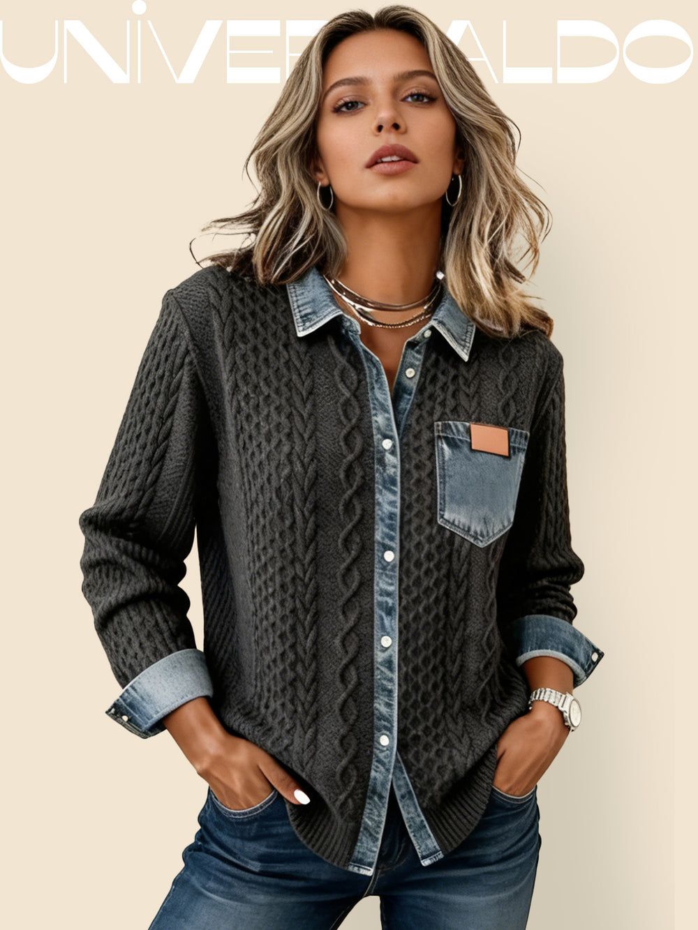 Псевдо-Деним Яке с Плетени Инкрустации