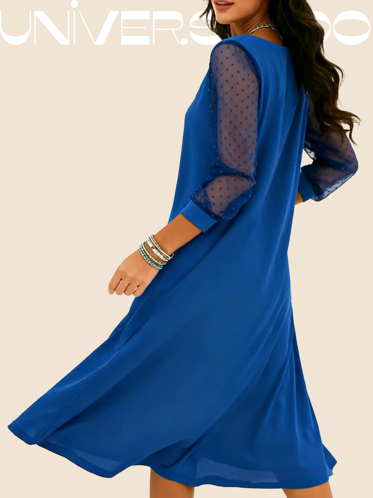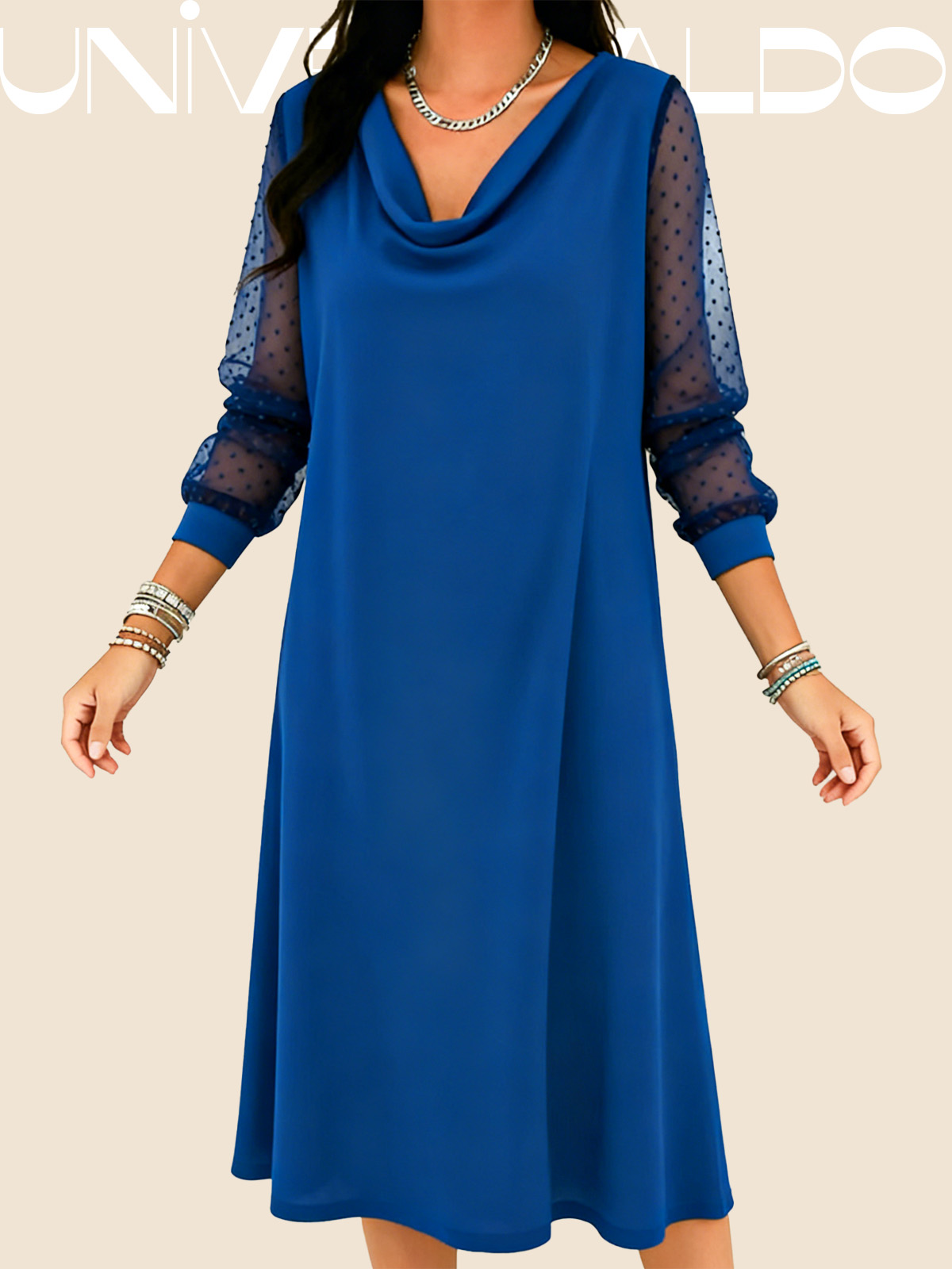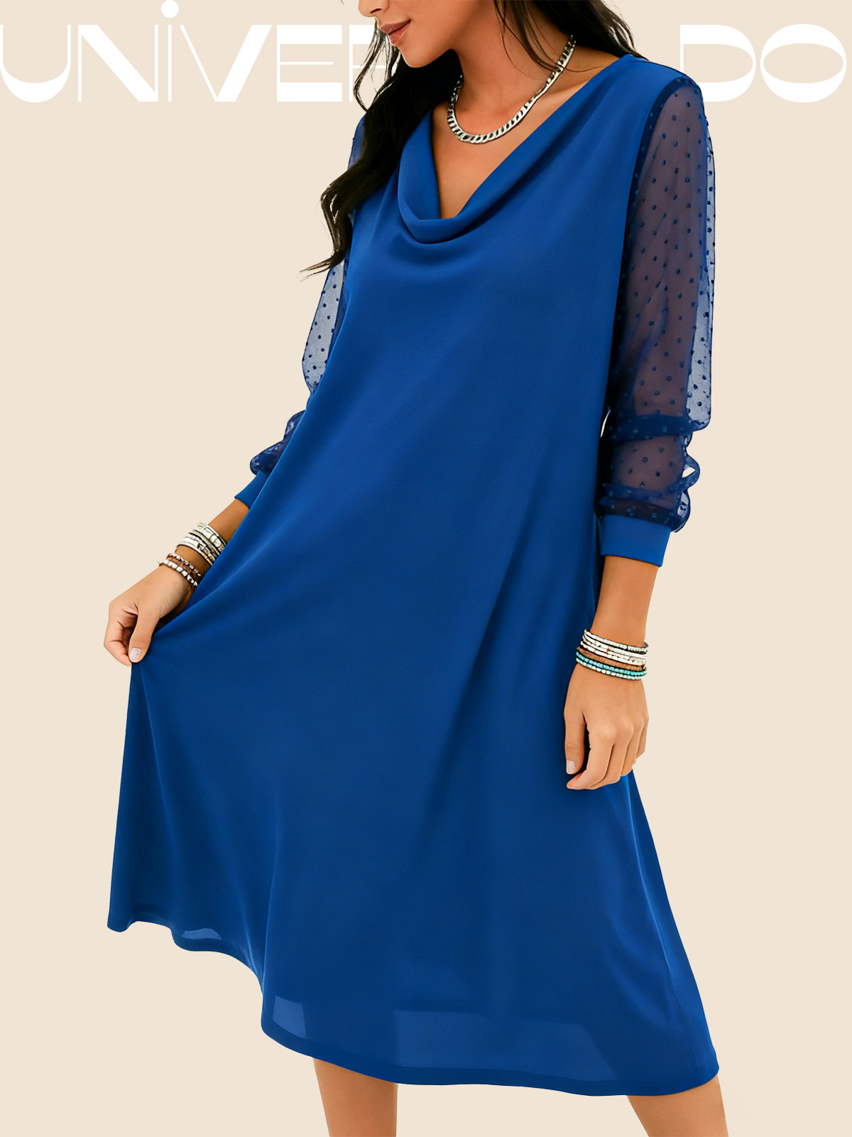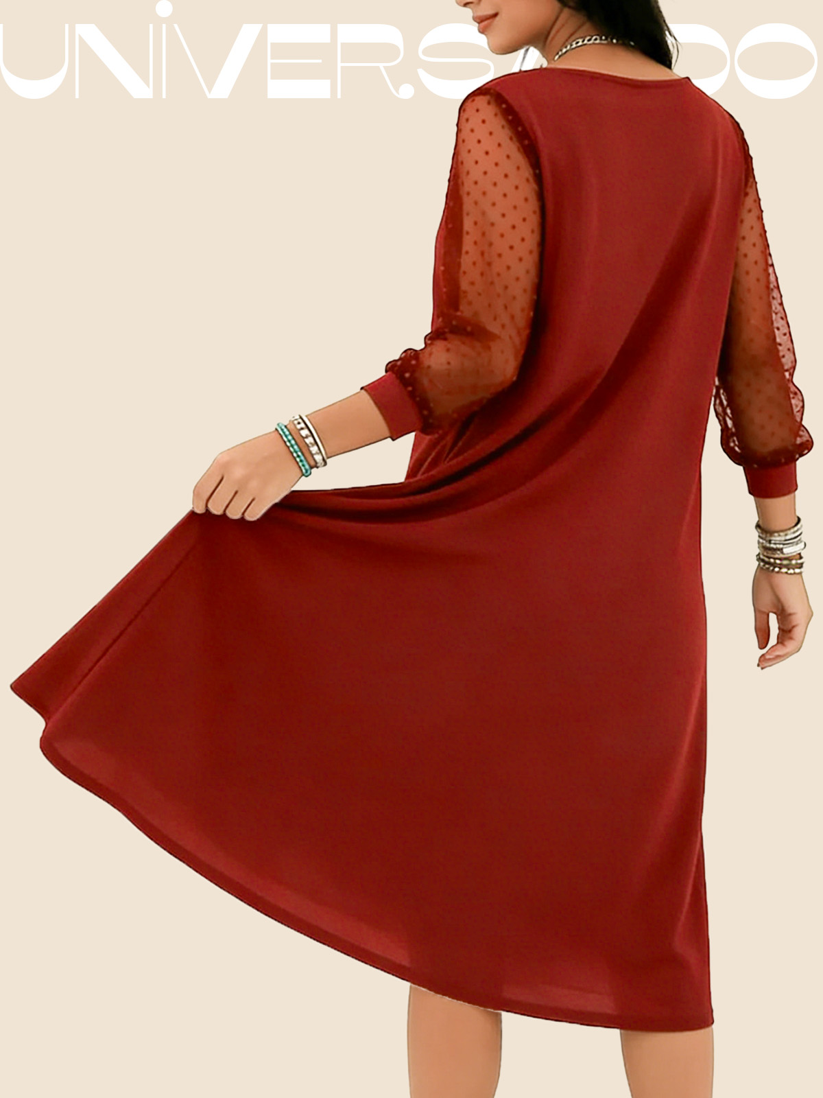 Ретро Рокля с Дълбоко Яка и Мрежести Ръкави