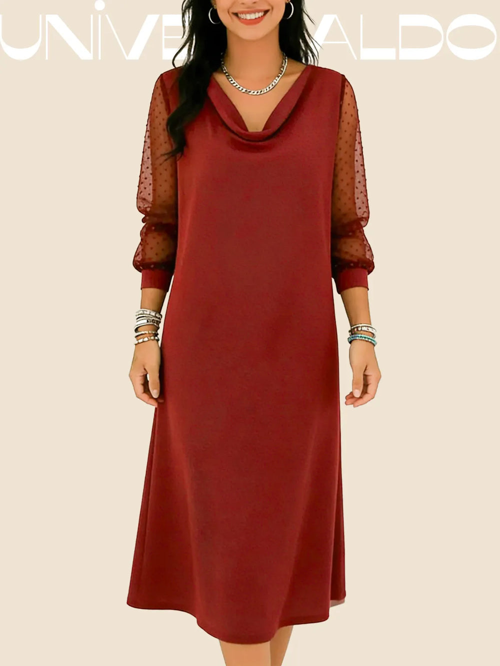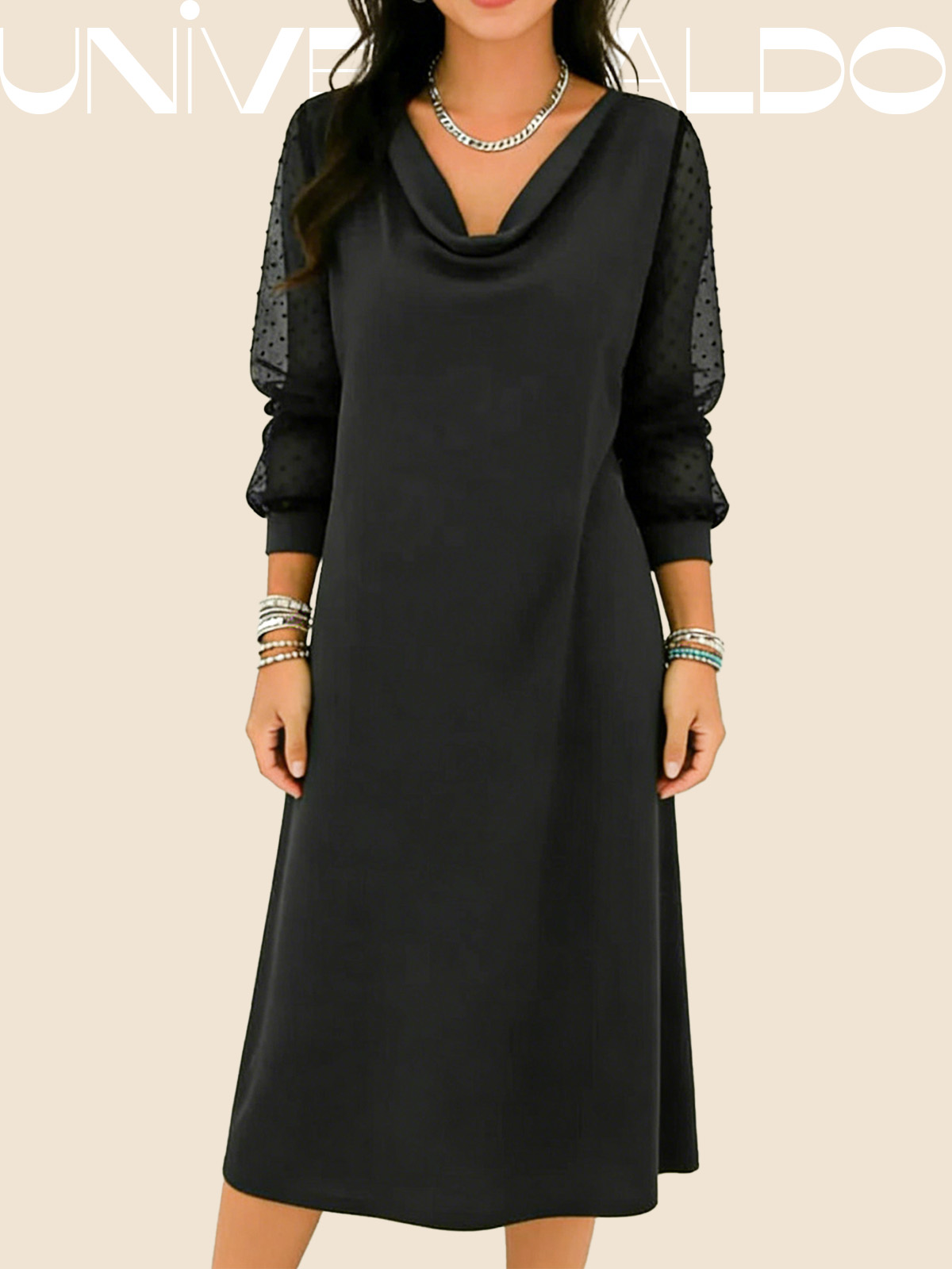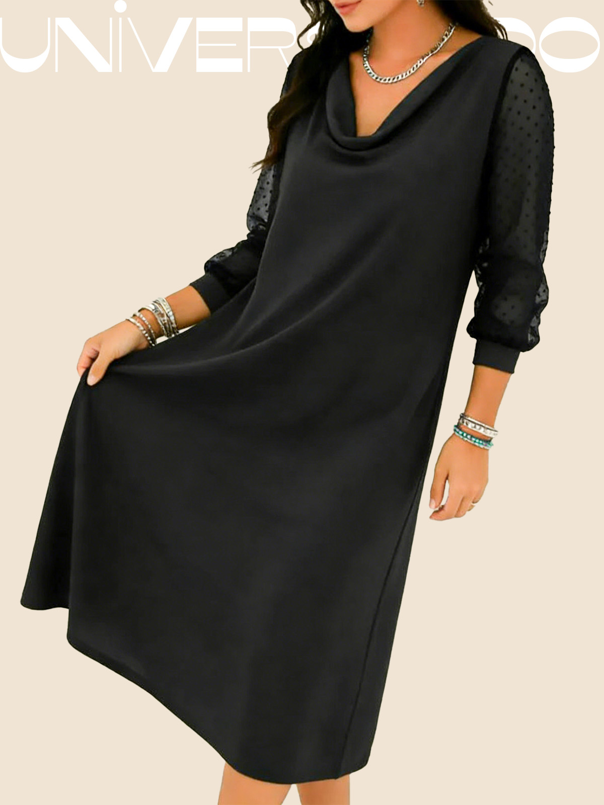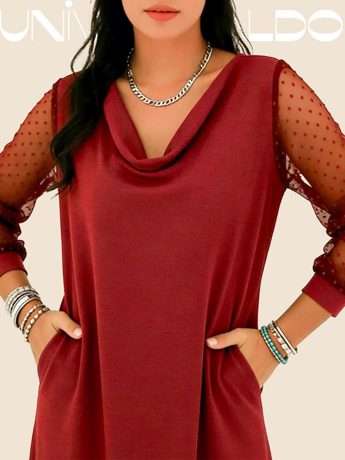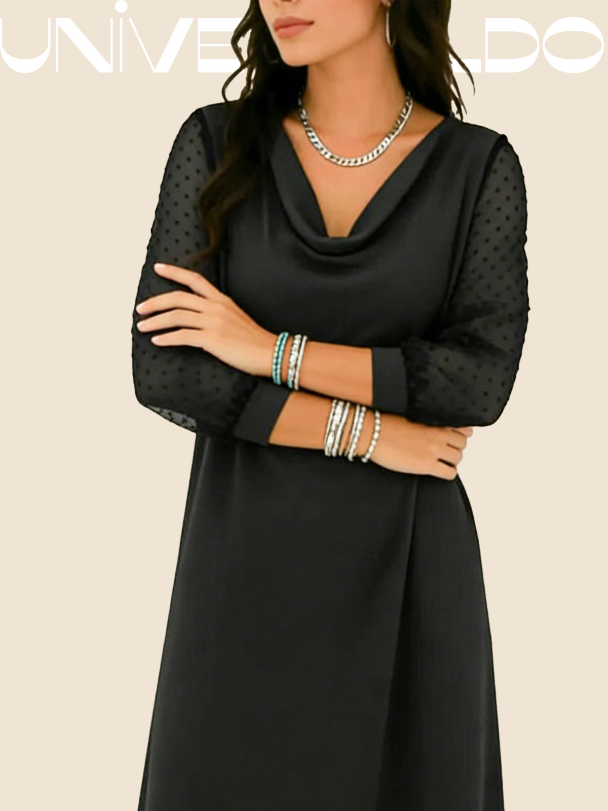 Ретро Рокля с Дълбоко Яка и Мрежести Ръкави