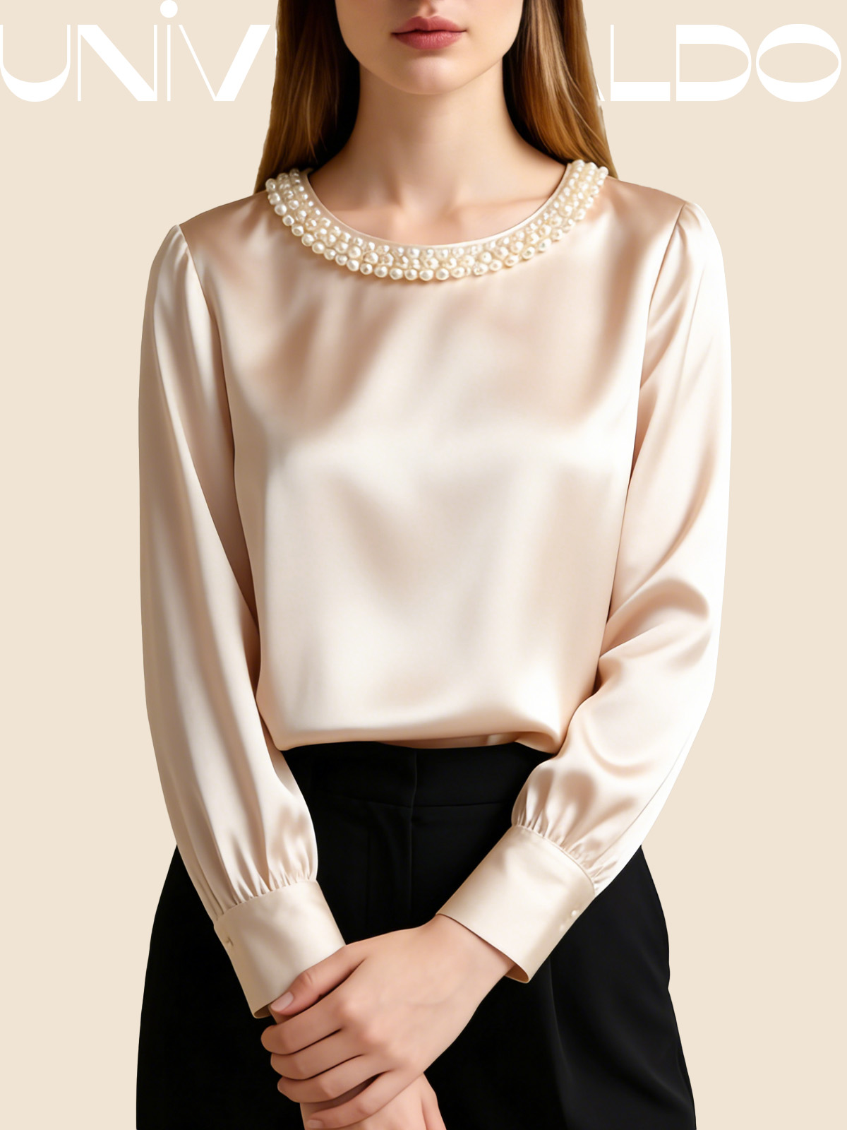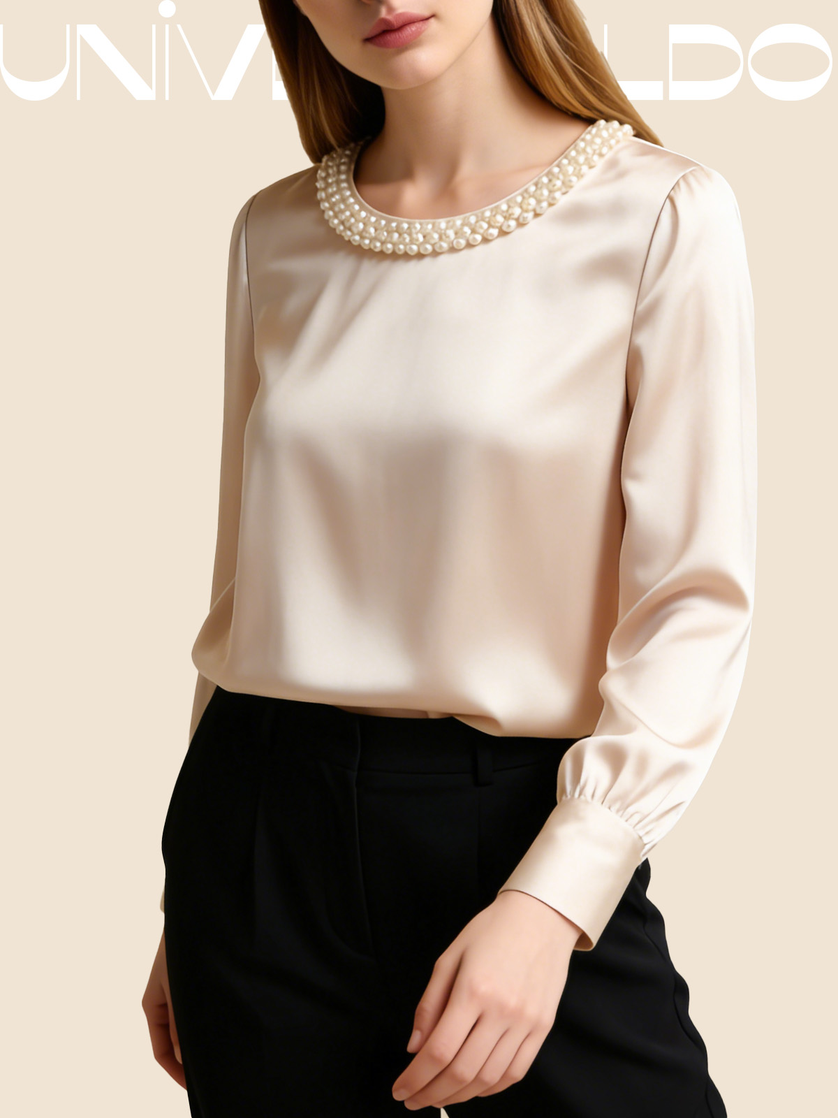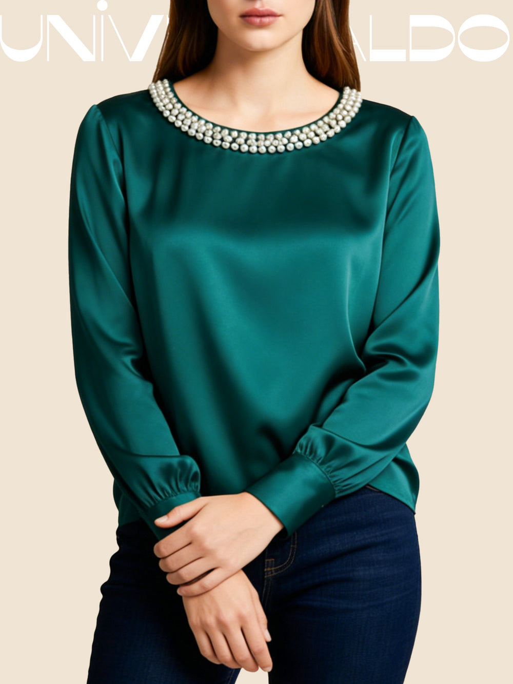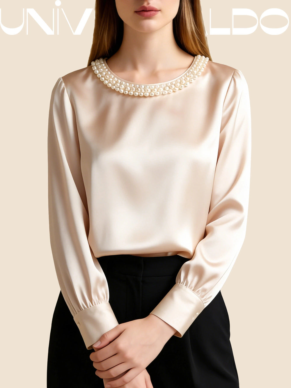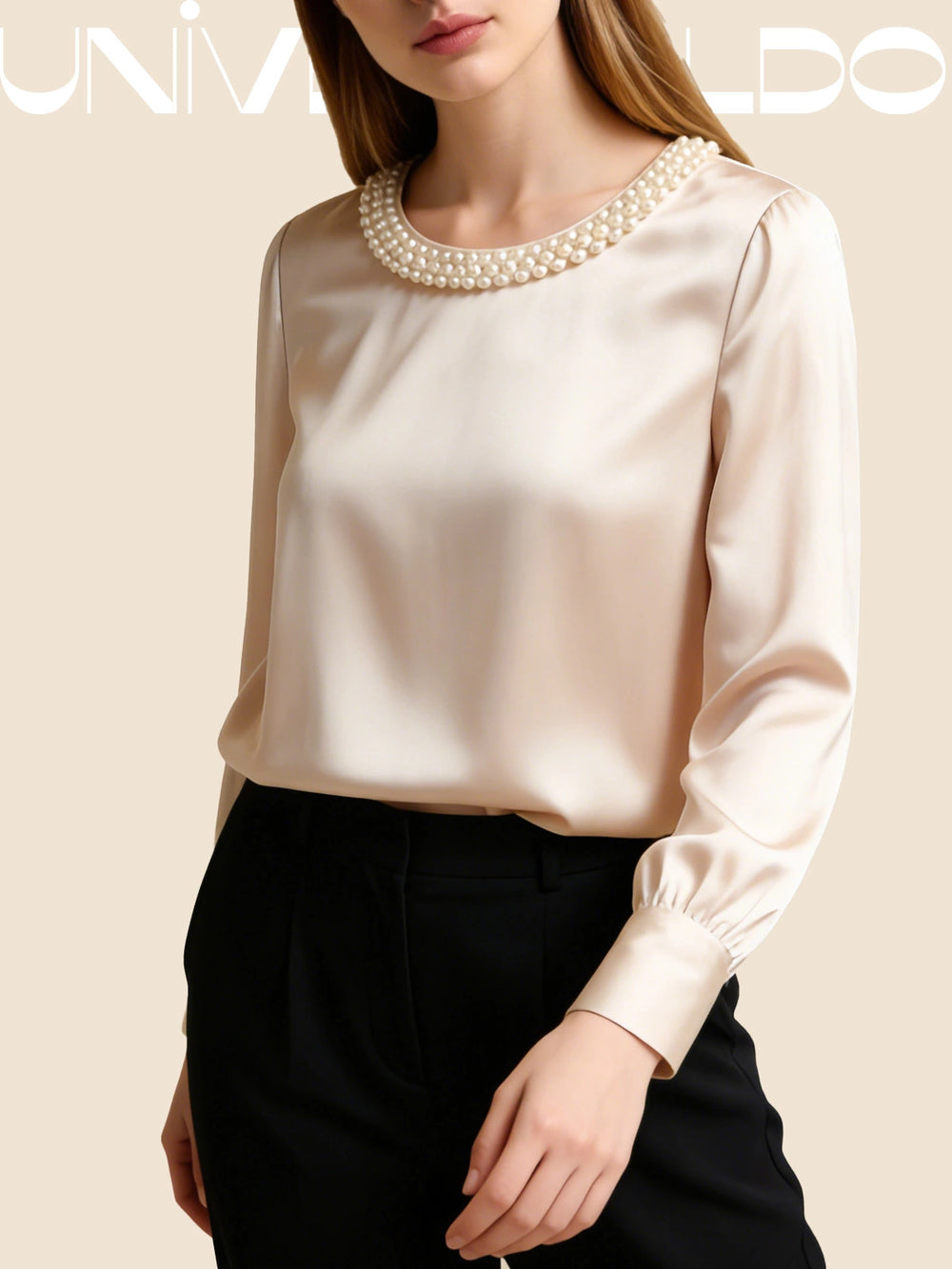 Сатенена Блуза с Кръгла Яка и Перли