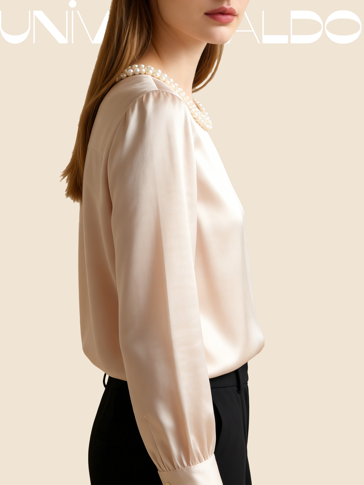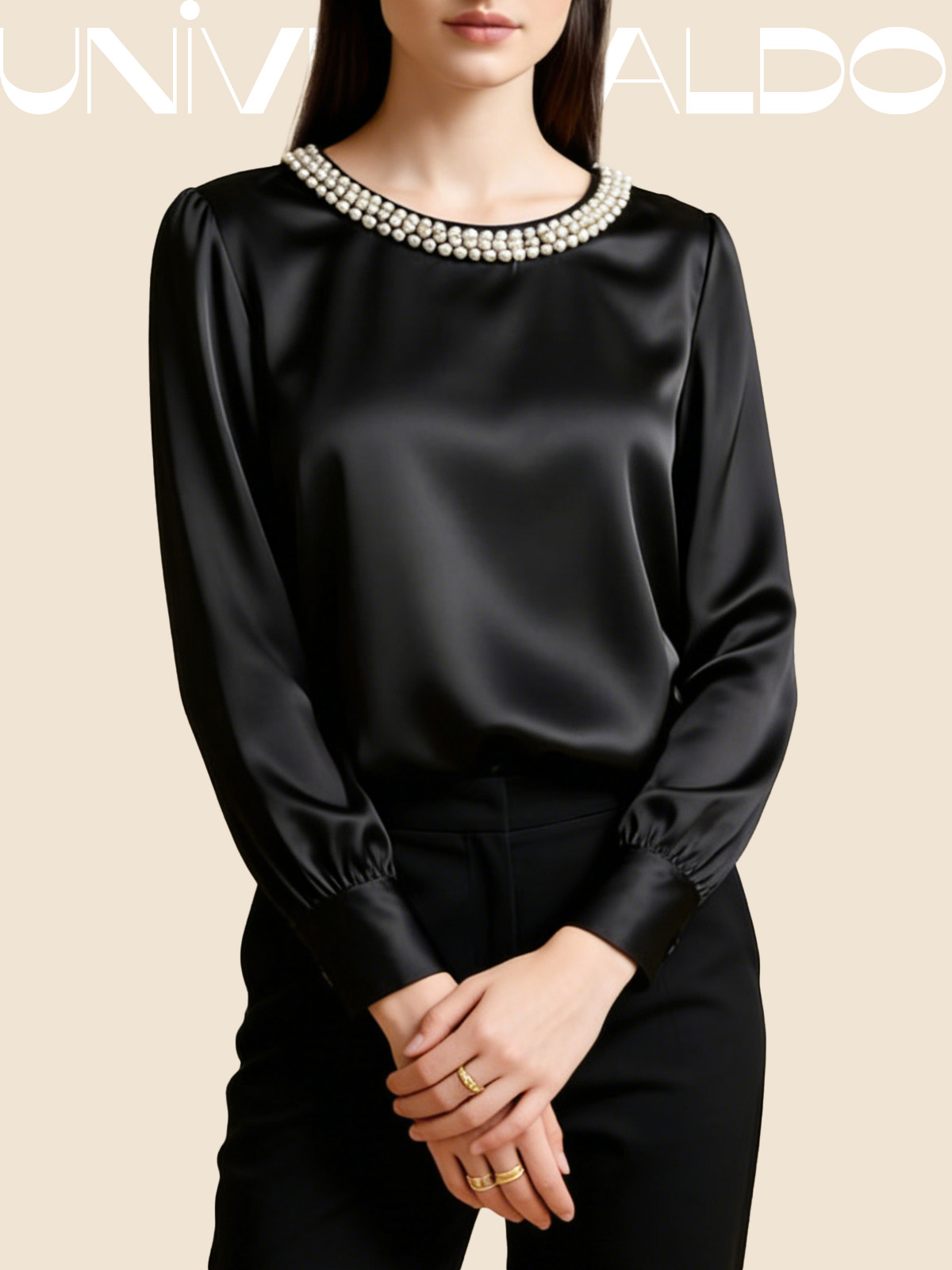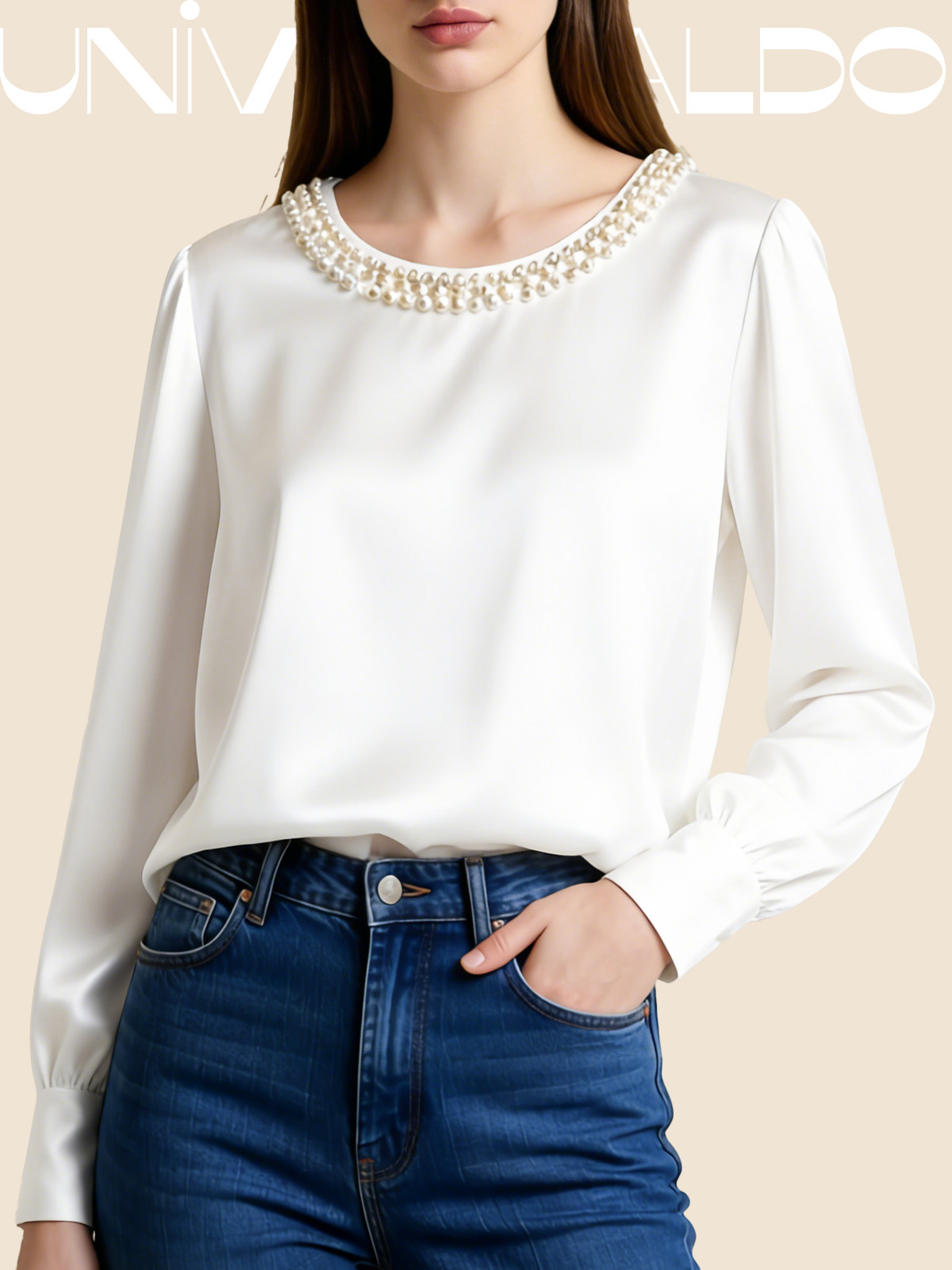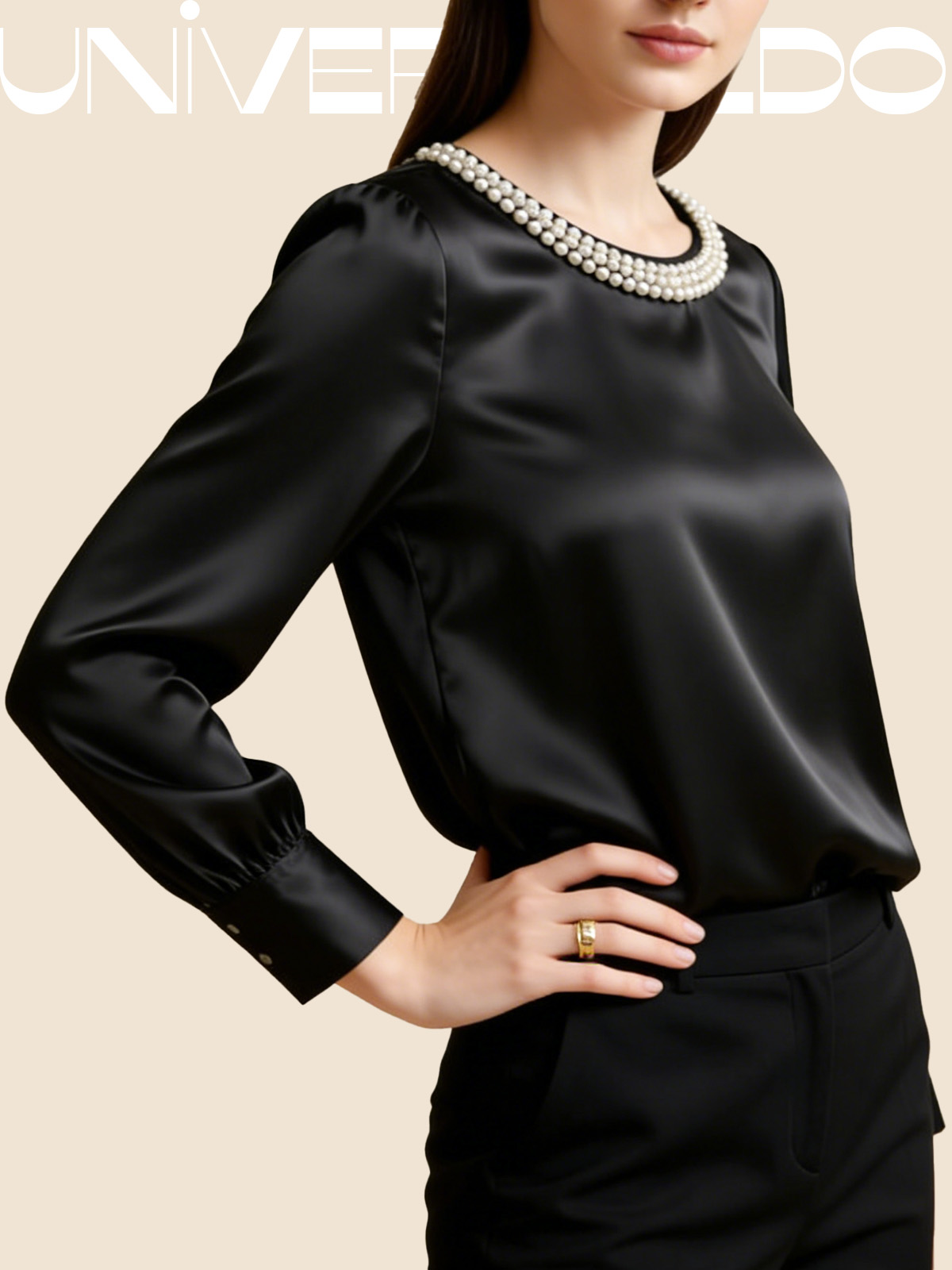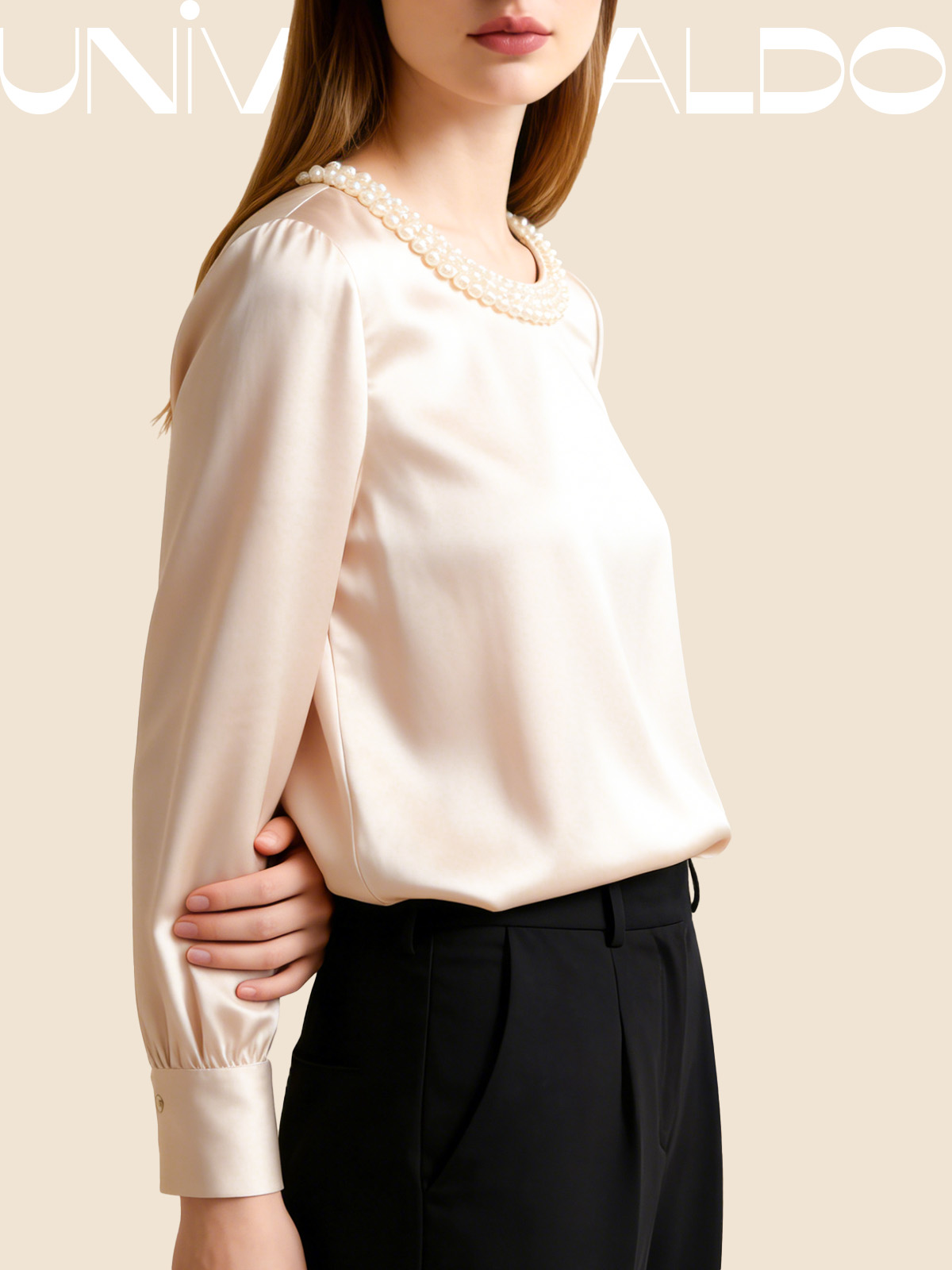 Сатенена Блуза с Кръгла Яка и Перли