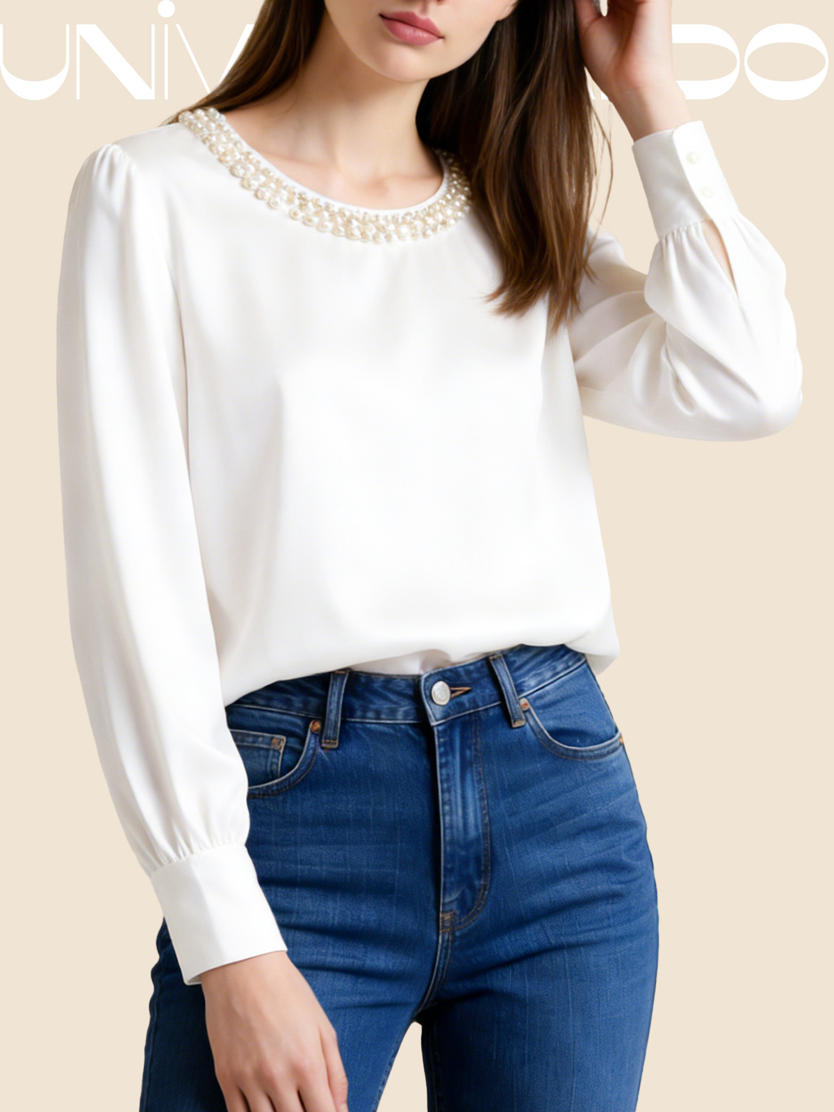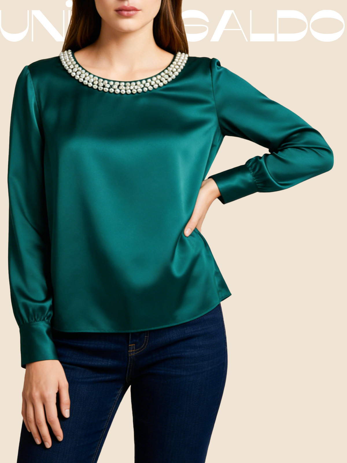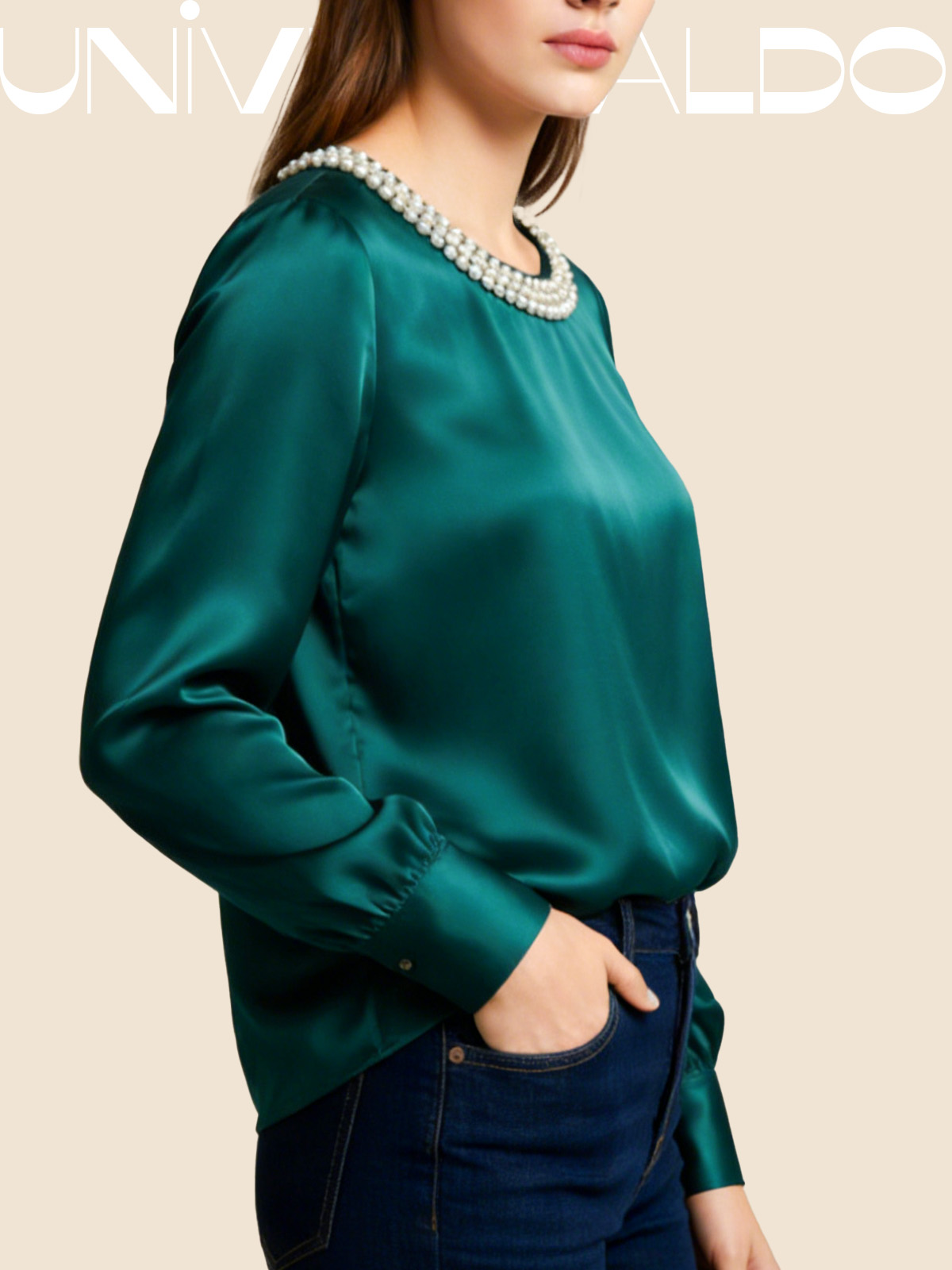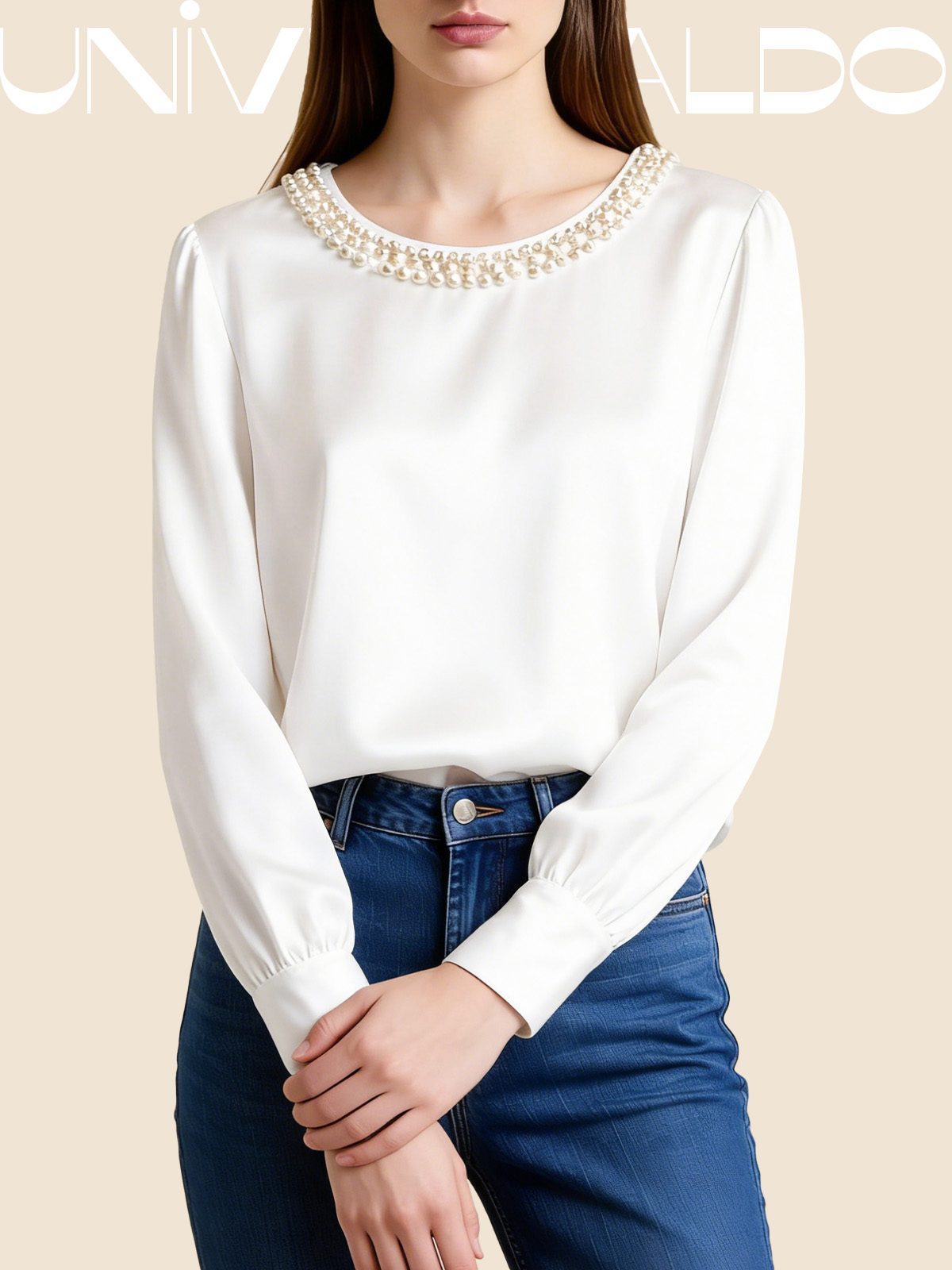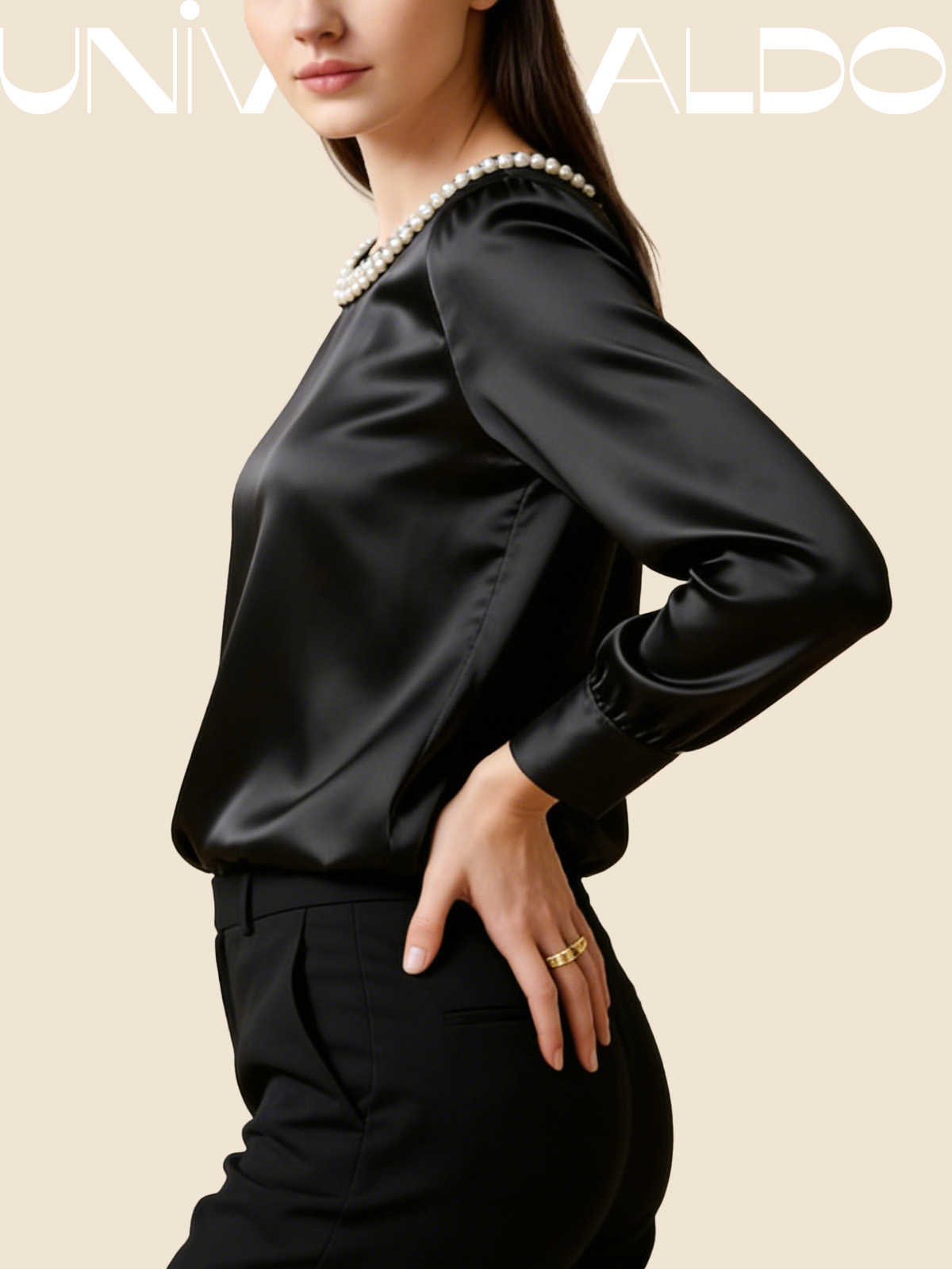 Сатенена Блуза с Кръгла Яка и Перли