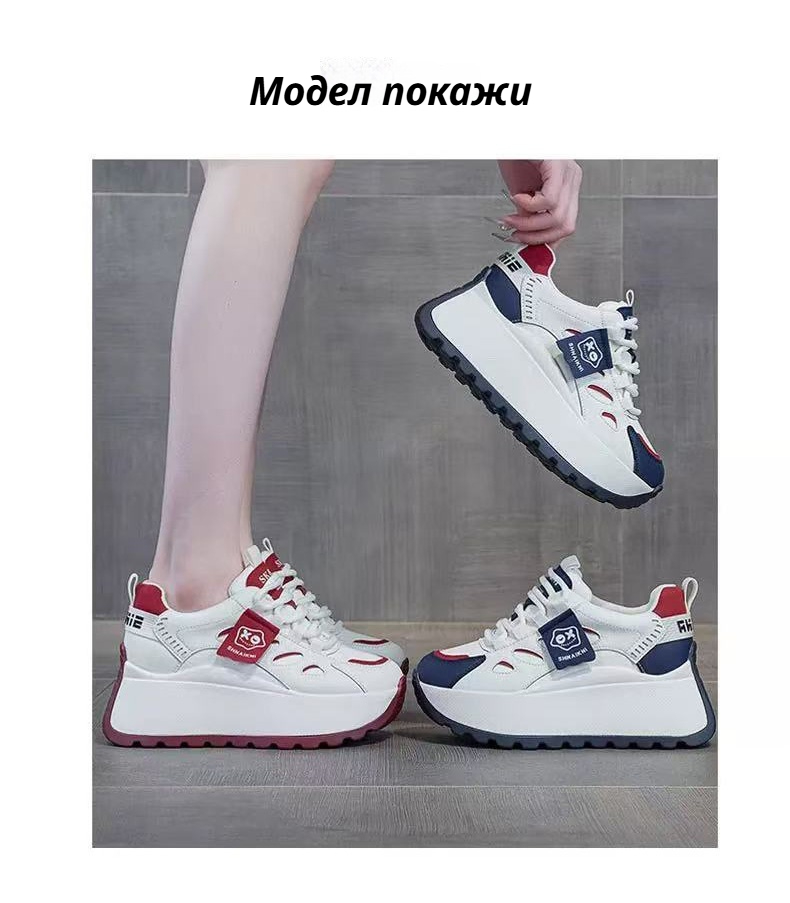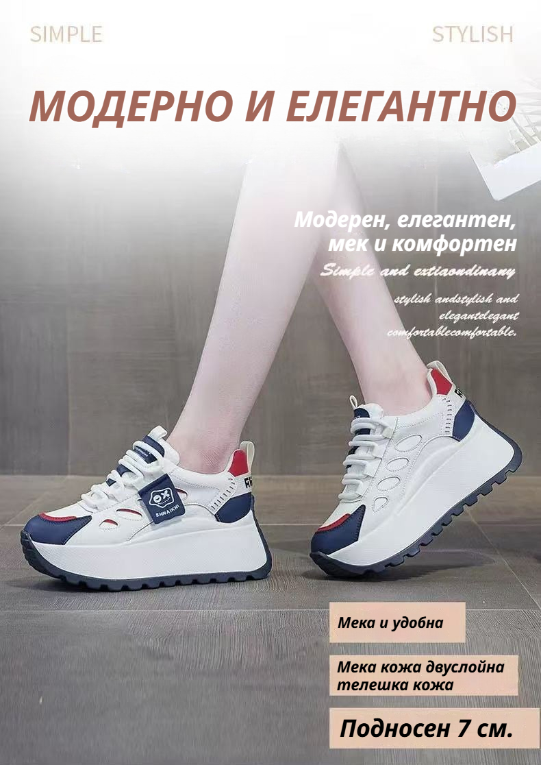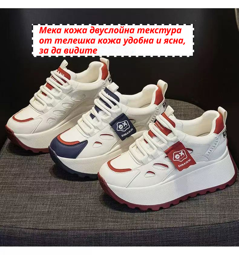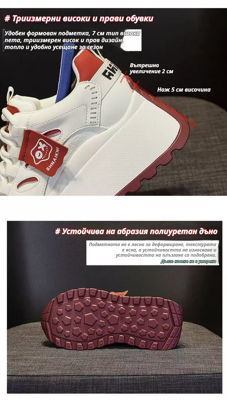 Спортни Обувки с Комбинирани Цветове, Дебела Подметка и Вградена Височина