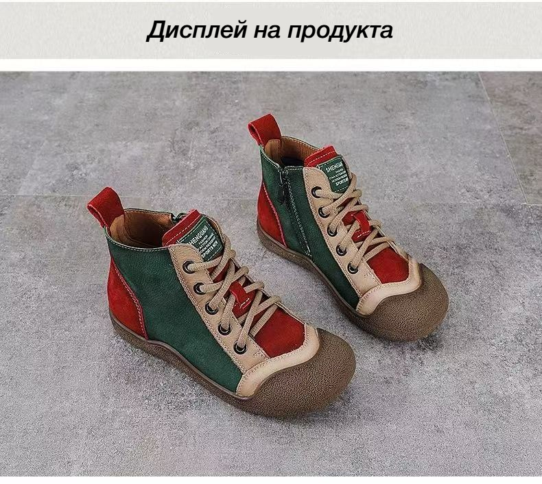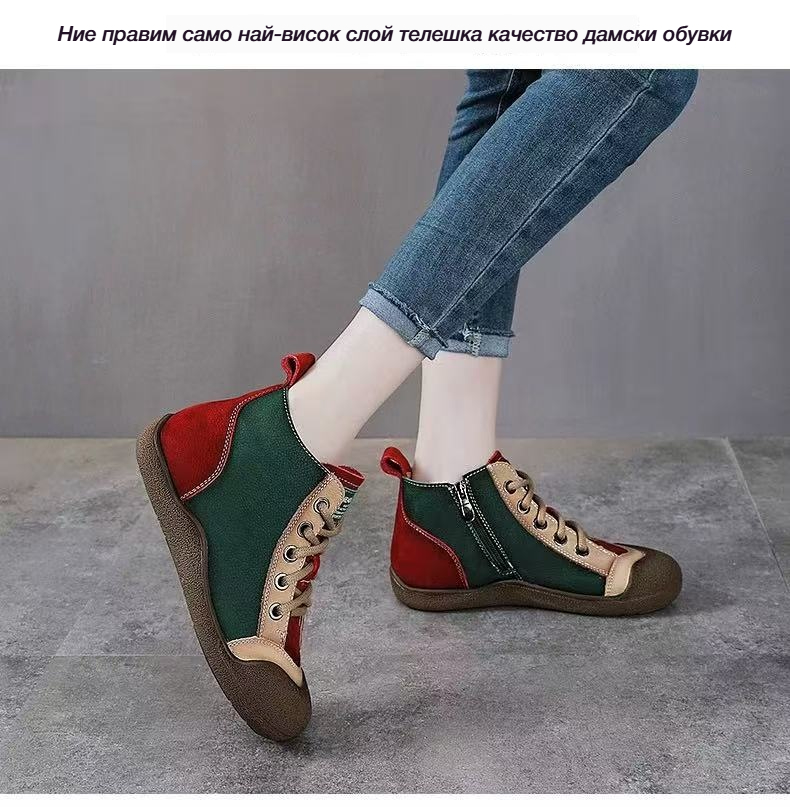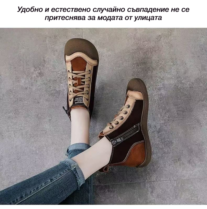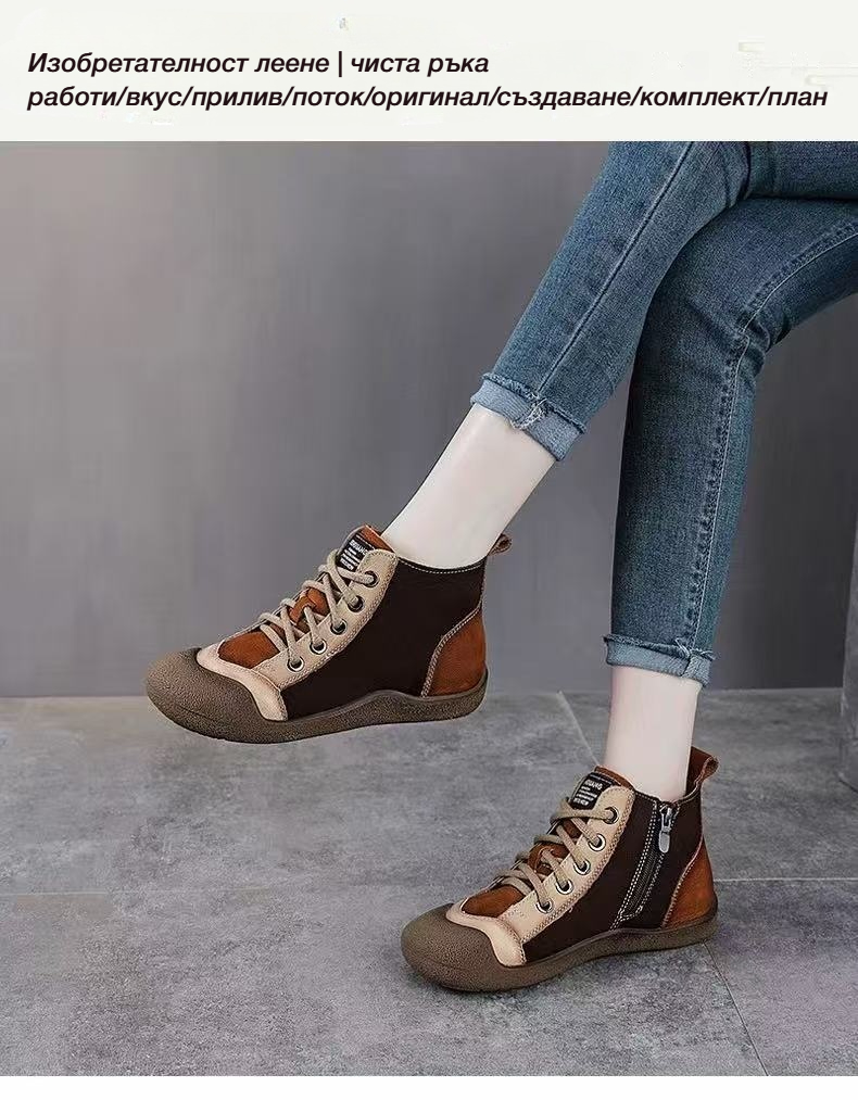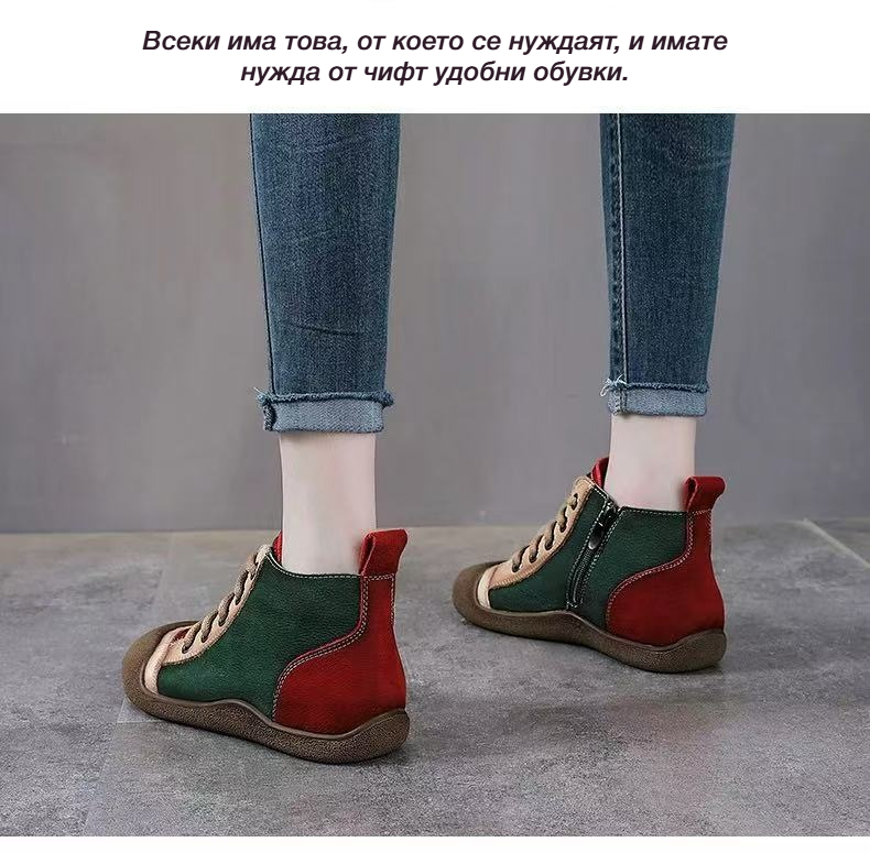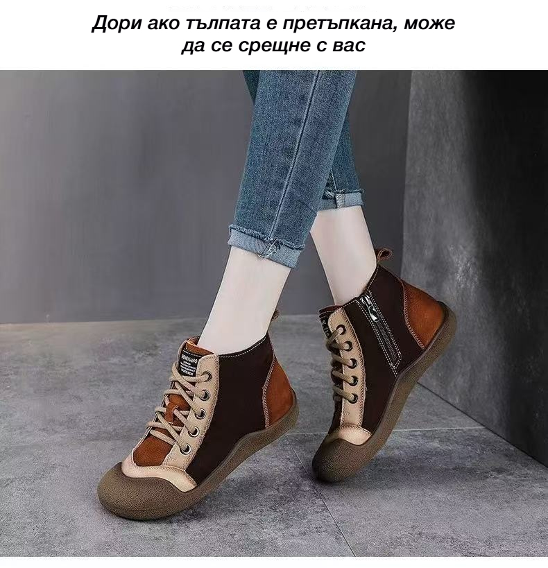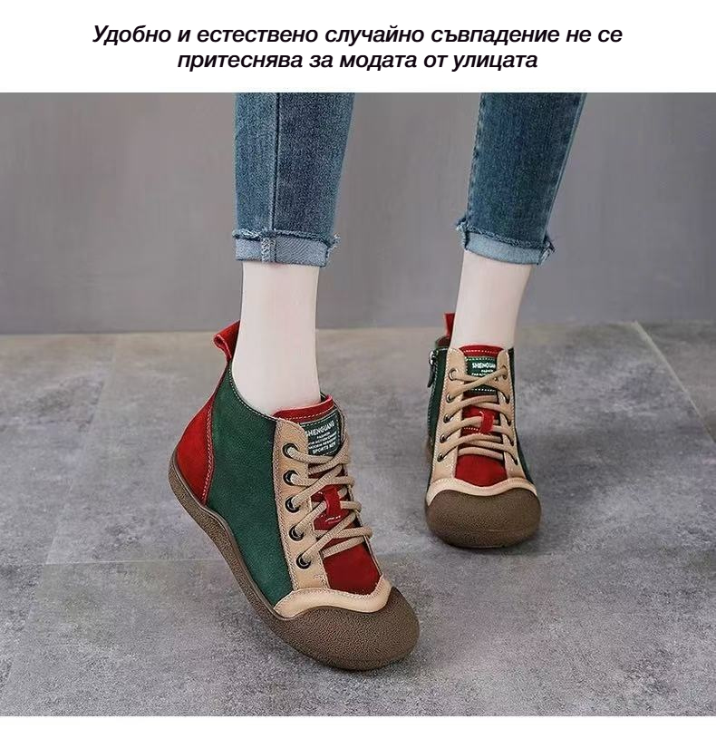 Спортни Обувки с Комбинирани Цветове, Мека Кожа и Връзки