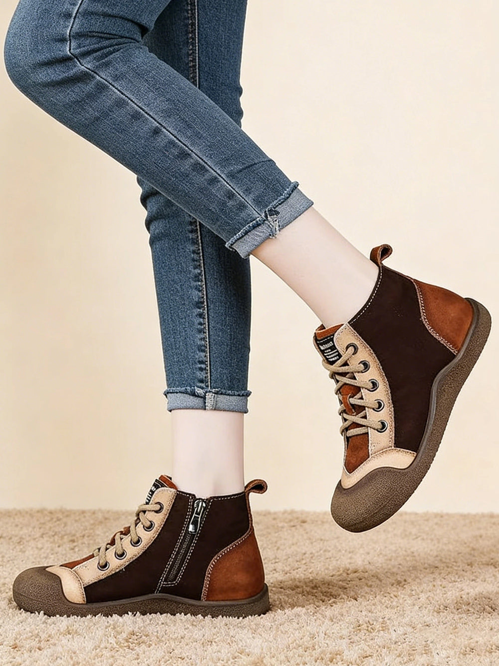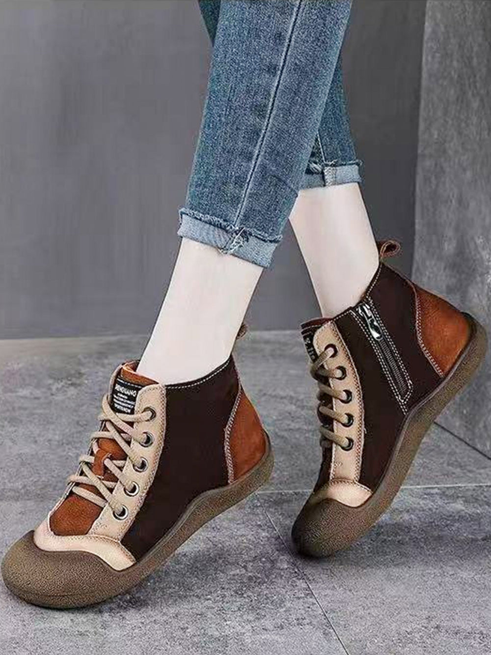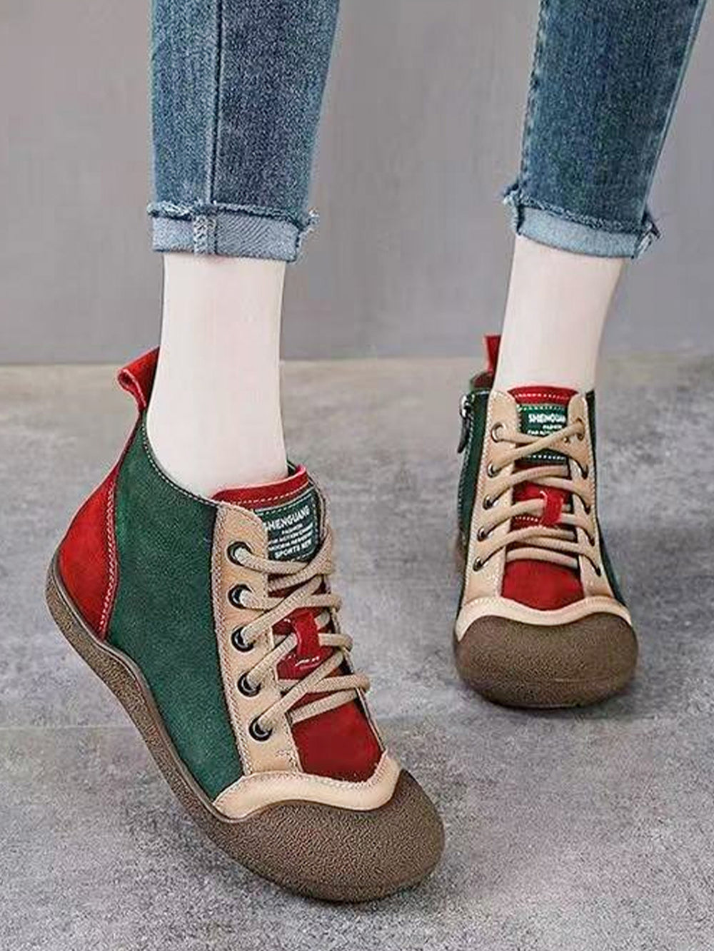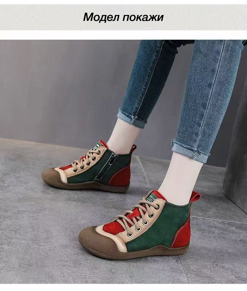 Спортни Обувки с Комбинирани Цветове, Мека Кожа и Връзки