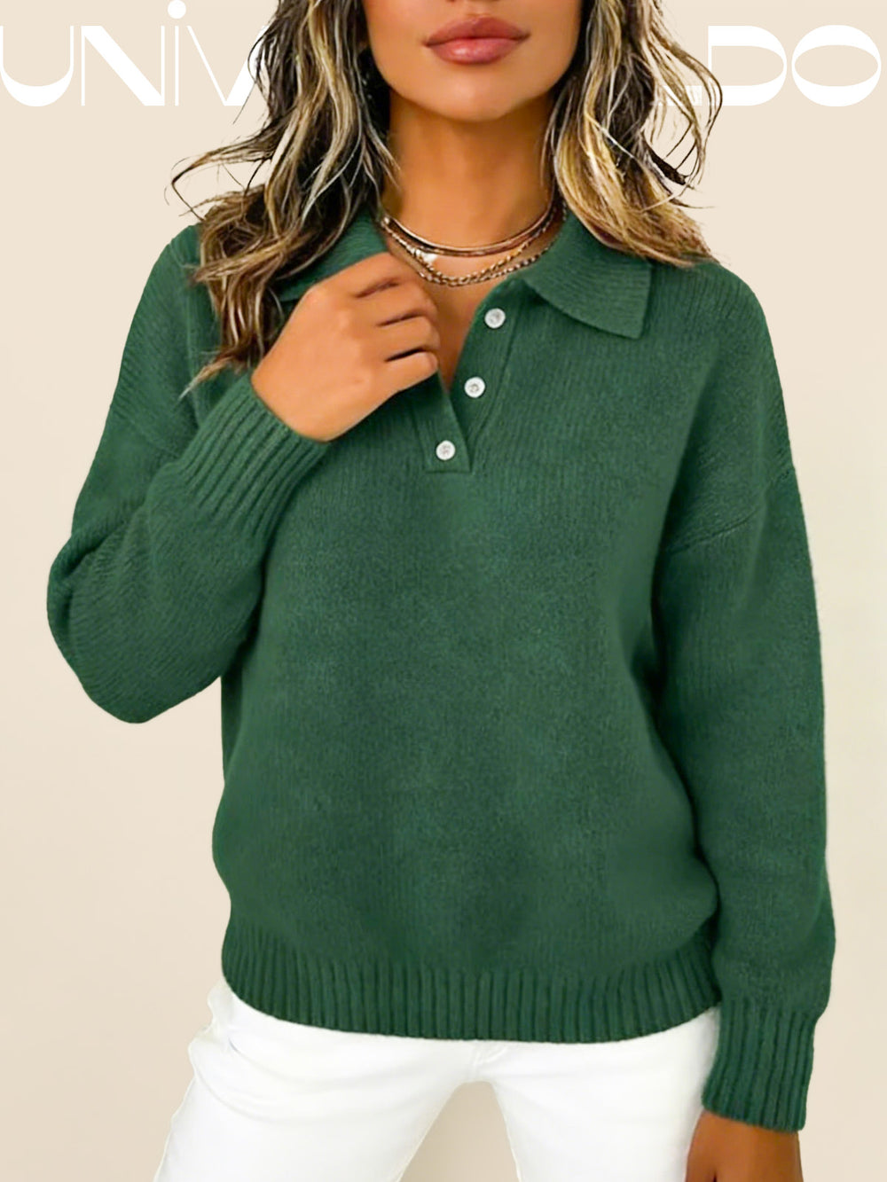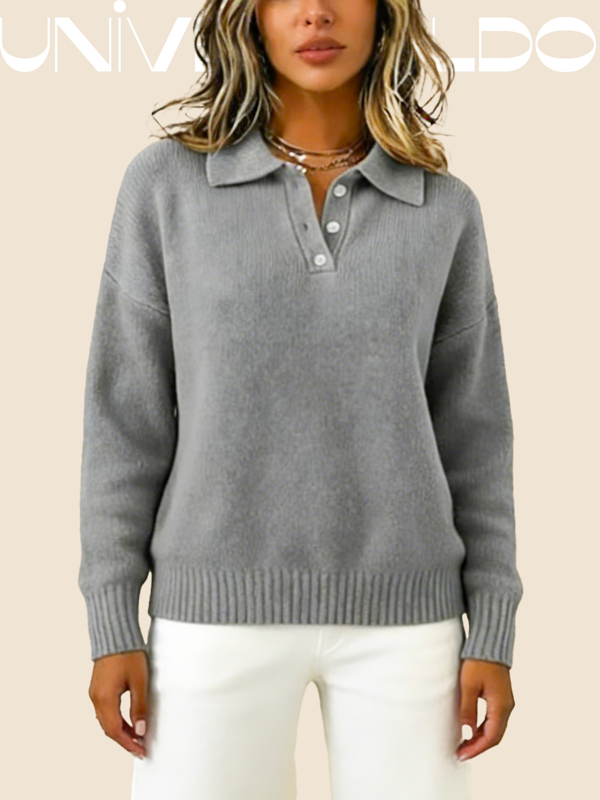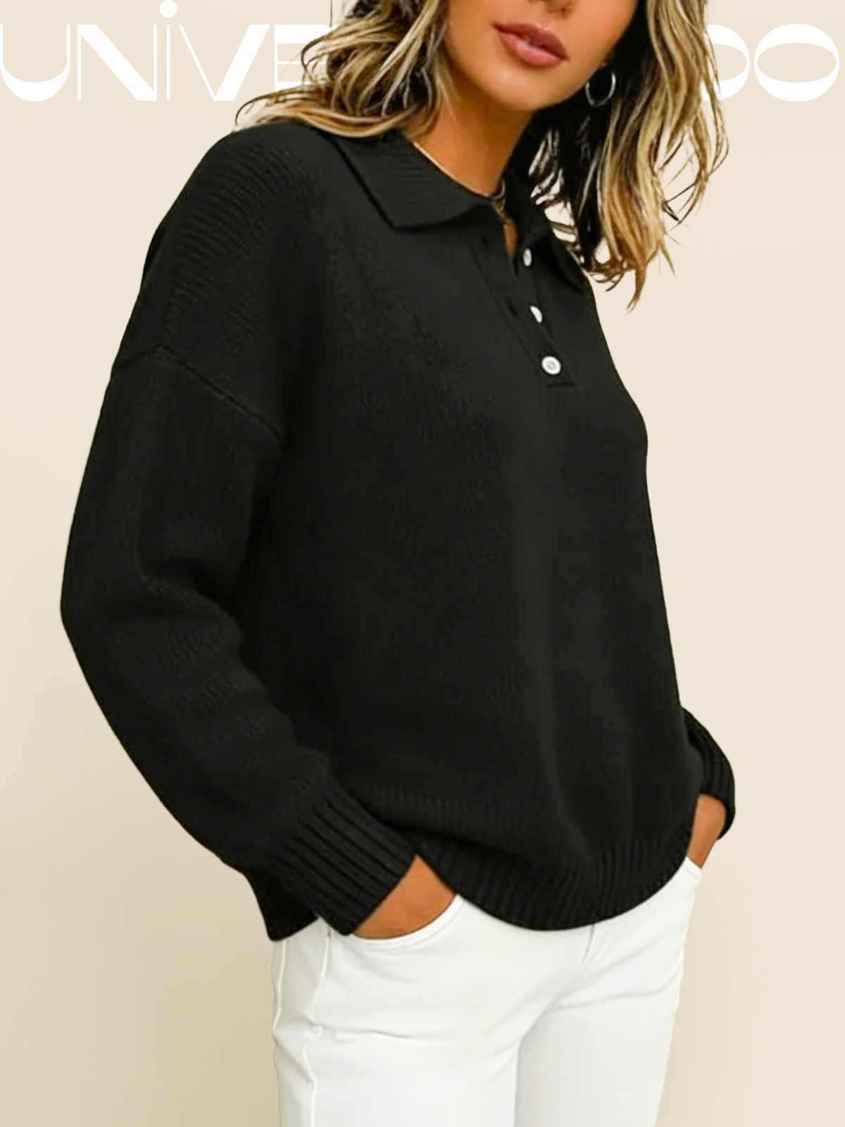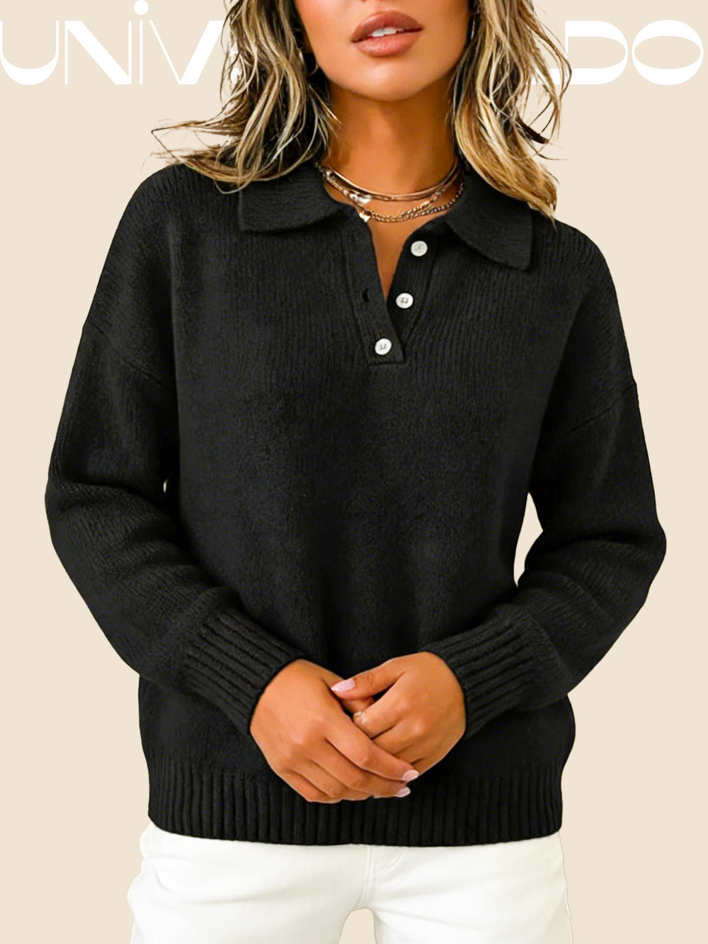 Тениска с Кръгла Яка, Копчета и Дълъг Ръкав в Свободен Крой