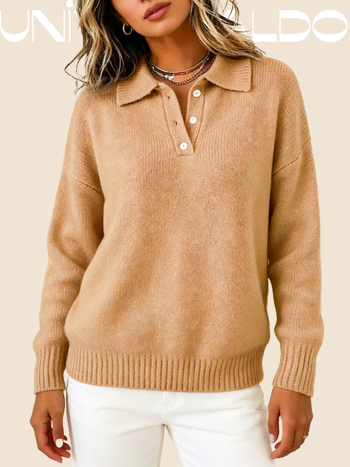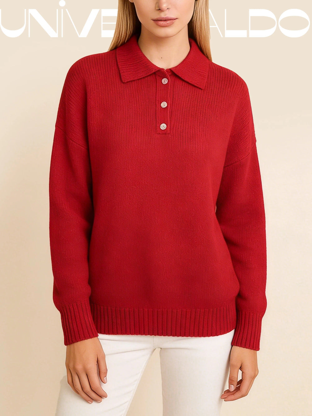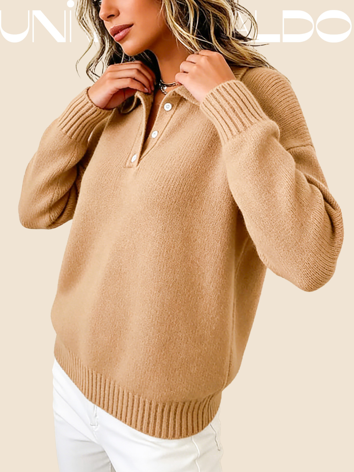 Тениска с Кръгла Яка, Копчета и Дълъг Ръкав в Свободен Крой
