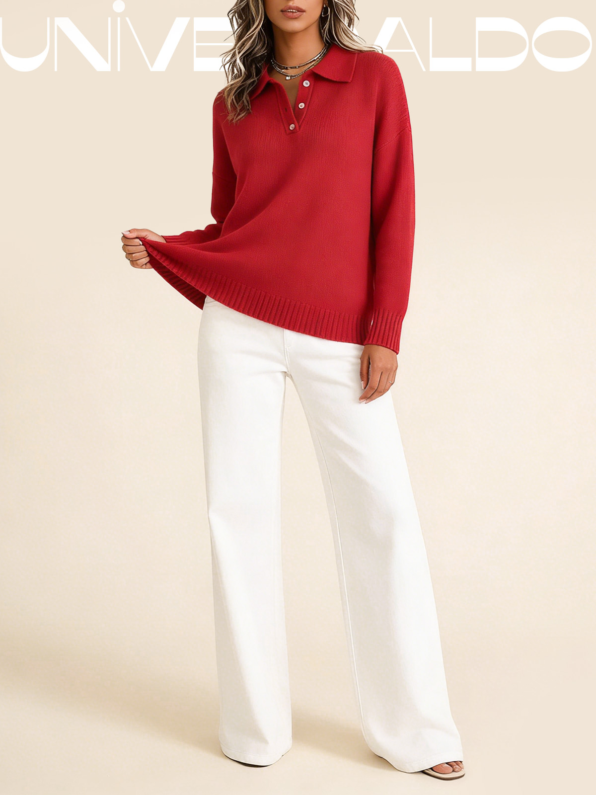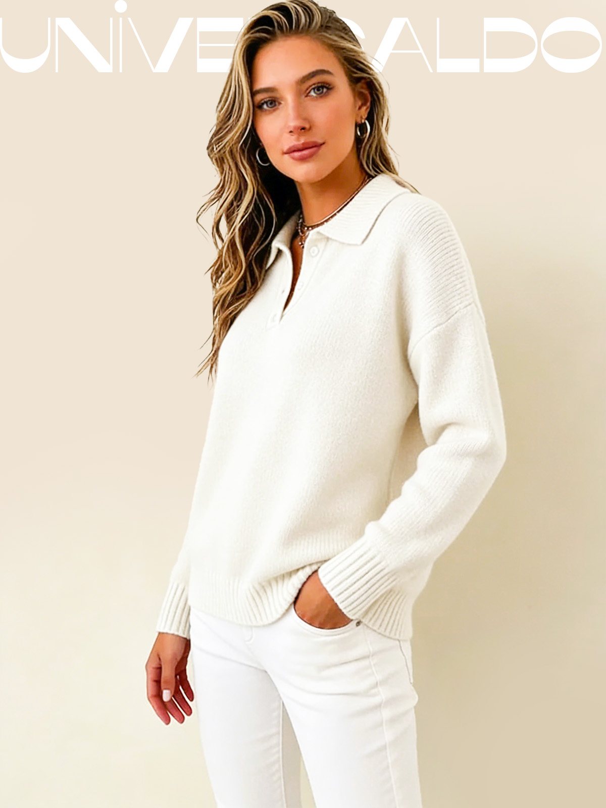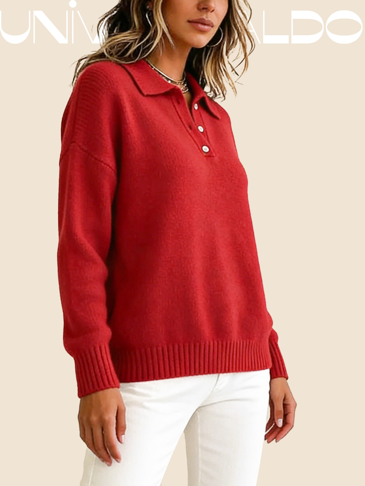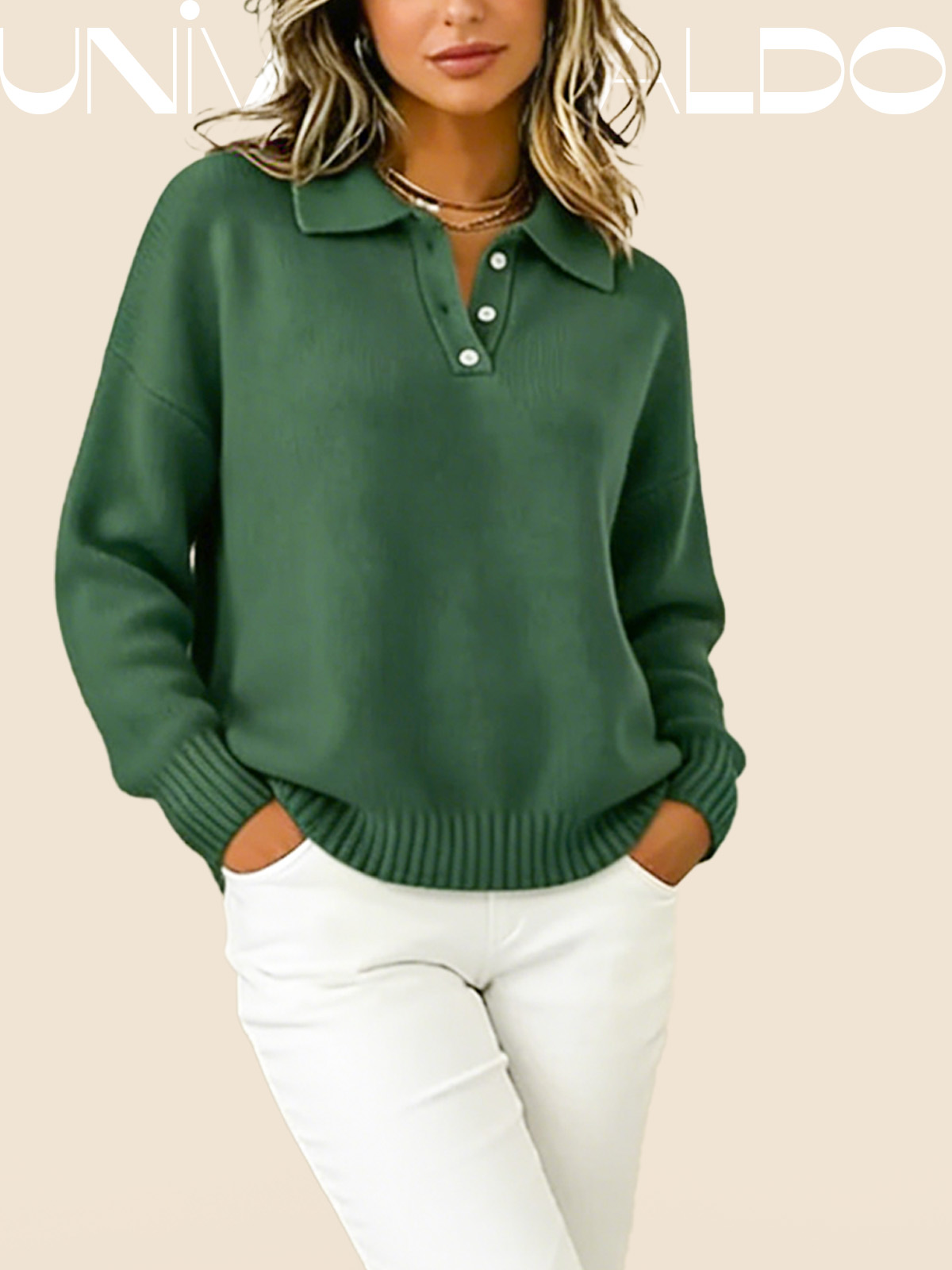 Тениска с Кръгла Яка, Копчета и Дълъг Ръкав в Свободен Крой
