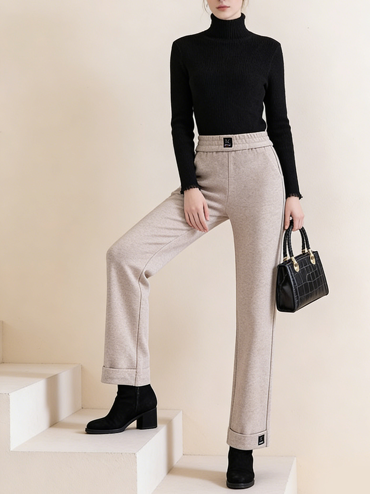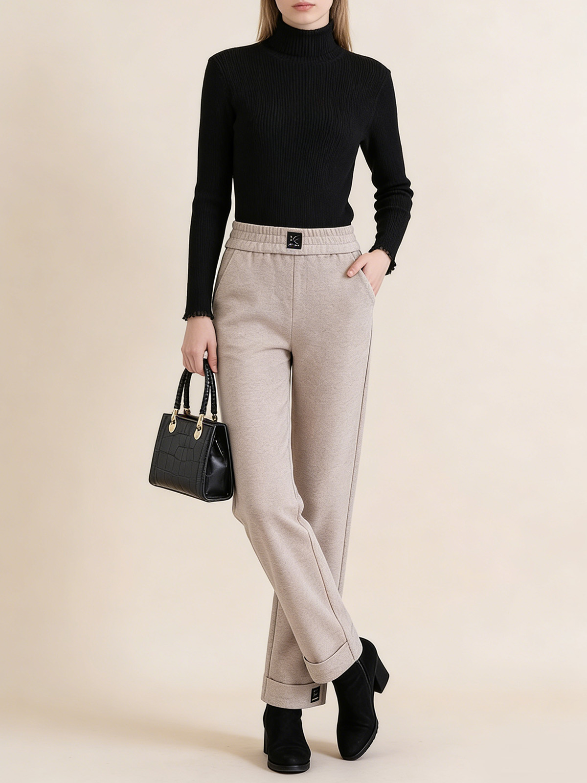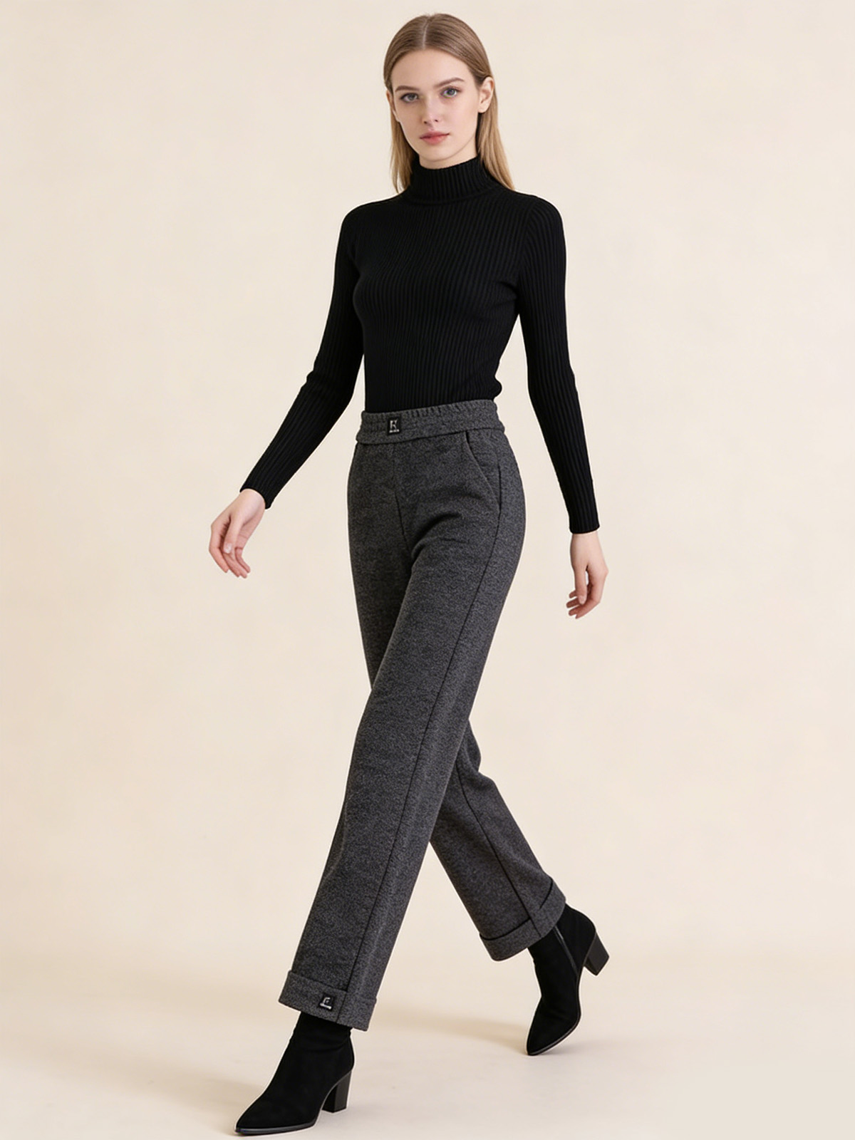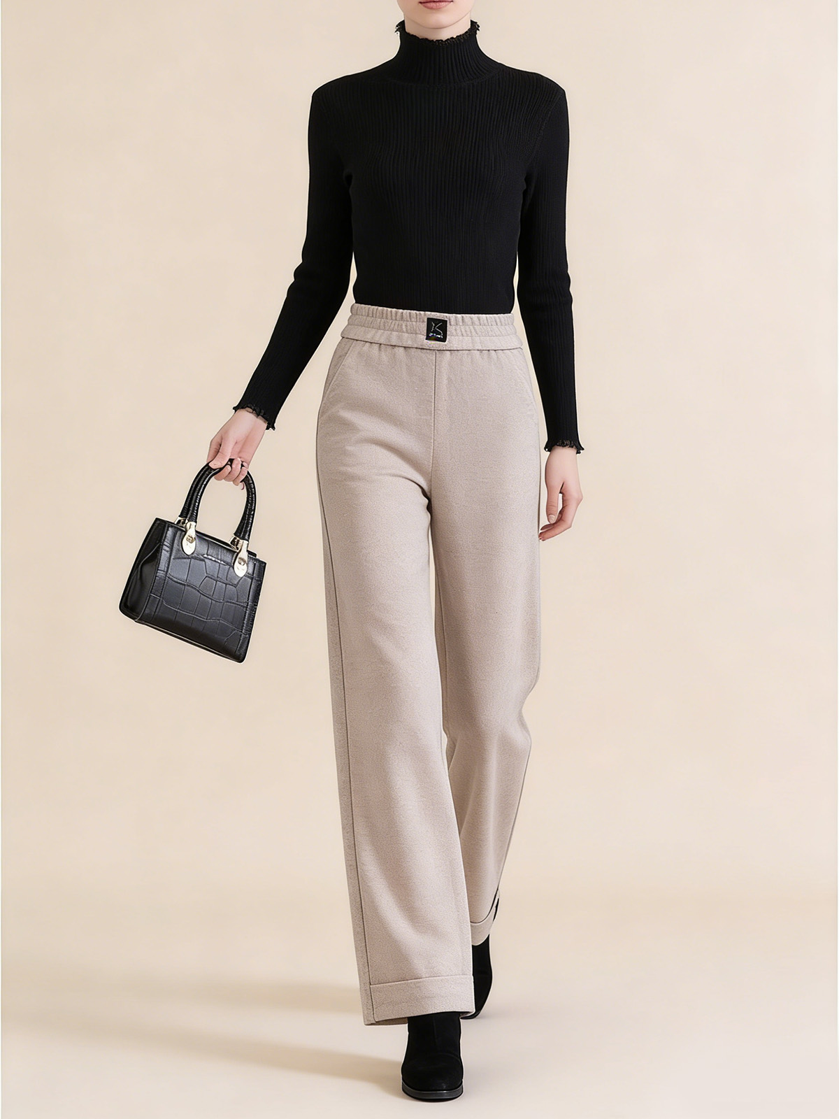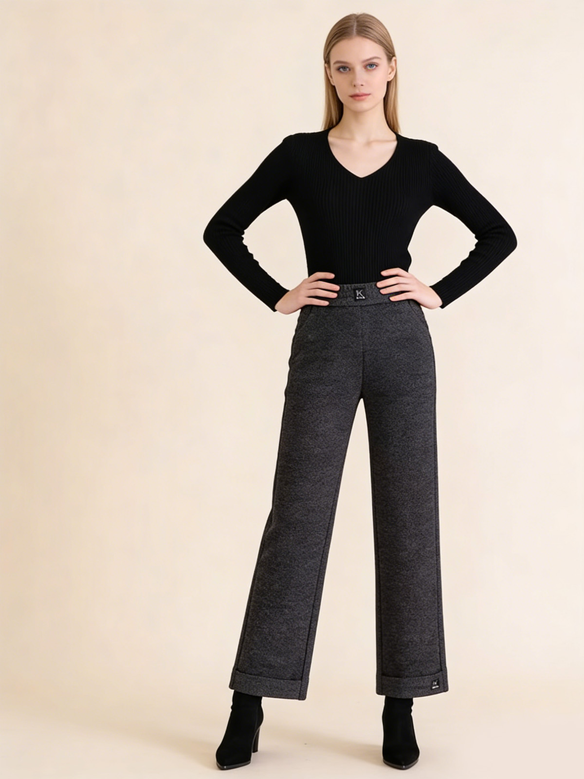 Топли Кашмирени Панталони с Широк Крой до Глезен