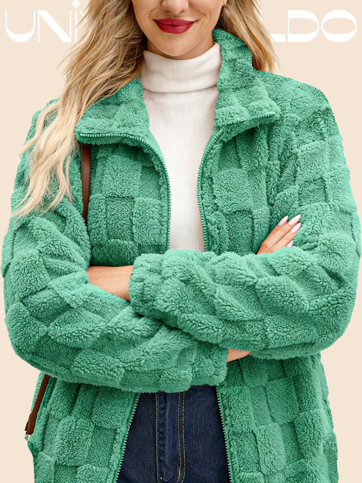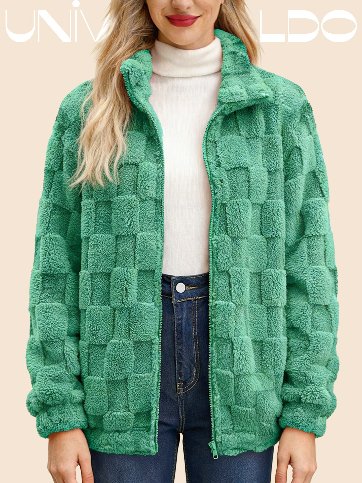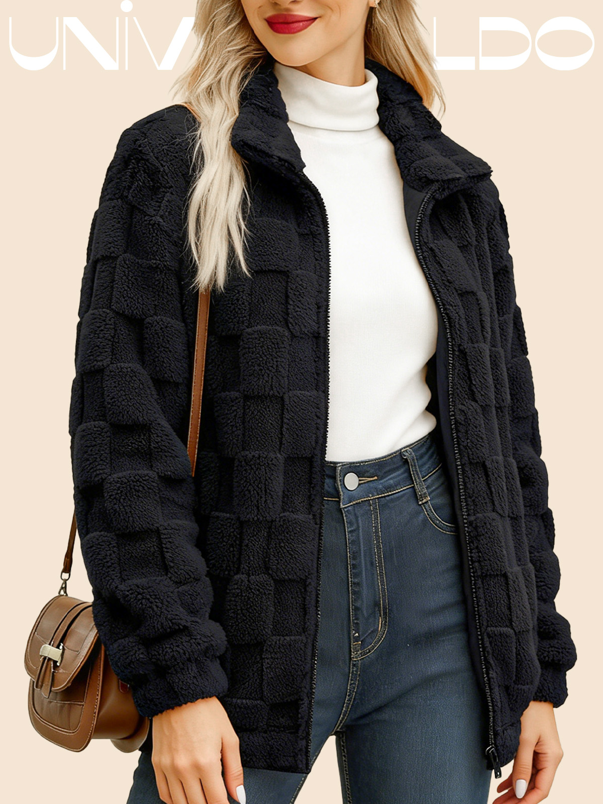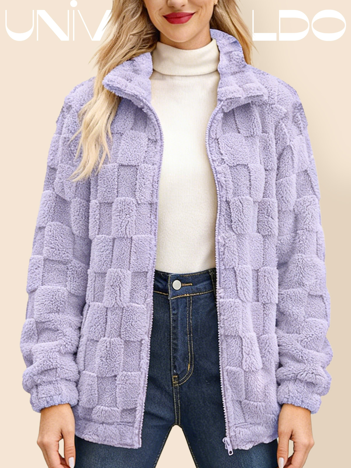 Яке с Изправена Яка, Каре и Молния от Имитиран Кож