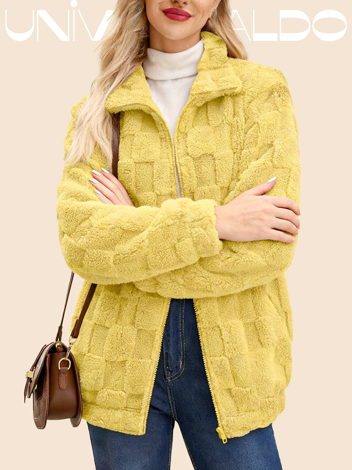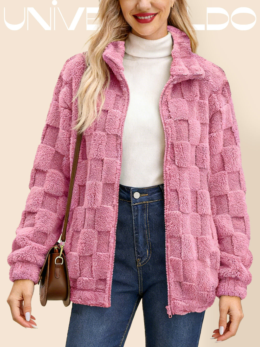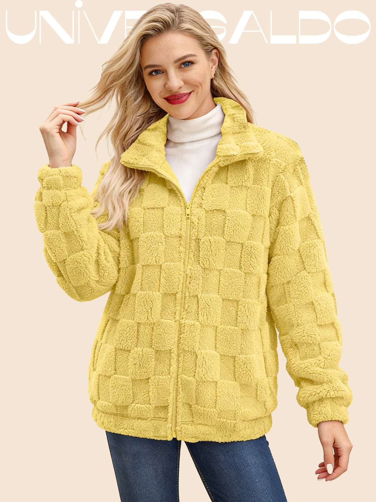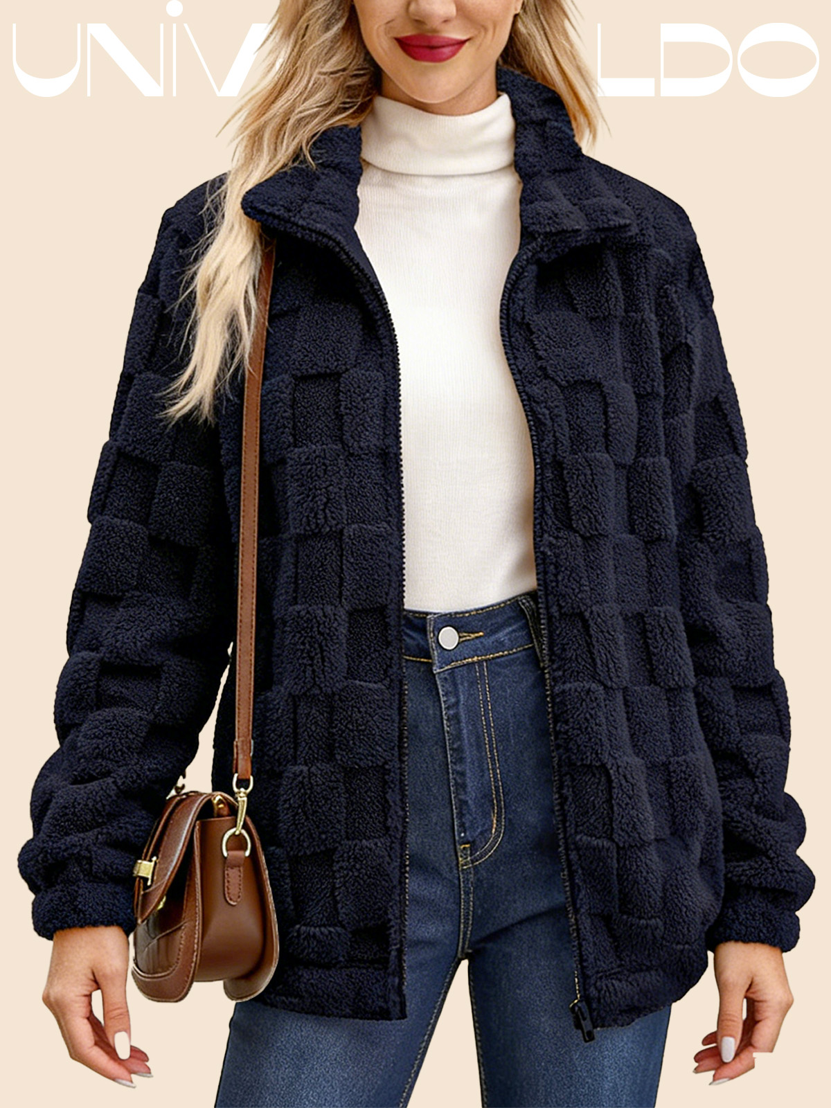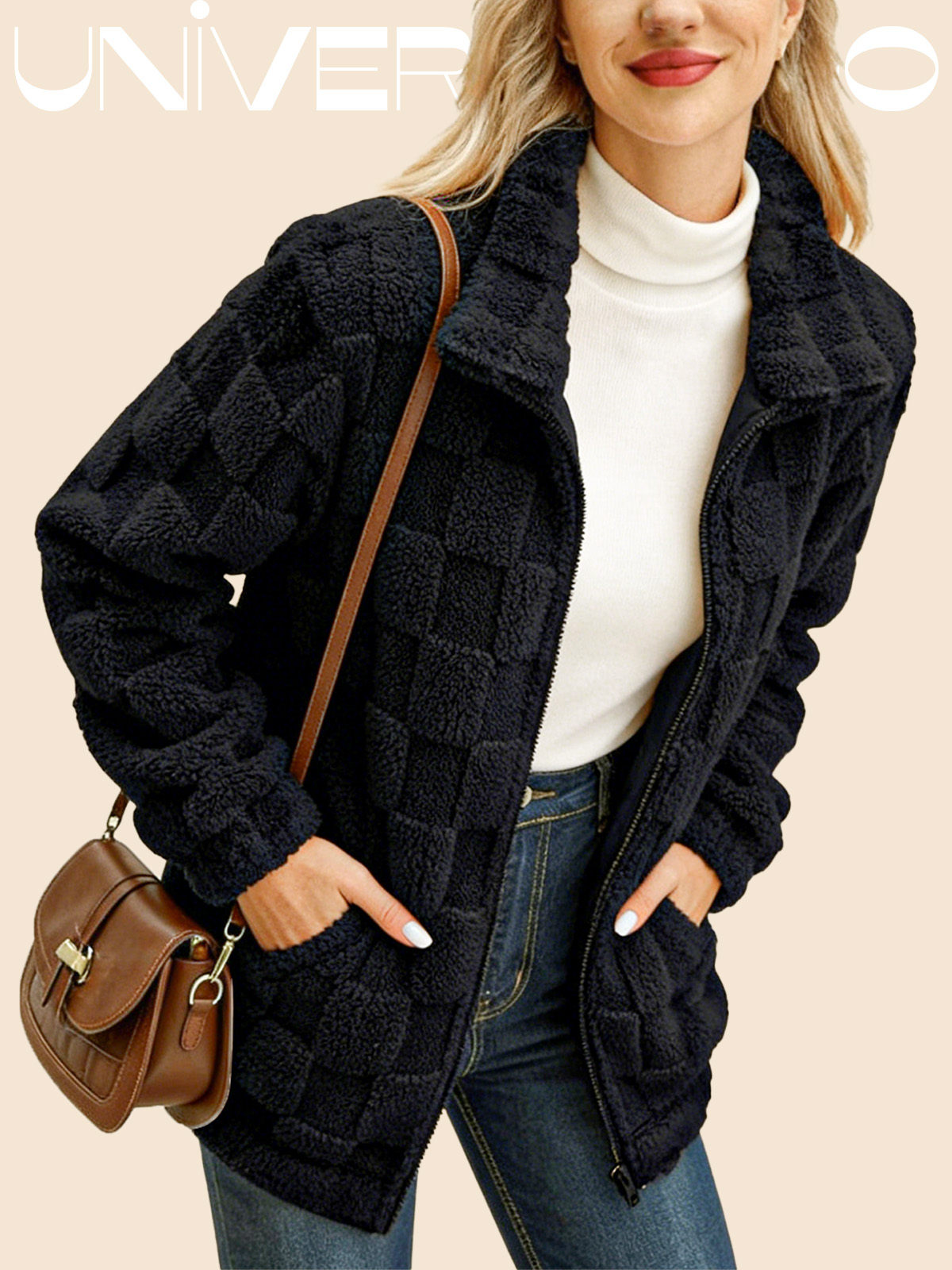 Яке с Изправена Яка, Каре и Молния от Имитиран Кож