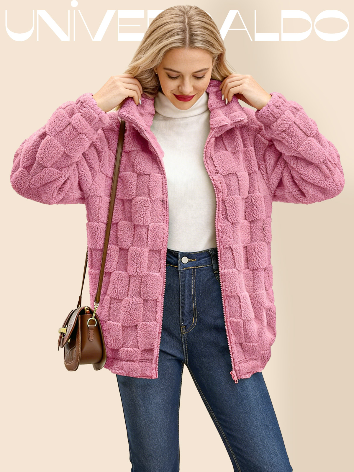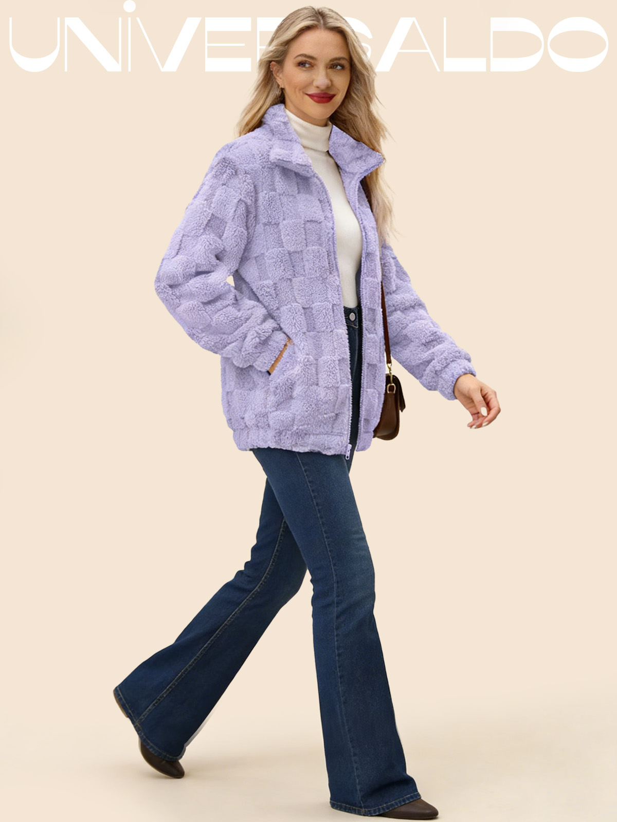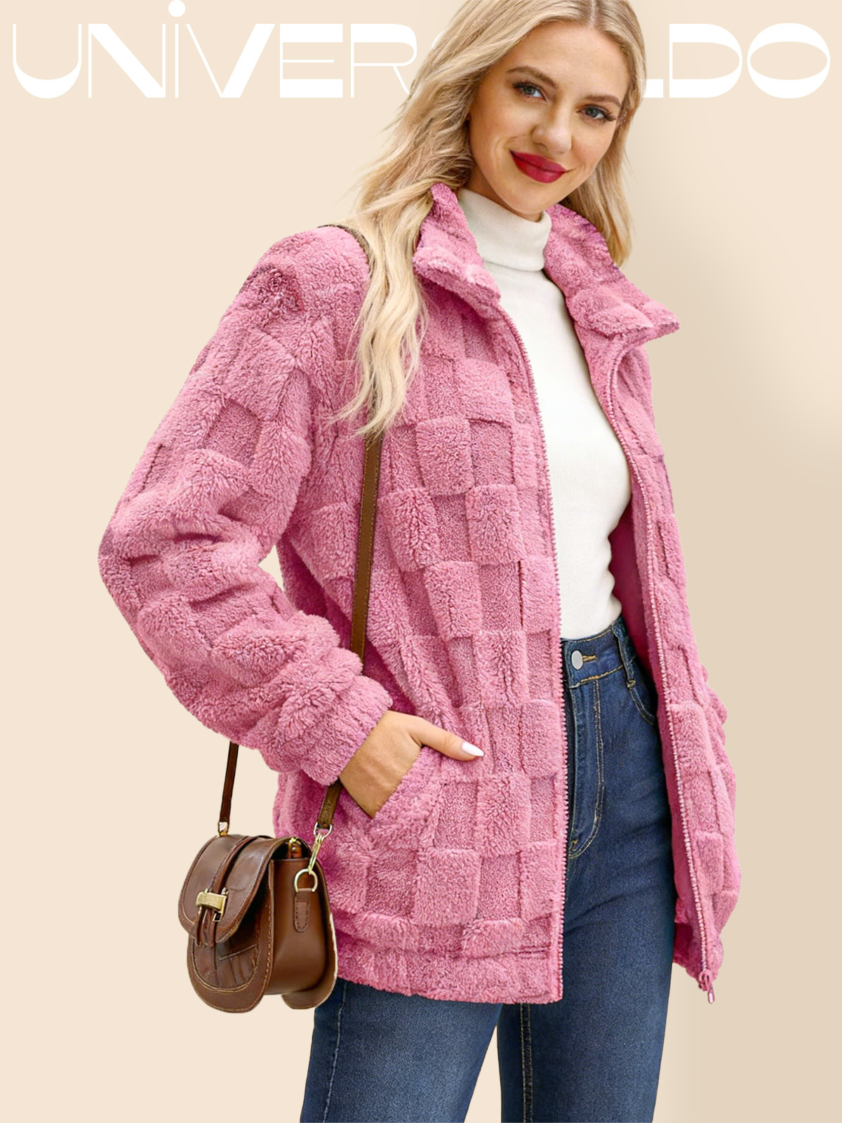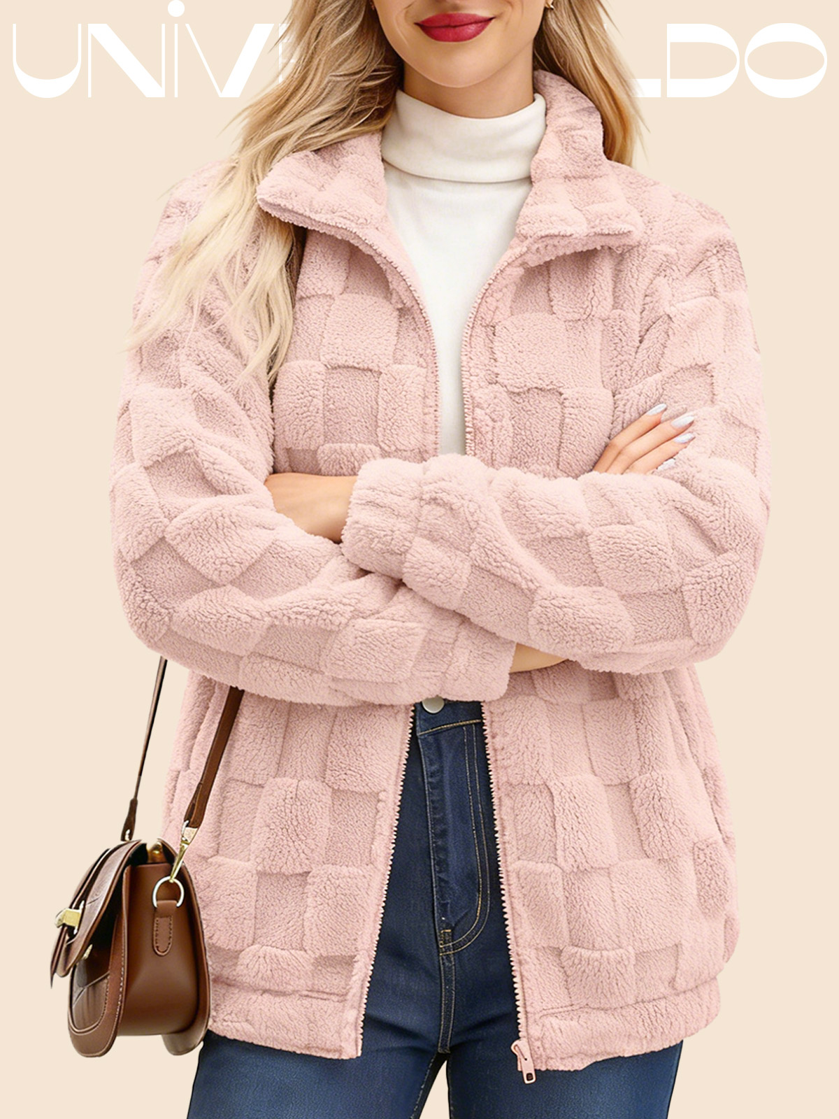 Яке с Изправена Яка, Каре и Молния от Имитиран Кож