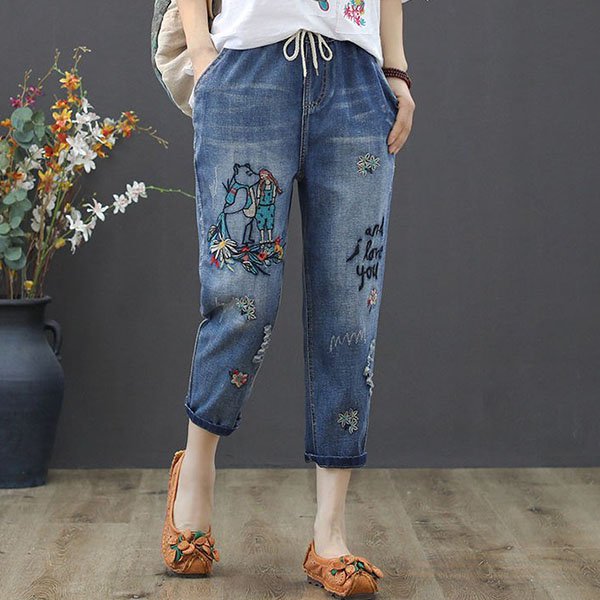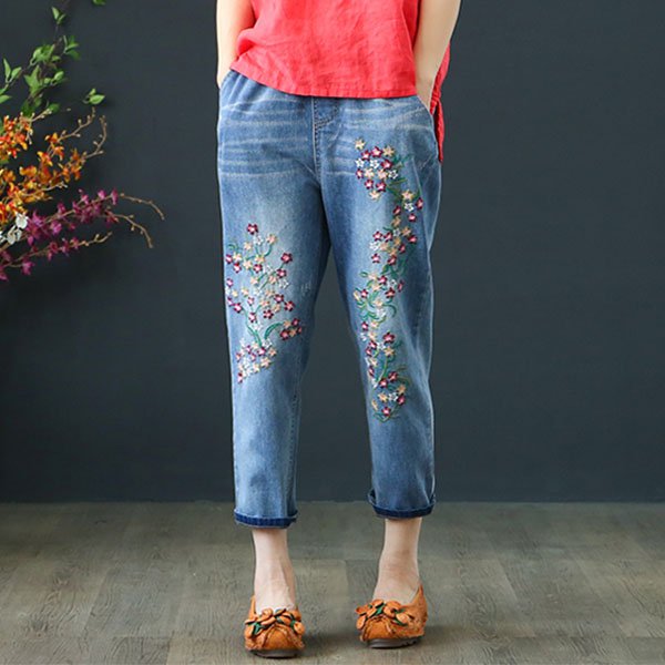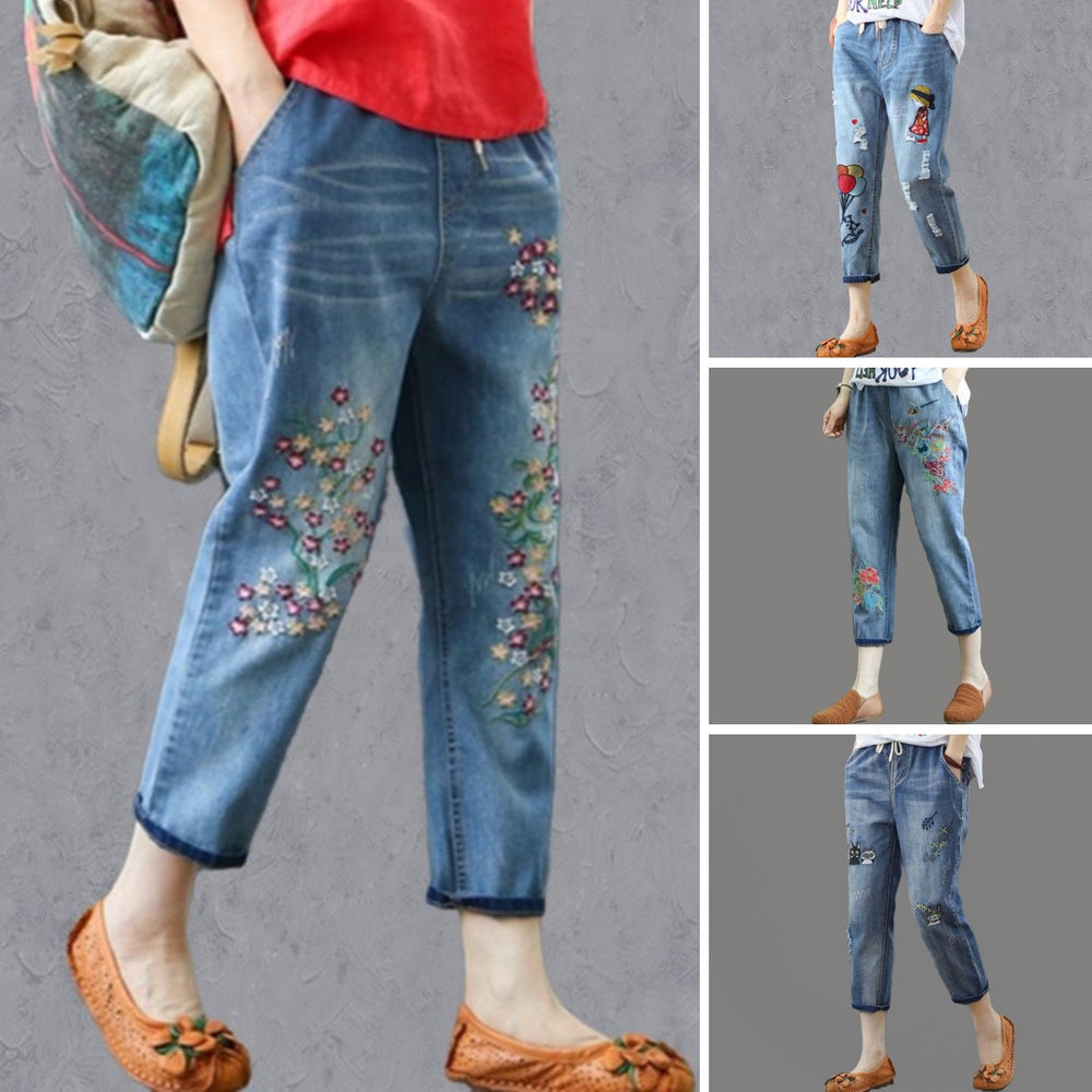 ✨😍🎉【горещи продажби】【40-90kg】Винтидж широки дънки с бродирани крачоли
