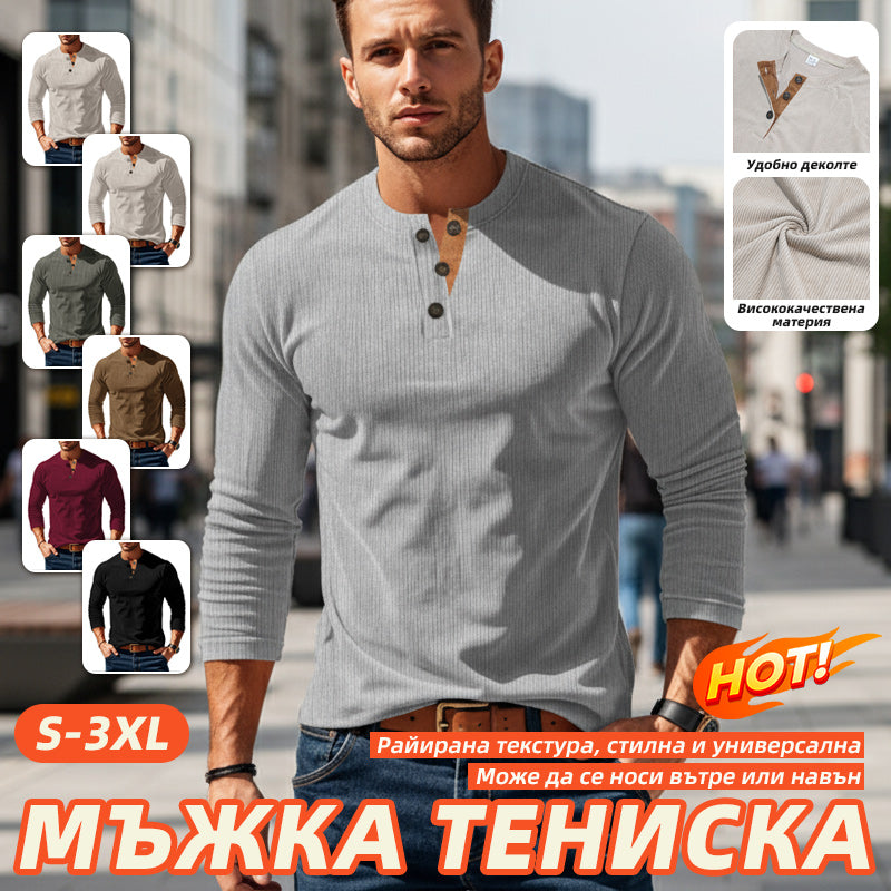 πŸ‚βœ¨ΠΠΎΠ²Π° СсСнна мъТка Π΅ΠΆΠ΅Π΄Π½Π΅Π²Π½Π° тСниска с дълъг Ρ€ΡŠΠΊΠ°Π², ΠΊΠ°Π΄ΠΈΡ„Π΅Π½ΠΎ Π±Π°Π·ΠΎΠ²ΠΎ ΠΎΠ±Π»Π΅ΠΊΠ»ΠΎ