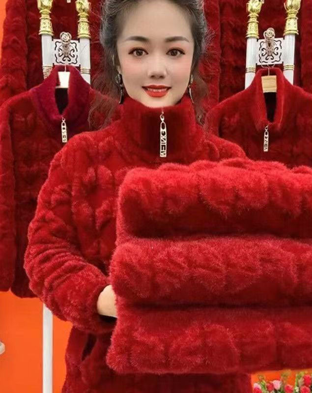 🔥🔥【50% ОТСТЪПКА】Изкуствена кожа от норка за хора на средна възраст и възрастни, дебело есенно-зимно палто