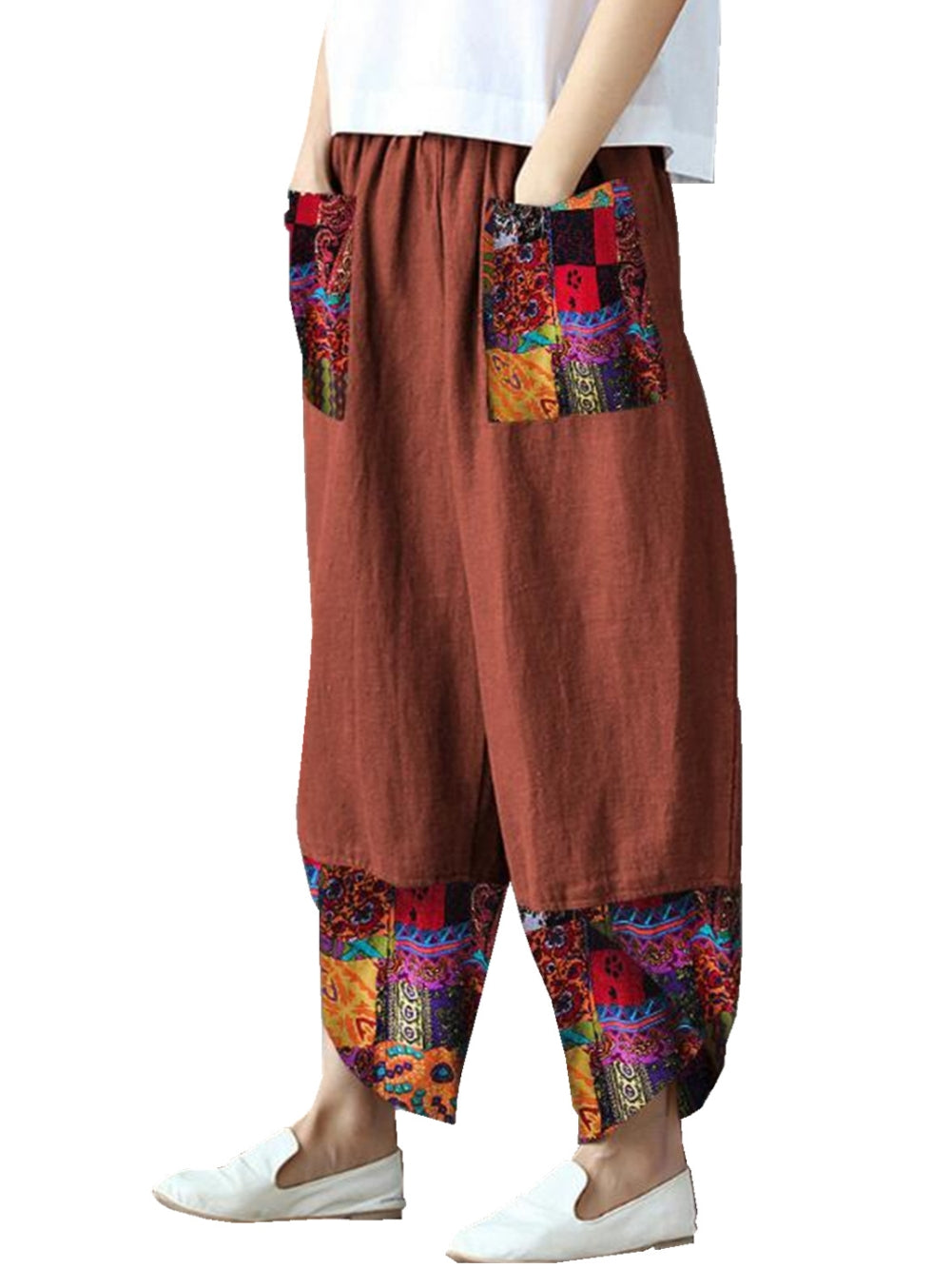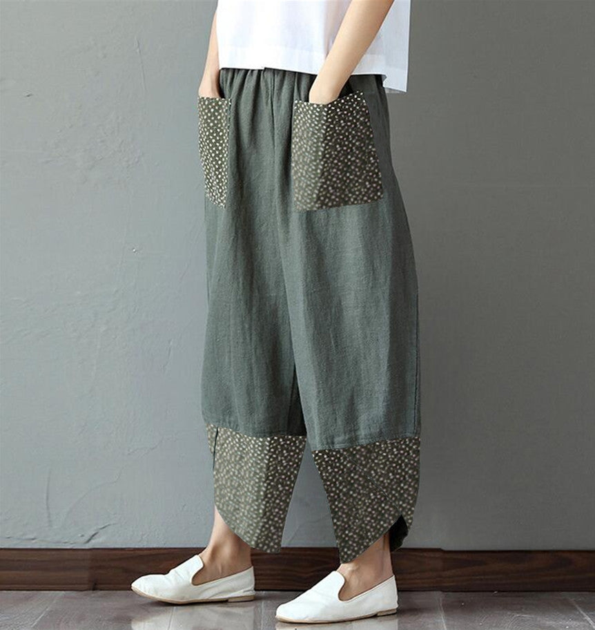 Нови широки панталони от памук и лен с щампа