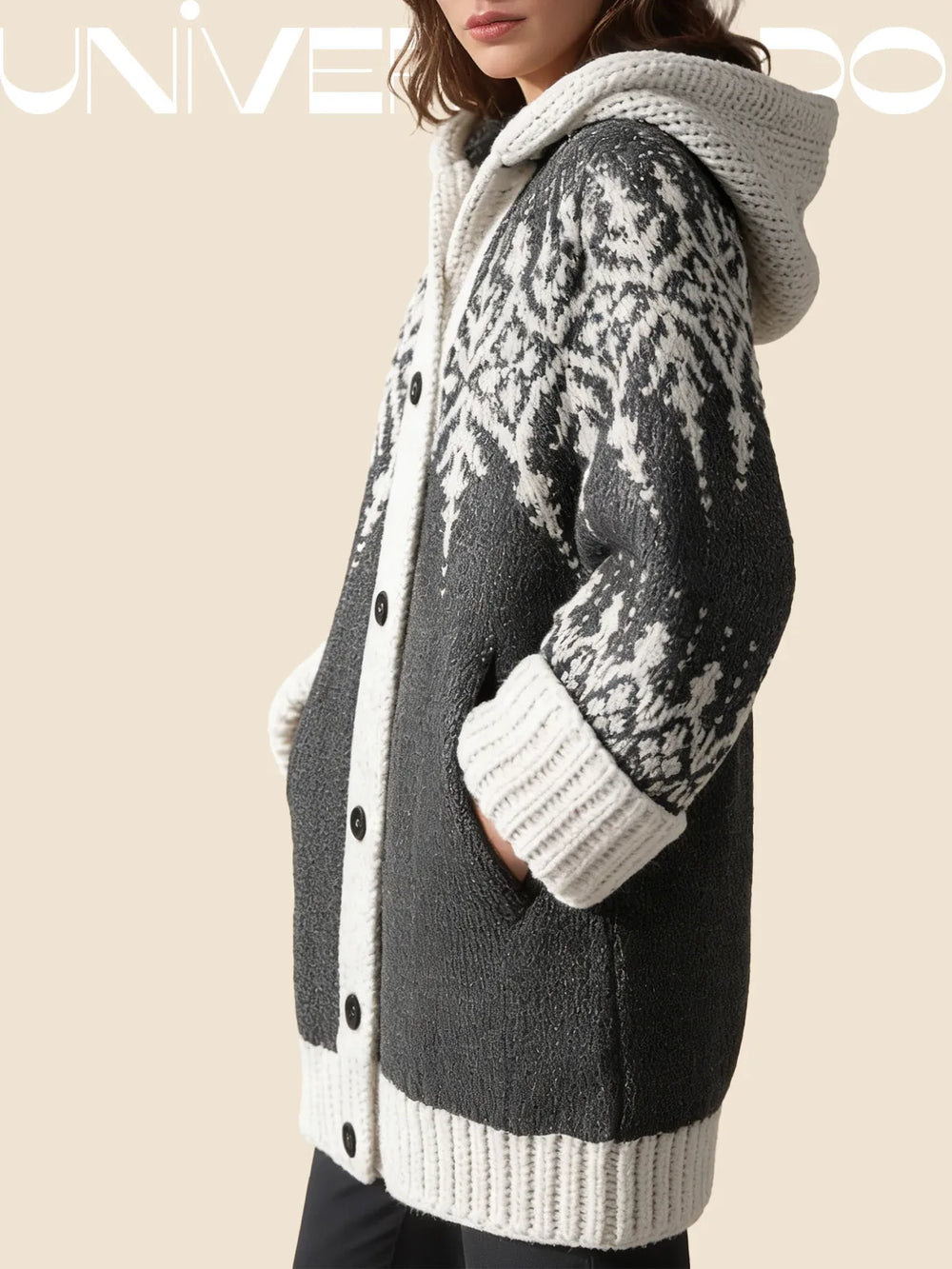 【S~5XL】Елегантно ретро яке с качулка в цвят снежинка